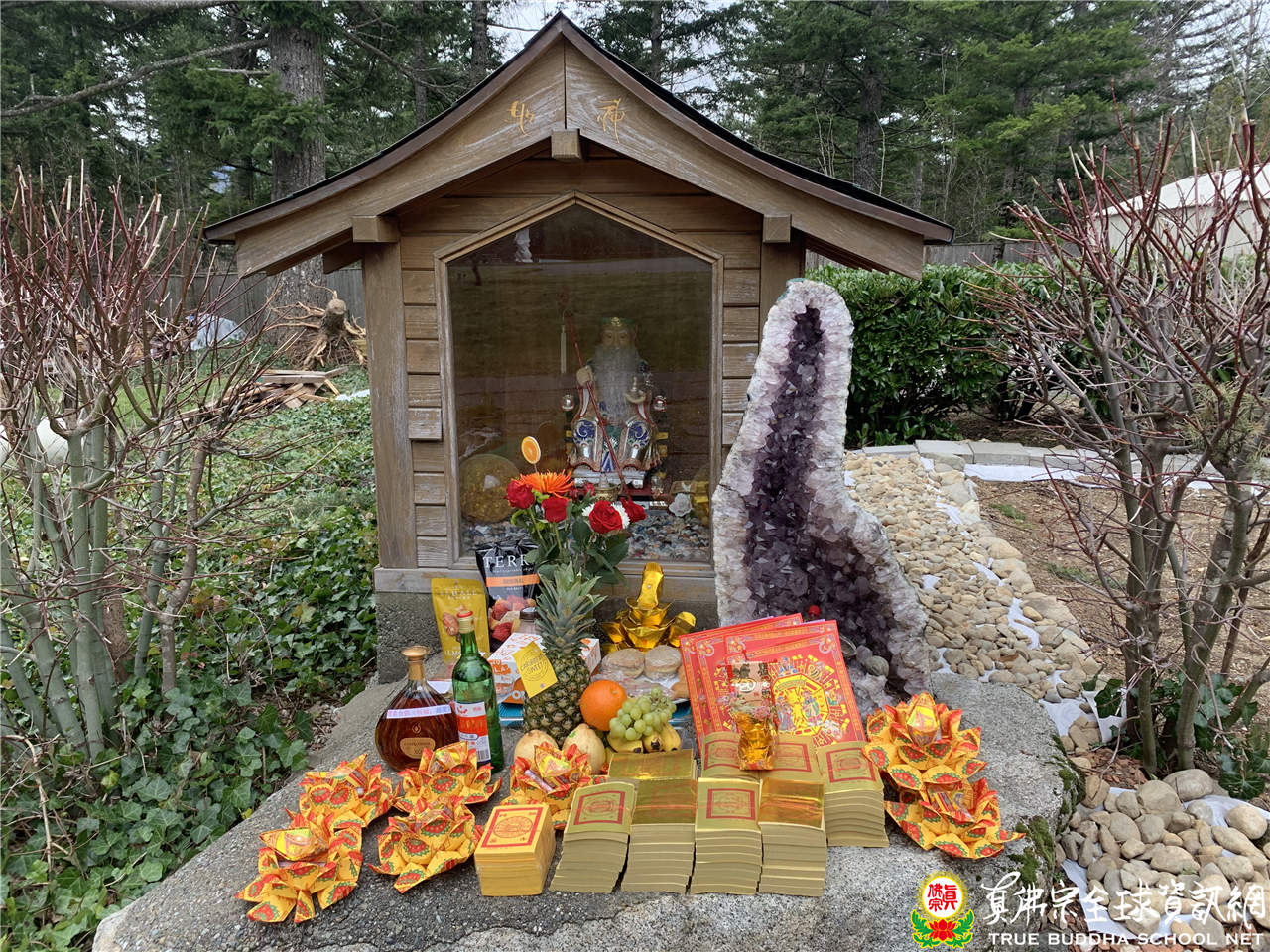 今天1月28日為慶祝土地公聖誕,彩虹雷藏寺特別準備美酒佳餚,依照儀軌供養土地公及合唱生日歌慶祝。依據真佛宗法王聖尊蓮生活佛曾經開示;土地公又稱福德正神,是最接近世間的神祇之一。彩虹雷藏寺的土地公在2020年才新上任,祂也是來自台灣,而且還懂得多種語言。當天,除了慶祝土地公聖誕之外,彩虹雷藏寺也特別供養龍王菩薩及獅王菩薩,感謝祂們一直以來的守護及庇佑,表示對祂們誠摯的謝意!