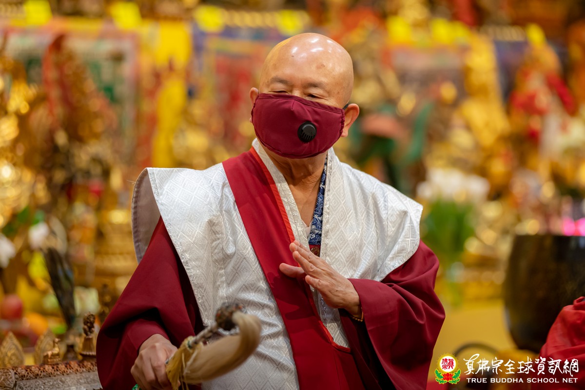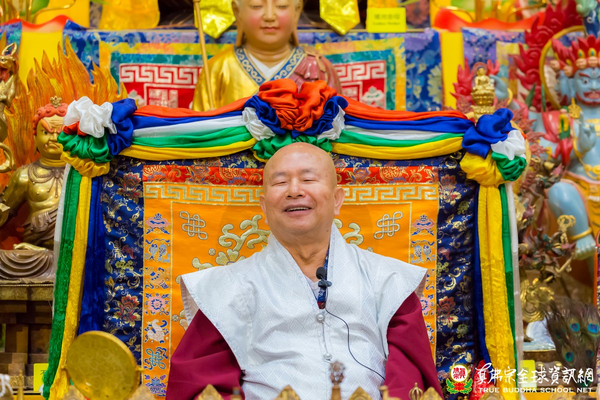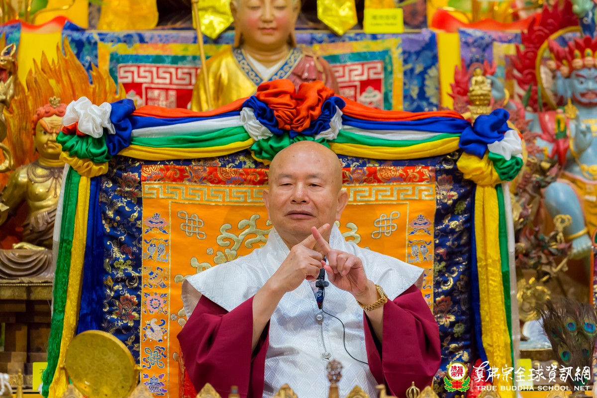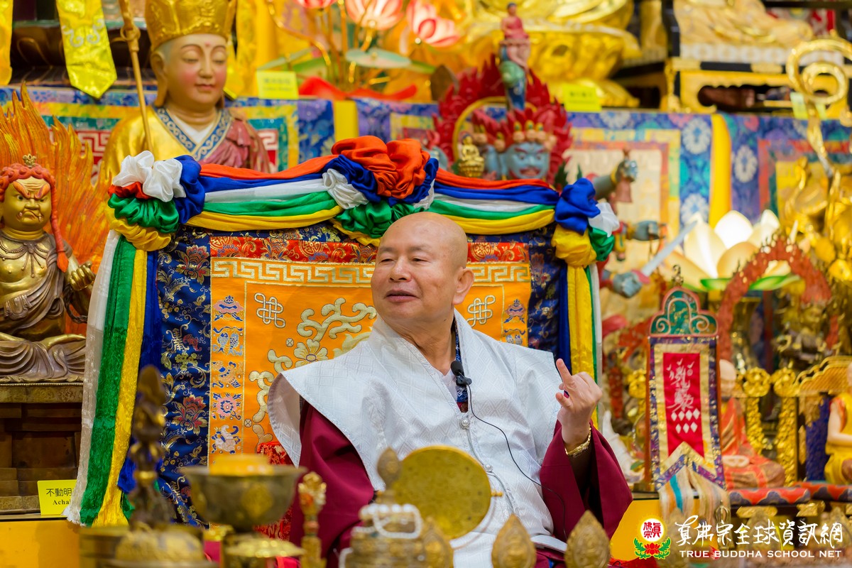 晚上八點整,眾人在蓮花童子的咒音中跪迎師尊的蒞臨,在師尊的帶領下同修了一壇殊勝的「蓮花童子本尊法」。同修後,師尊開示二十六歲時得瑤池金母指點是蓮花童子的歷程,沒有金母就沒有蓮生活佛,也就沒有真佛宗,並唱讚偈:「蓮花童子見金仙,落花虛空左右旋;微妙天音雲外聽,盡說極樂勝諸天。」原來蓮花童子就是阿彌陀佛化出來的,在極樂世界的雙蓮池化身了十八大蓮花童子,還有很多中蓮花童子及小蓮花童子,這是根源,所以有真佛世界。