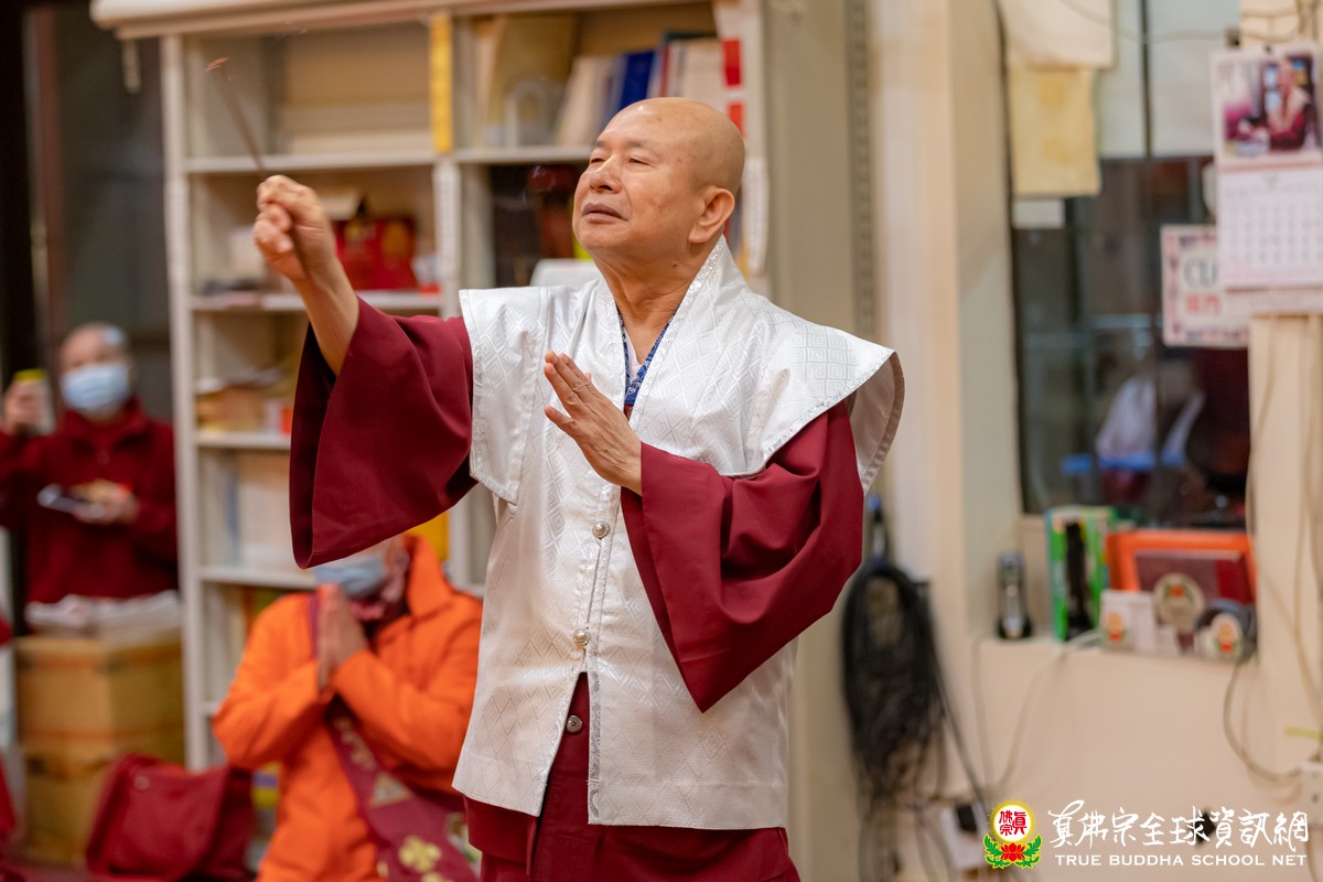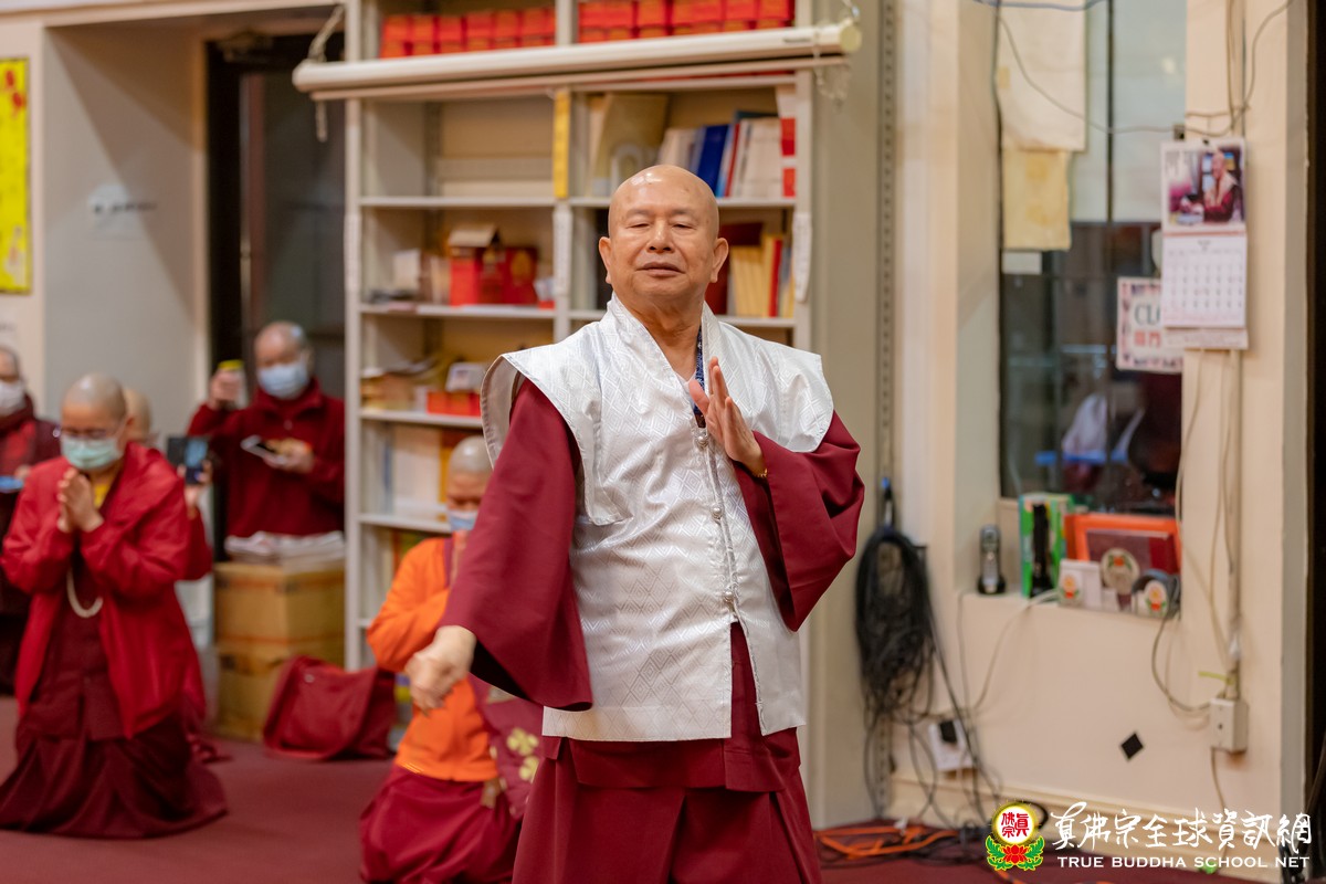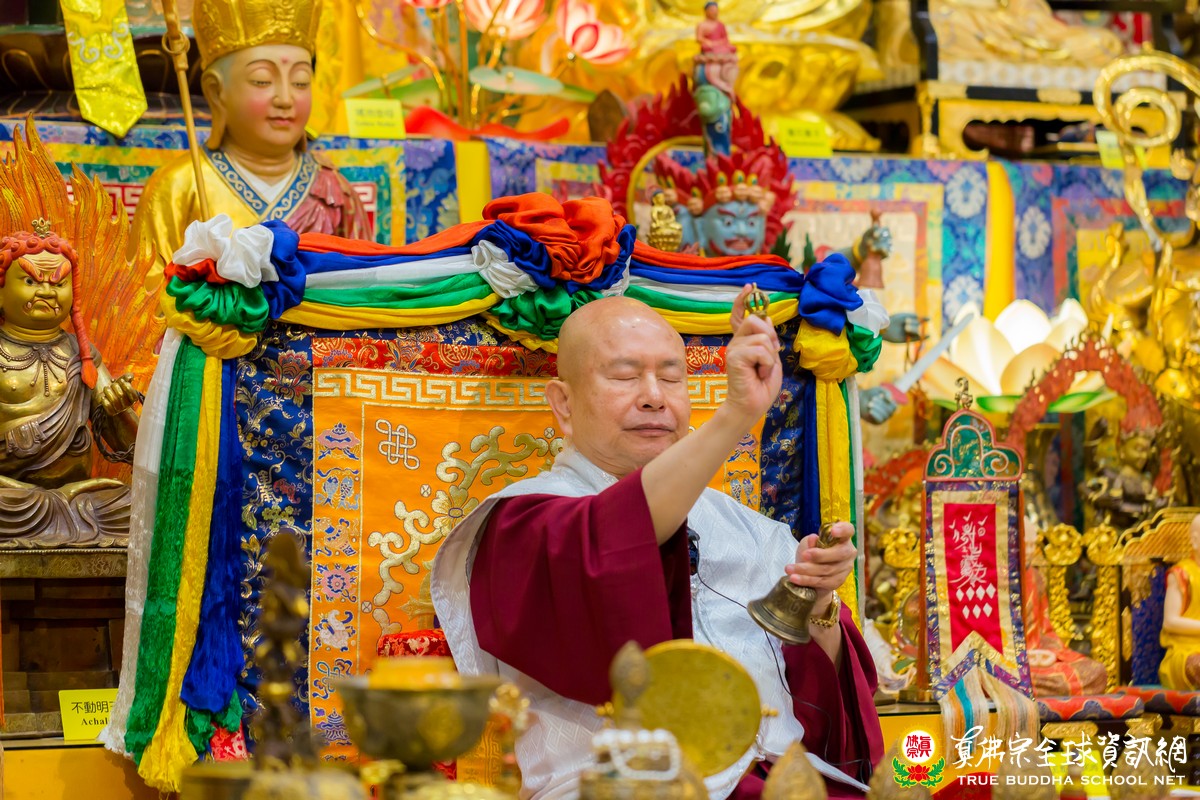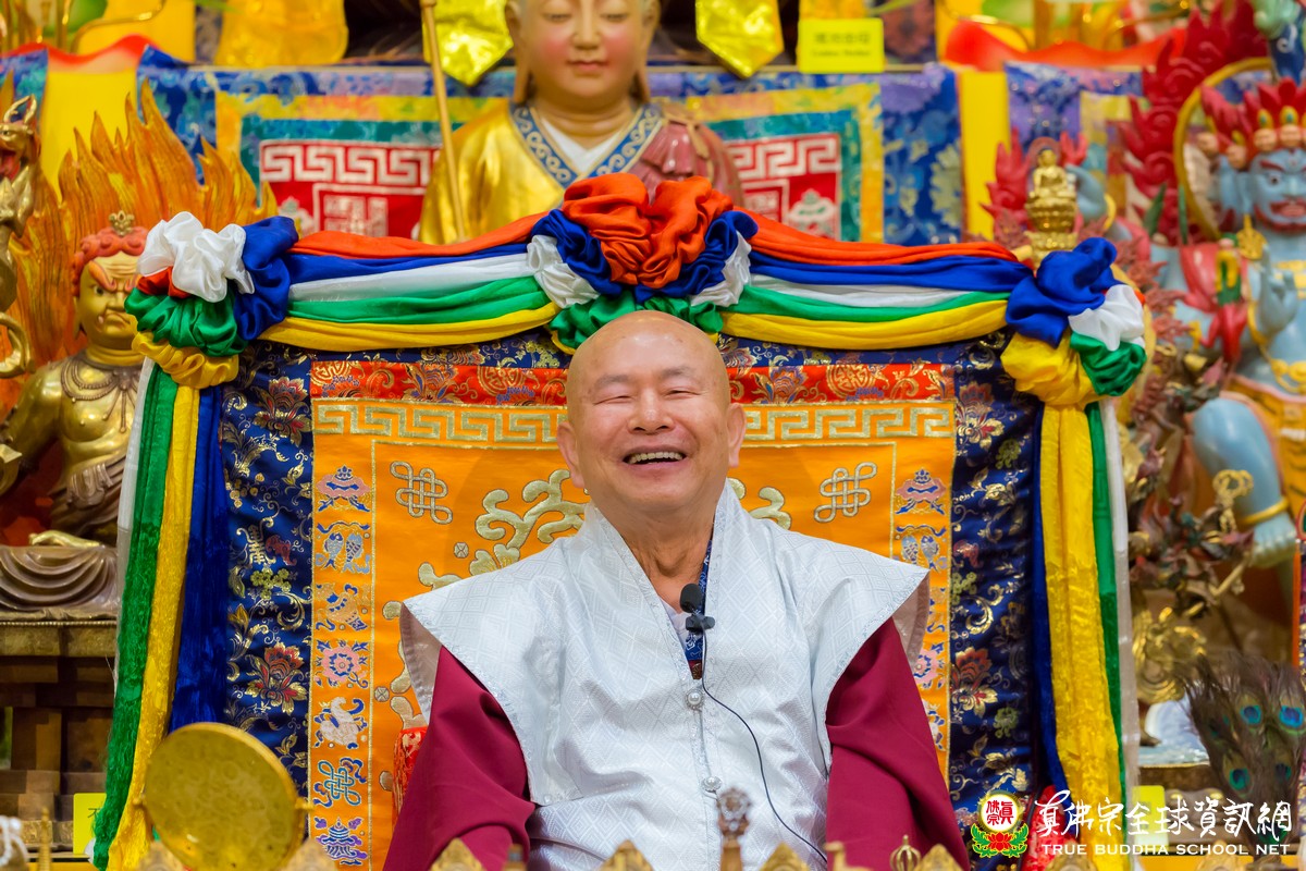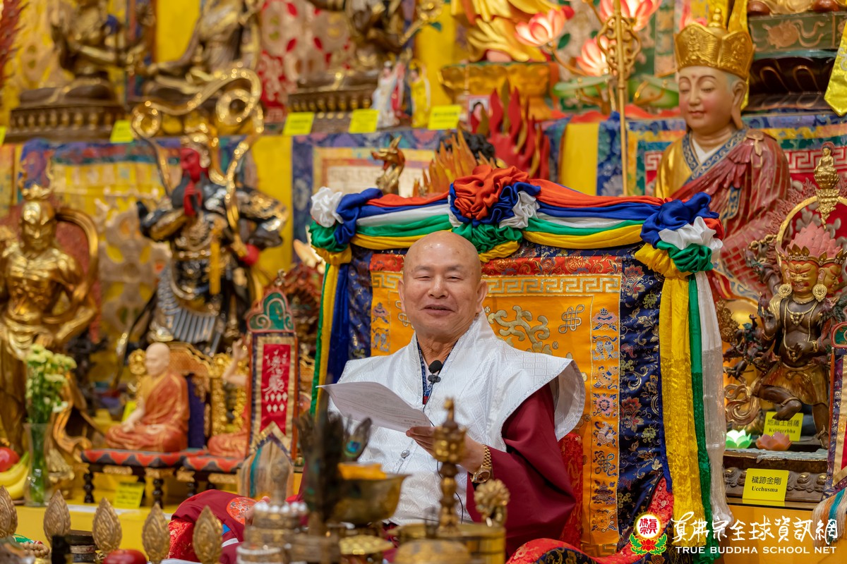 晚上八點整,眾人在蓮花童子的咒音中跪迎師尊的蒞臨,在師尊的帶領下同修了一壇殊勝的「蓮花童子本尊法」。同修後,師尊開示二十六歲時得瑤池金母指點是蓮花童子的歷程,沒有金母就沒有蓮生活佛,也就沒有真佛宗,並唱讚偈:「蓮花童子見金仙,落花虛空左右旋;微妙天音雲外聽,盡說極樂勝諸天。」原來蓮花童子就是阿彌陀佛化出來的,在極樂世界的雙蓮池化身了十八大蓮花童子,還有很多中蓮花童子及小蓮花童子,這是根源,所以有真佛世界。