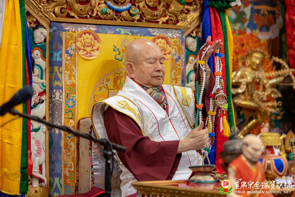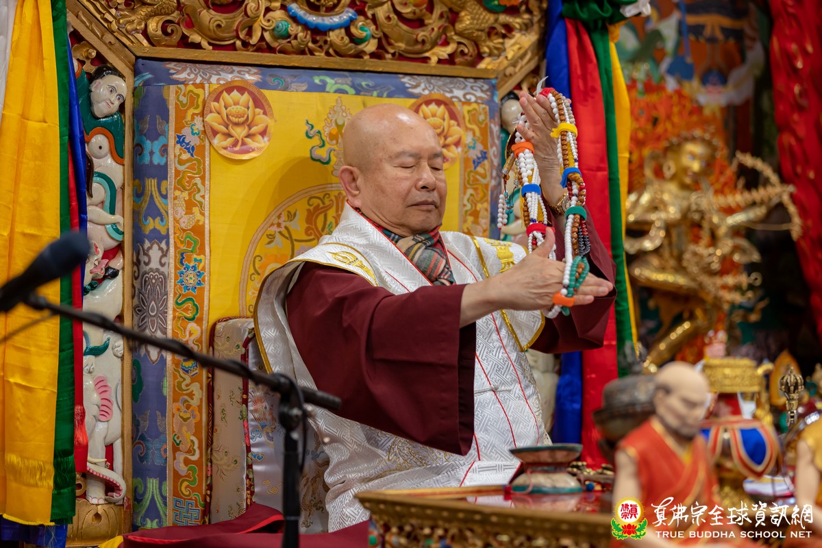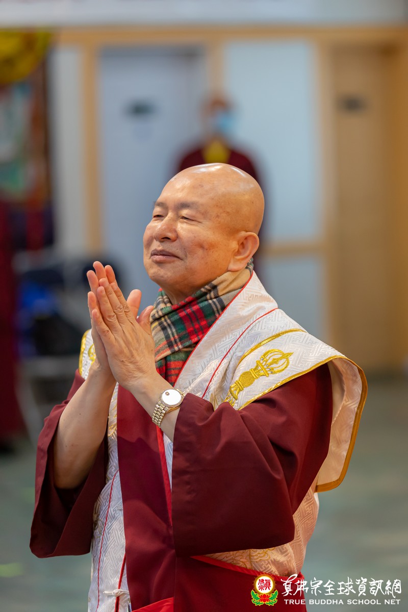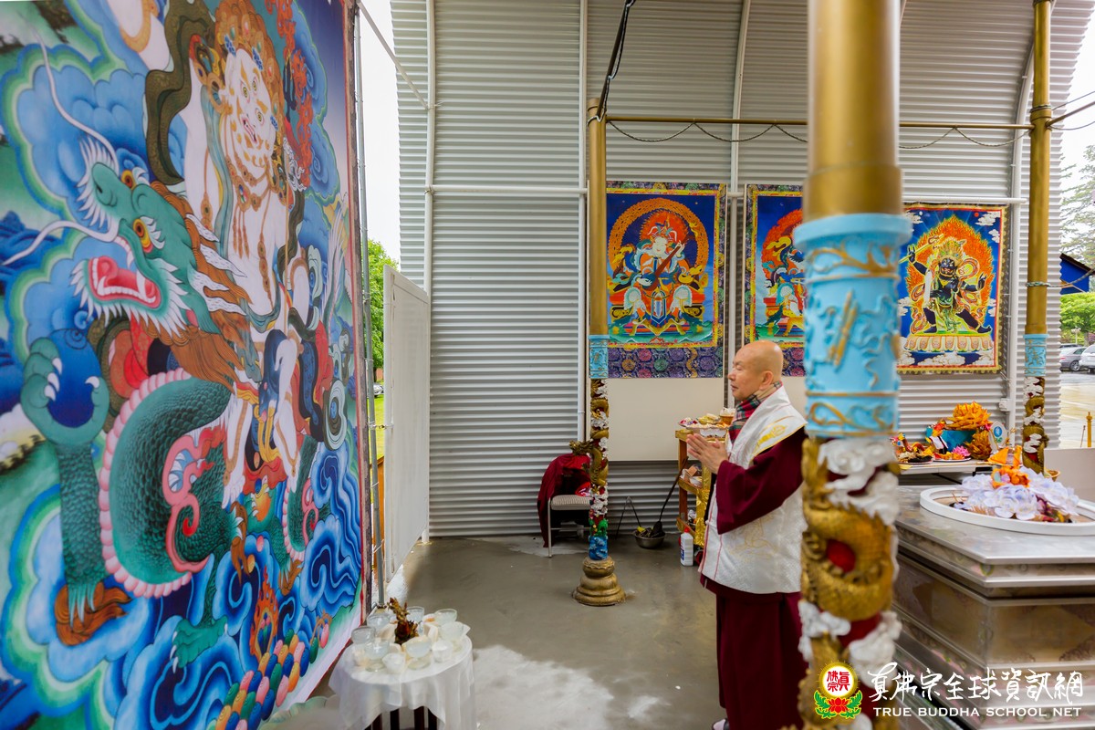 2021年6月13日下午, 美國真佛宗西雅圖彩虹雷藏寺恭請根本上師蓮生活佛主壇騎龍白財神護摩法會。