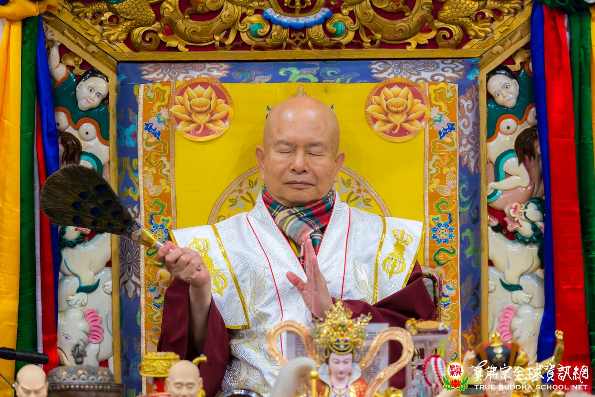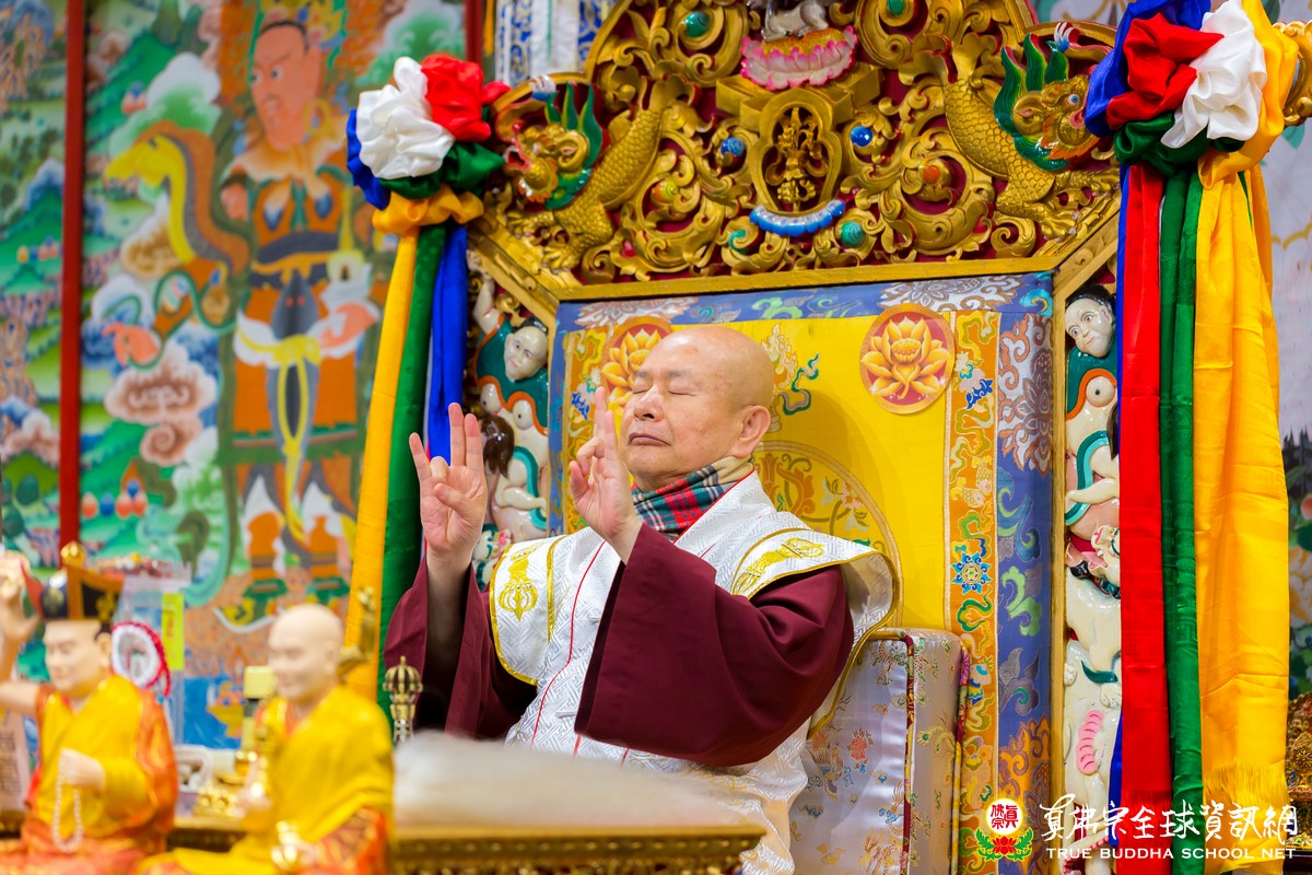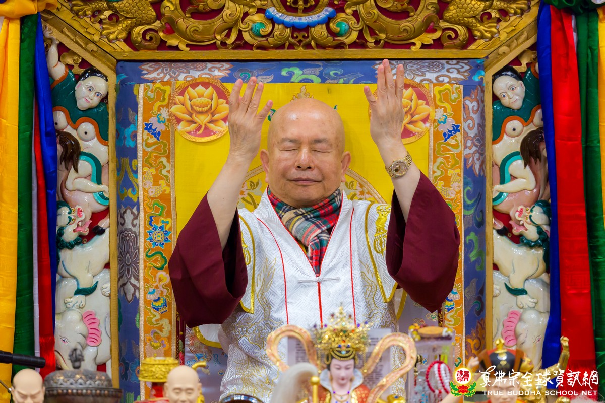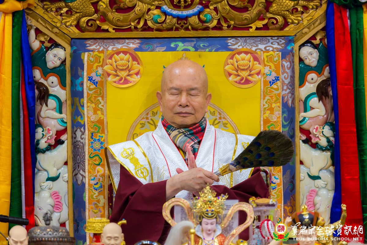 2021年6月13日下午, 美國真佛宗西雅圖彩虹雷藏寺恭請根本上師蓮生活佛主壇騎龍白財神護摩法會。