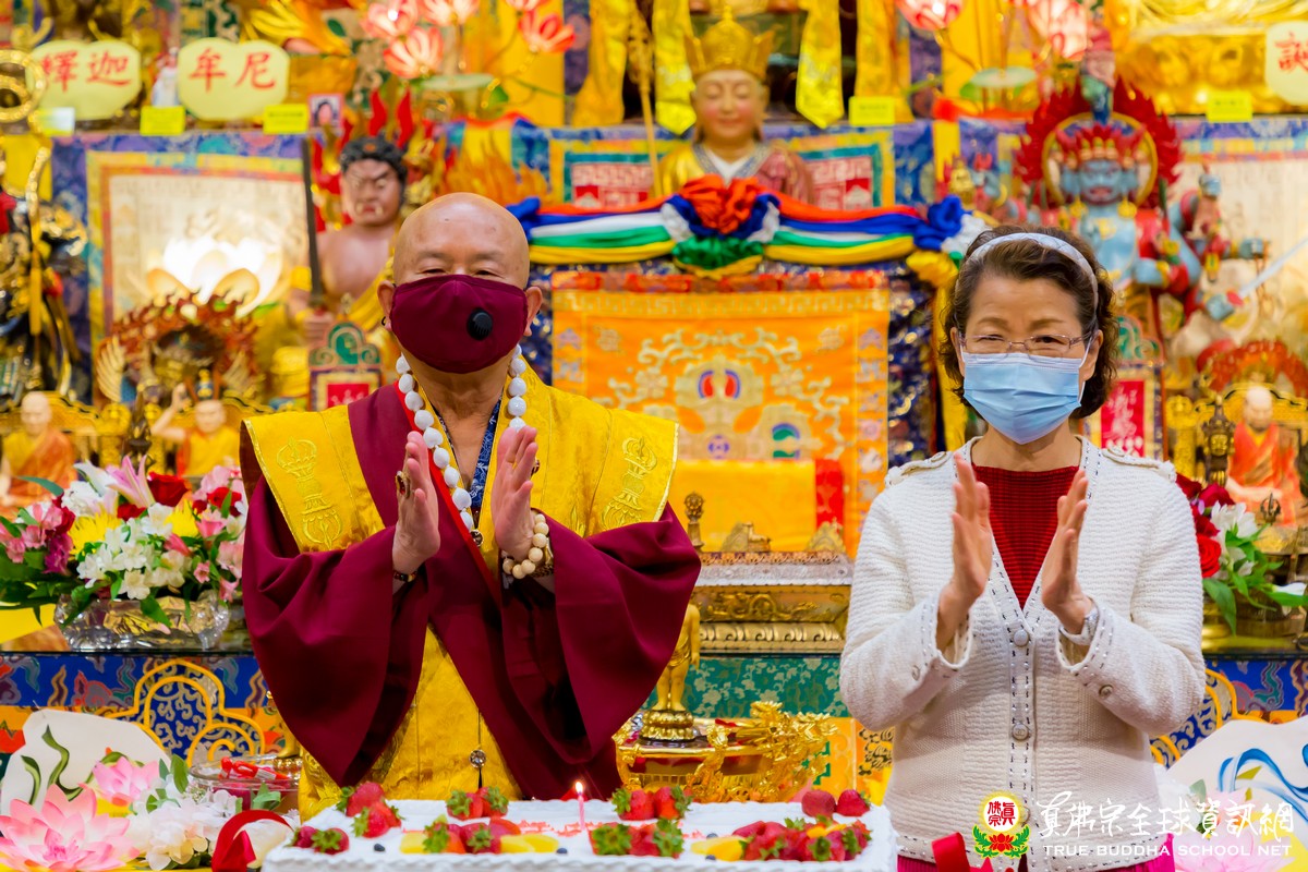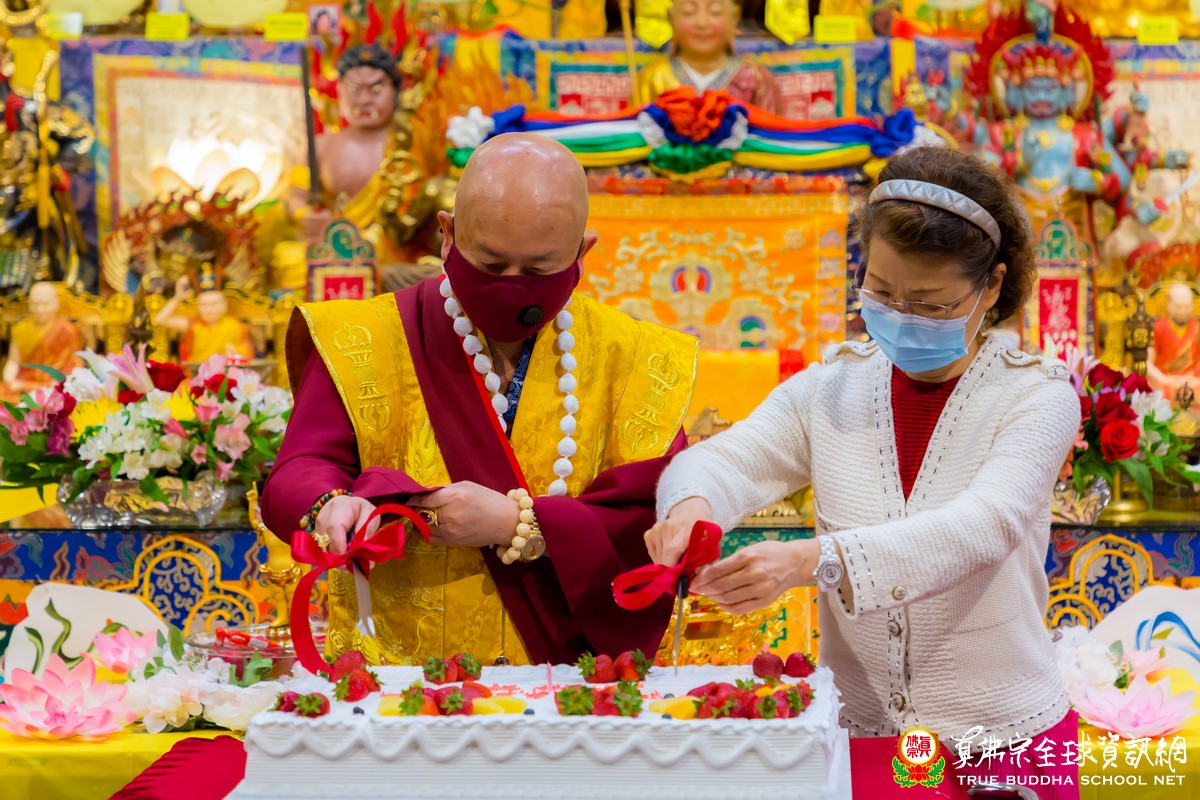 在聖尊精闢的開示結束後,西雅圖雷藏寺唱誦組的浴佛讚偈詠唱聲響起,聖尊首先帶領與會大眾浴佛,浴佛的儀式除了對佛陀聖誕的敬意,也藉由儀式來洗滌自身的煩惱塵埃,清淨自我的身口意。隆重的浴佛儀式圓滿結束後,祖廟也特別準備了大蛋糕,為我們的佛父根本上師蓮生活佛及所有辛苦的爸爸們,提前預祝父親節快樂,祝福身體健康、平安吉祥。