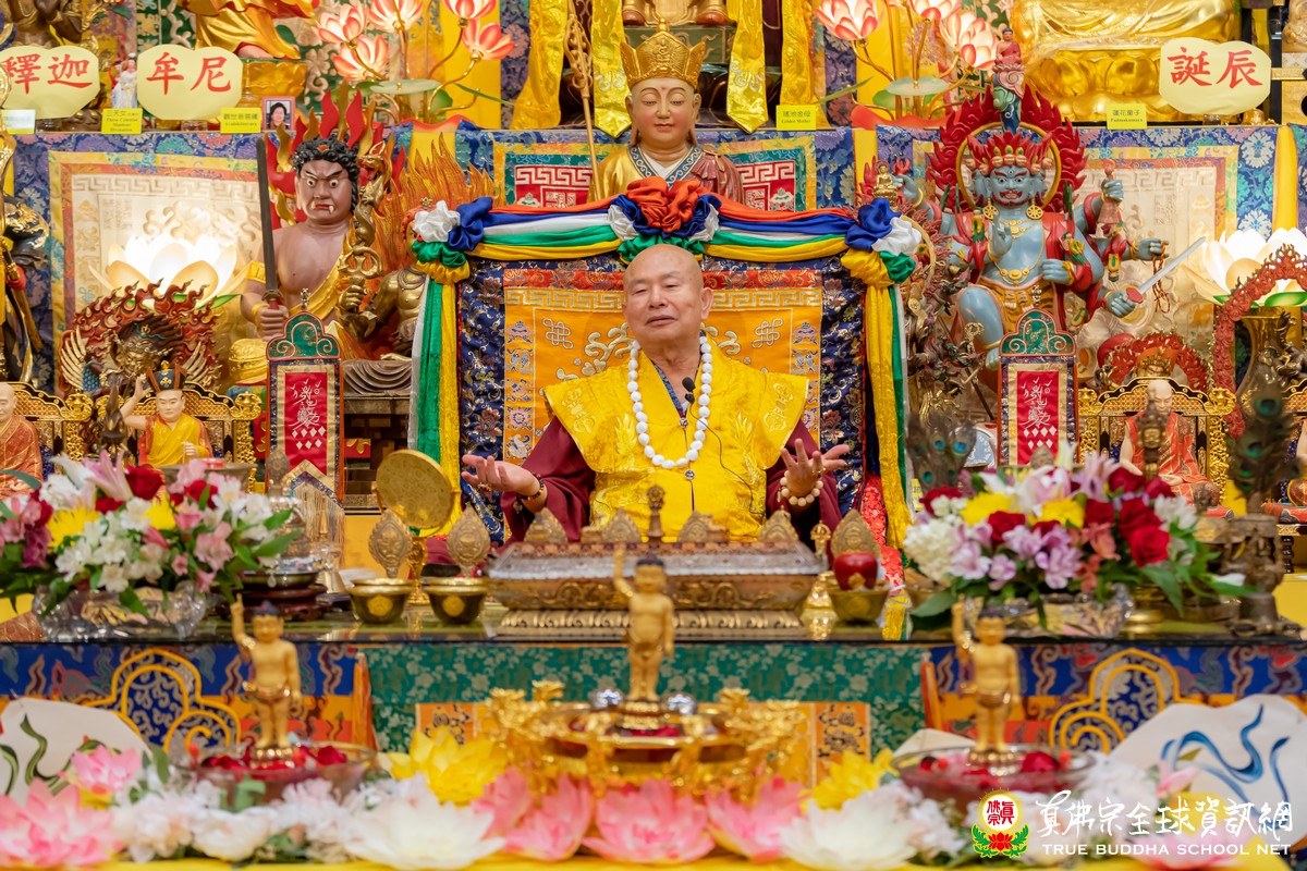 聖尊接著談到今晚的同修主尊釋迦牟尼佛,是應化身,祂的法身是毘盧遮那佛,報身是盧舍那佛,應化在娑婆世界成為教主,就是釋迦牟尼佛。「無上甚深微妙法,百千萬劫難遭遇,我今見聞得受持,願解如來真實義」,佛陀說法一直到八十歲,祂講的法無上甚深,而且非常微妙,要遇到佛法真的很不容易,娑婆世界有佛法的地方不多。「諸惡莫作,眾善奉行,自淨其意,是諸佛教」,是佛陀的教法。「諸惡莫作,眾善奉行」是所有宗教的共法,而不共法就在「自淨其意」。佛教徒要清淨自己的意念,意念清淨,自然身清淨、口清淨,所以意念最重要的,佛法的「無上甚深微妙」就是在這個「意」上面。
