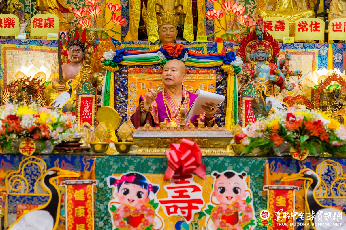 八時整,在蓮花童子的咒音中恭迎師尊入壇城,並由師尊帶領共修了一壇殊勝的「蓮華生大士本尊法」.今晚沒有你問我答,師尊不用回答同門的問題,就談起這週所受的病苦。師尊說,佛陀講的非常正確,「諦聽,人生是苦」。老苦、病苦、都是苦,師尊想好好慶祝難得農曆和陽曆同一天的生日,但竟來個四大不調.水不調腳氣腫痛,腰痛是火,再來會喘是風.再來牙牀腫起發膿,痛到頭,這地、水、火、風全部集合起來一起痛,真是天有不測風雲,人有旦夕禍福。人生是苦,來就是要酬業,把業障給消除。師尊期勉大眾精進修行,未來往生佛國淨土.像蓮華生大士一樣虹光化生,就大成就了。
