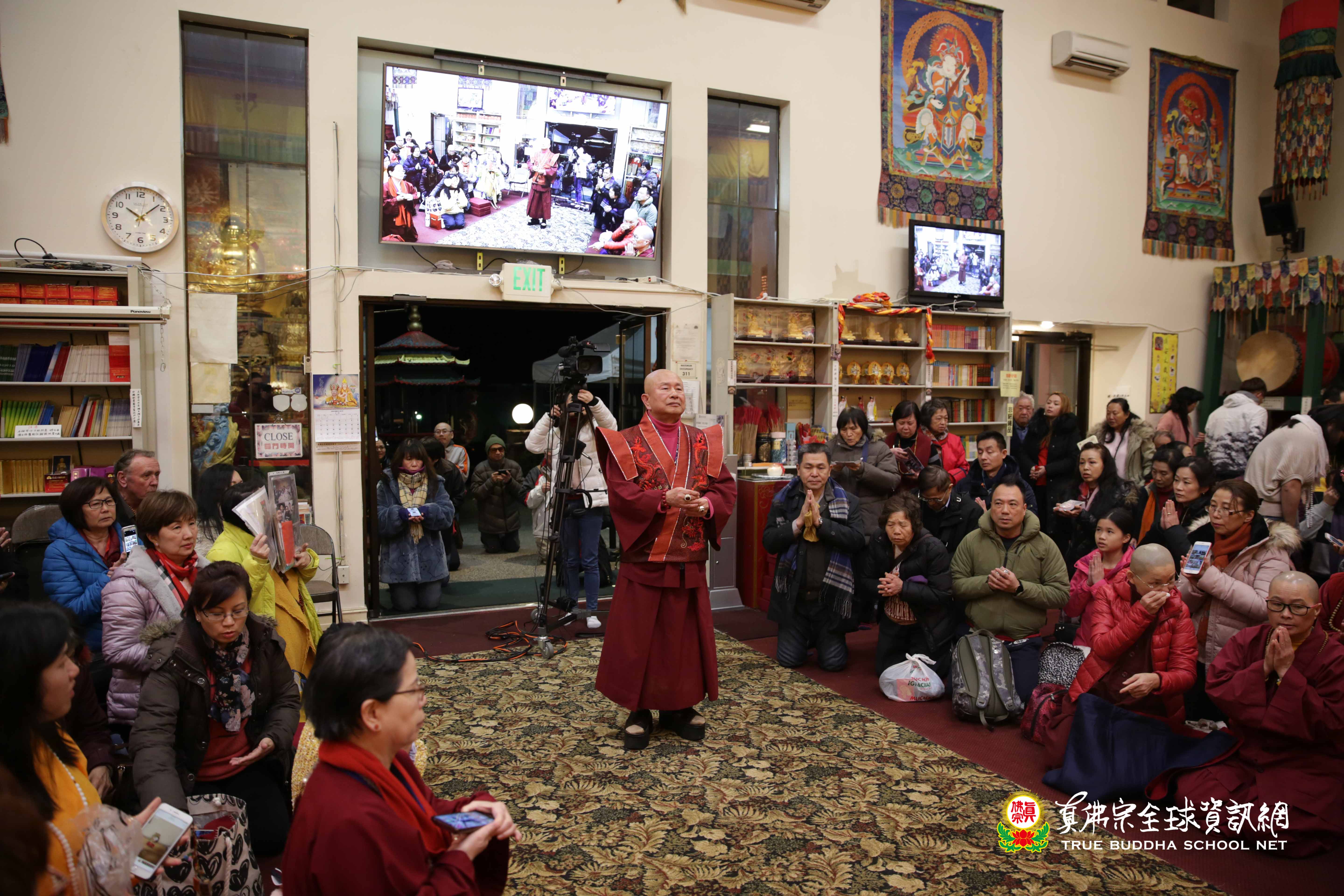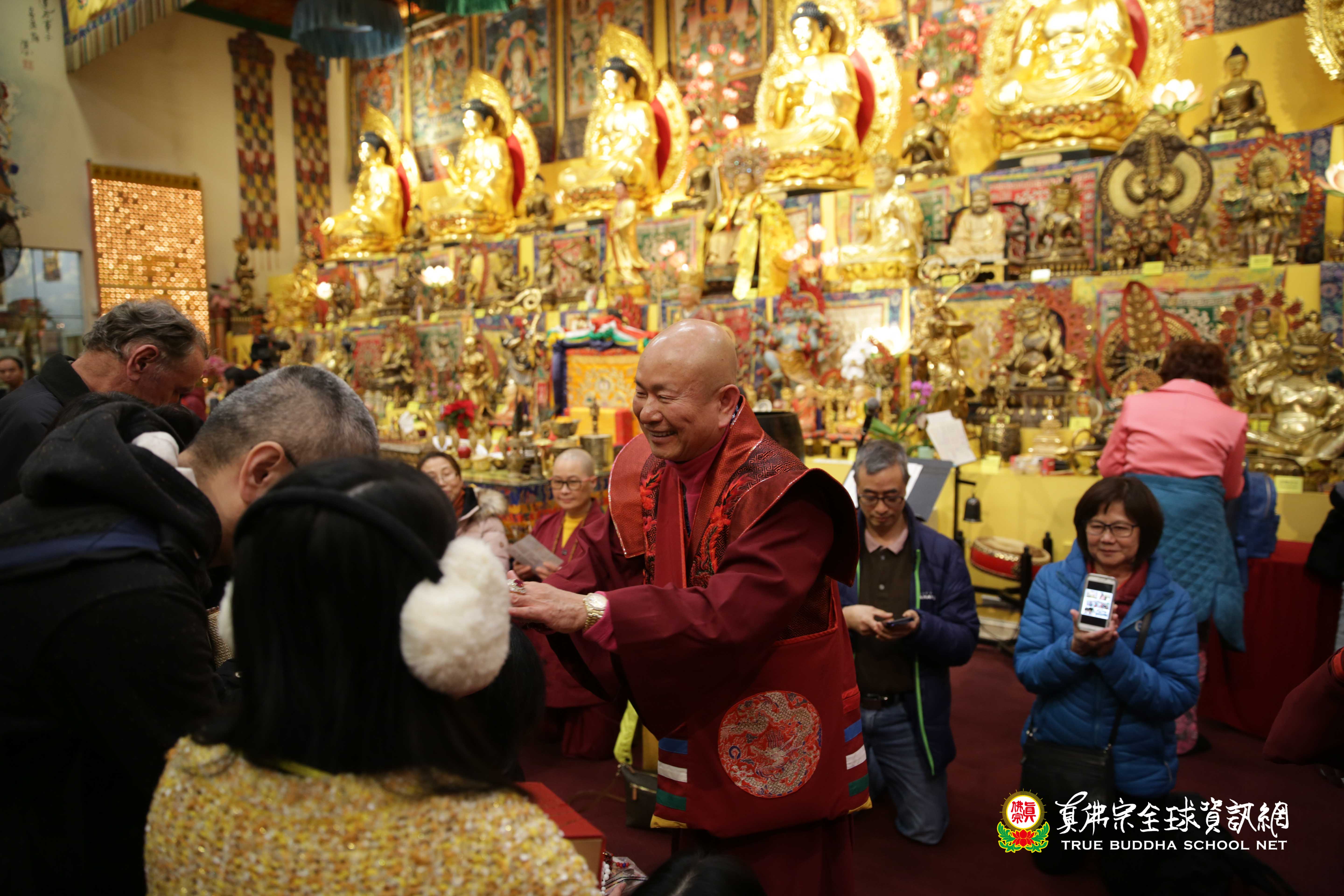 會後,聖尊為求皈依的信眾賜受殊勝的皈依灌頂、加持大悲咒水,以及開光佛像。臨行前,聖尊還為與會大眾摩頂加持如願。步出大雄寶殿的大門,在迎面拂來的寒風中,望著聖尊慈愛的身影,回想聖尊在最後開示的結語,祂的智慧比任何人都高,祂的身體比任何人都強,這如此強大堅決的自信,讓弟子們的內心充滿了敬仰的澎湃,能皈依修行已大成就的根本上師,是非常值得驕傲的。