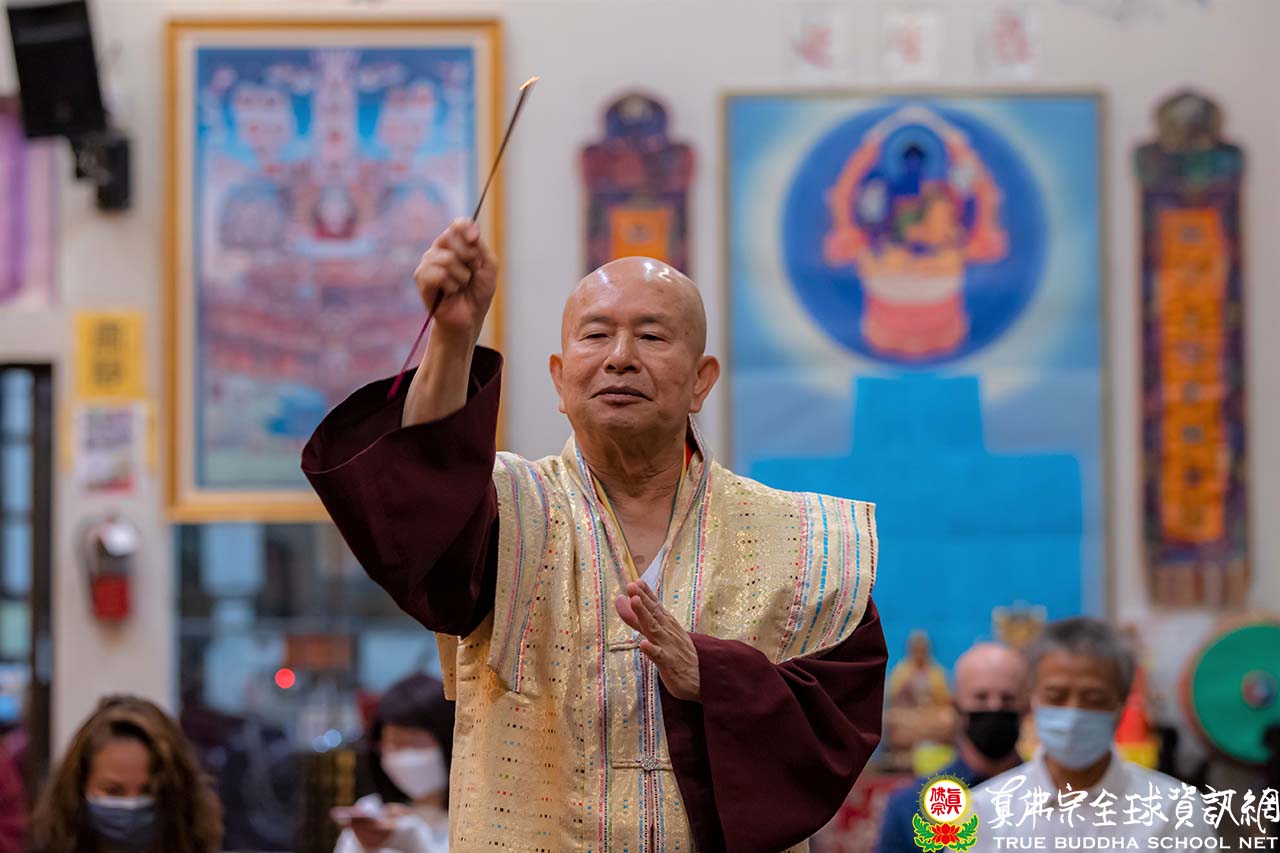 2021年7月3日,西雅圖雷藏寺同修蓮花童子本尊法。同修後,聖尊蓮生法王先帶領大家敬禮傳承祖師、壇城三寶、同修的本尊蓮花童子,然後再跟大家問好。