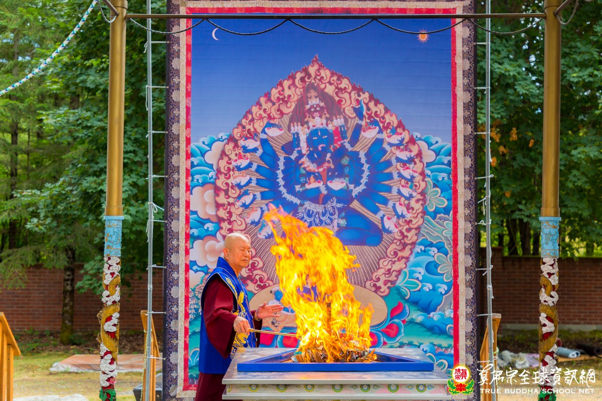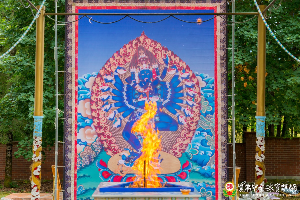 開示完畢后,法王下座與世界各國的弟子在線上招呼問好,接著為在場的同門賜授喜金剛灌頂,喜金剛護摩法會至此圓滿結束。