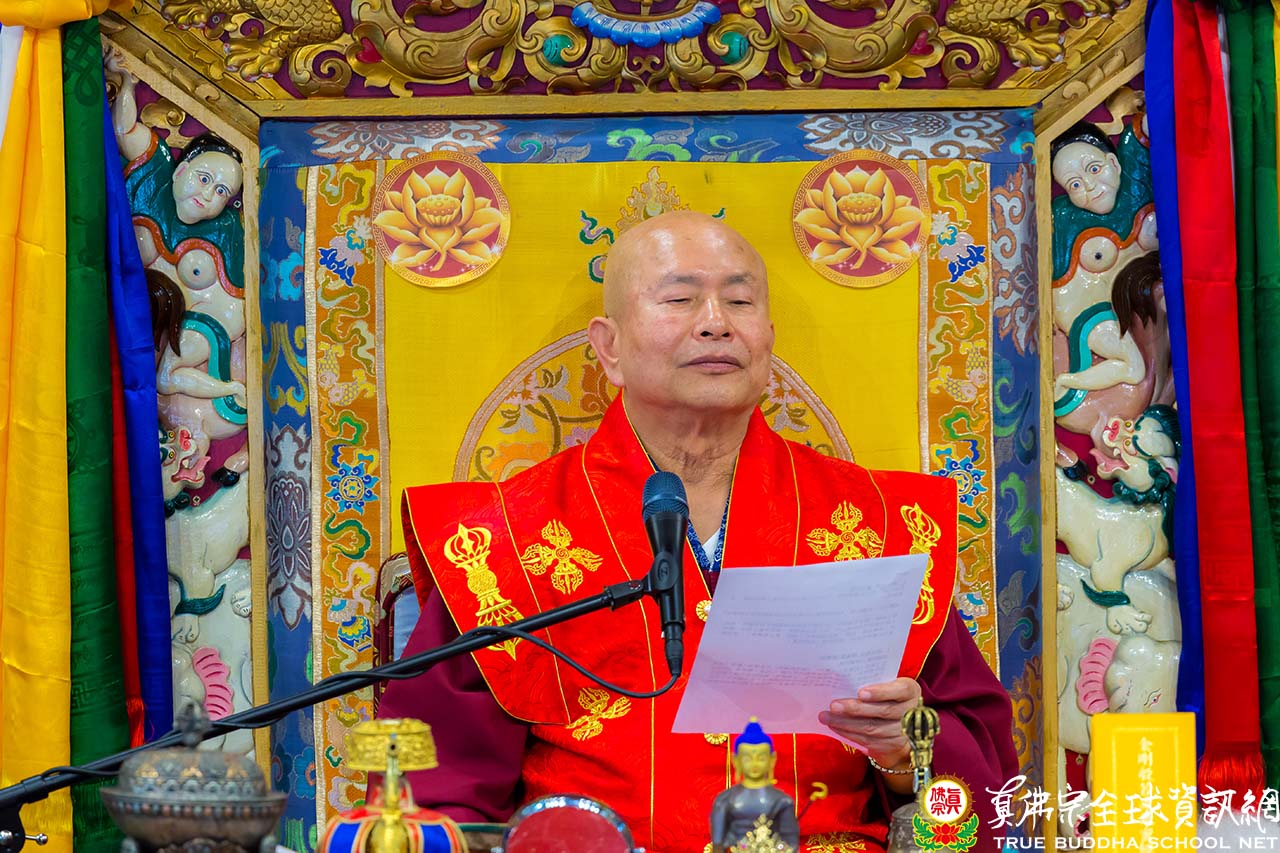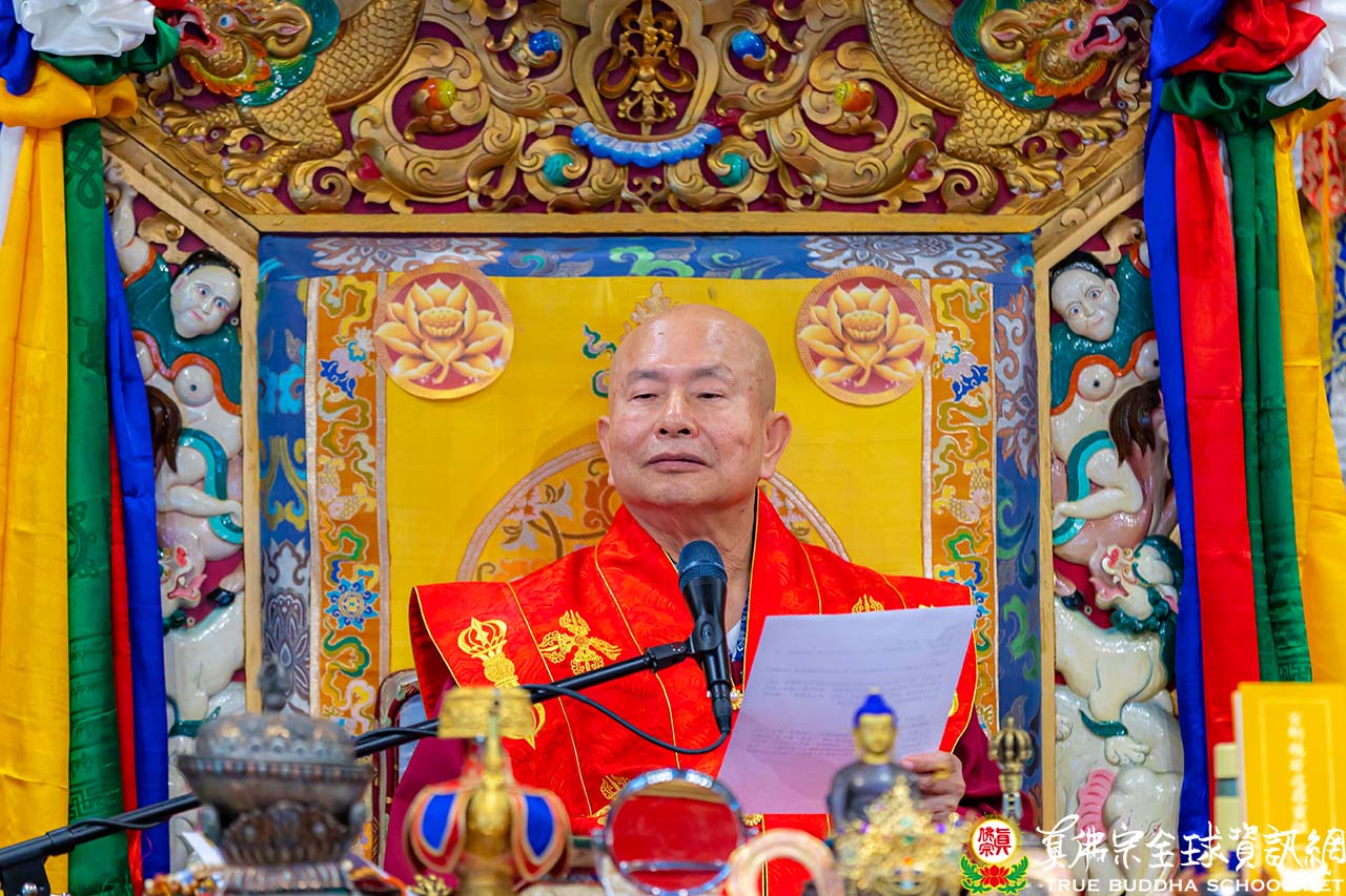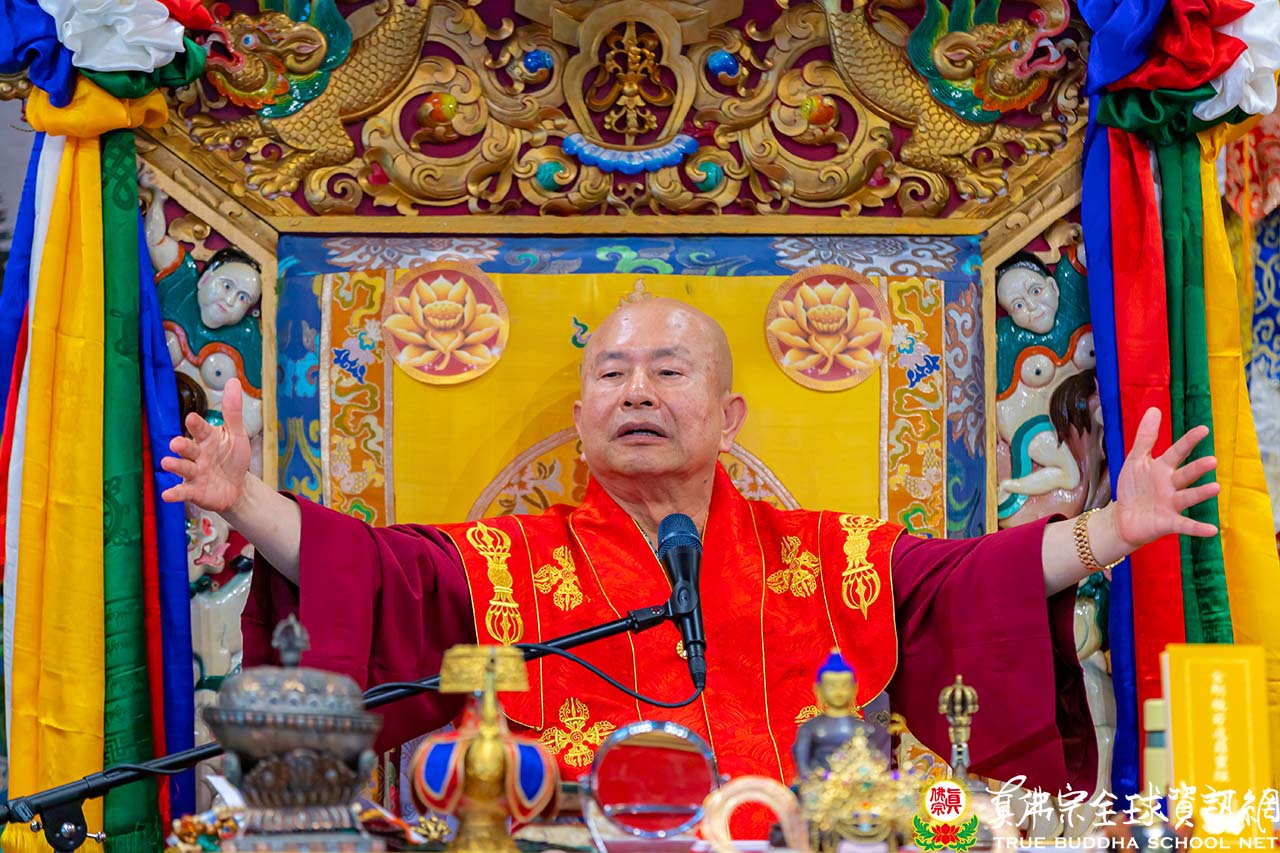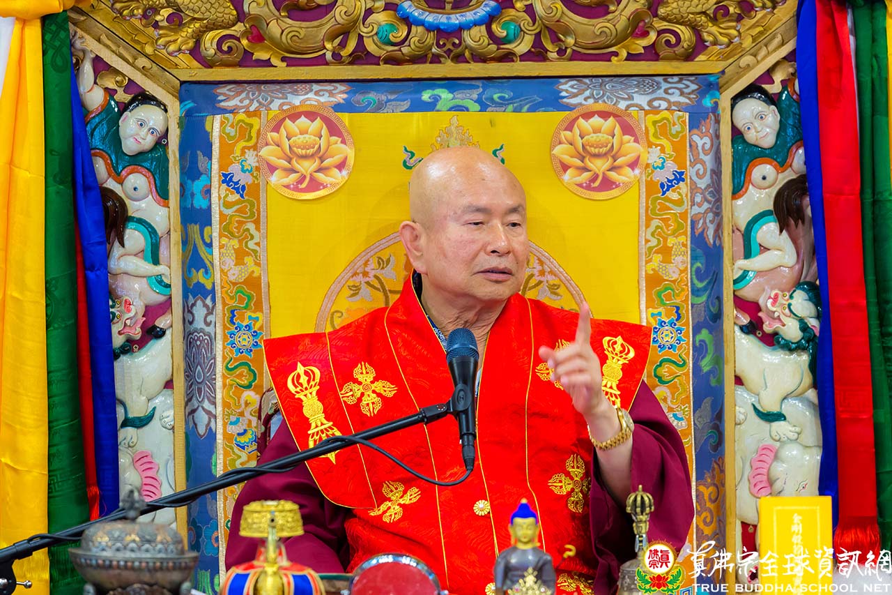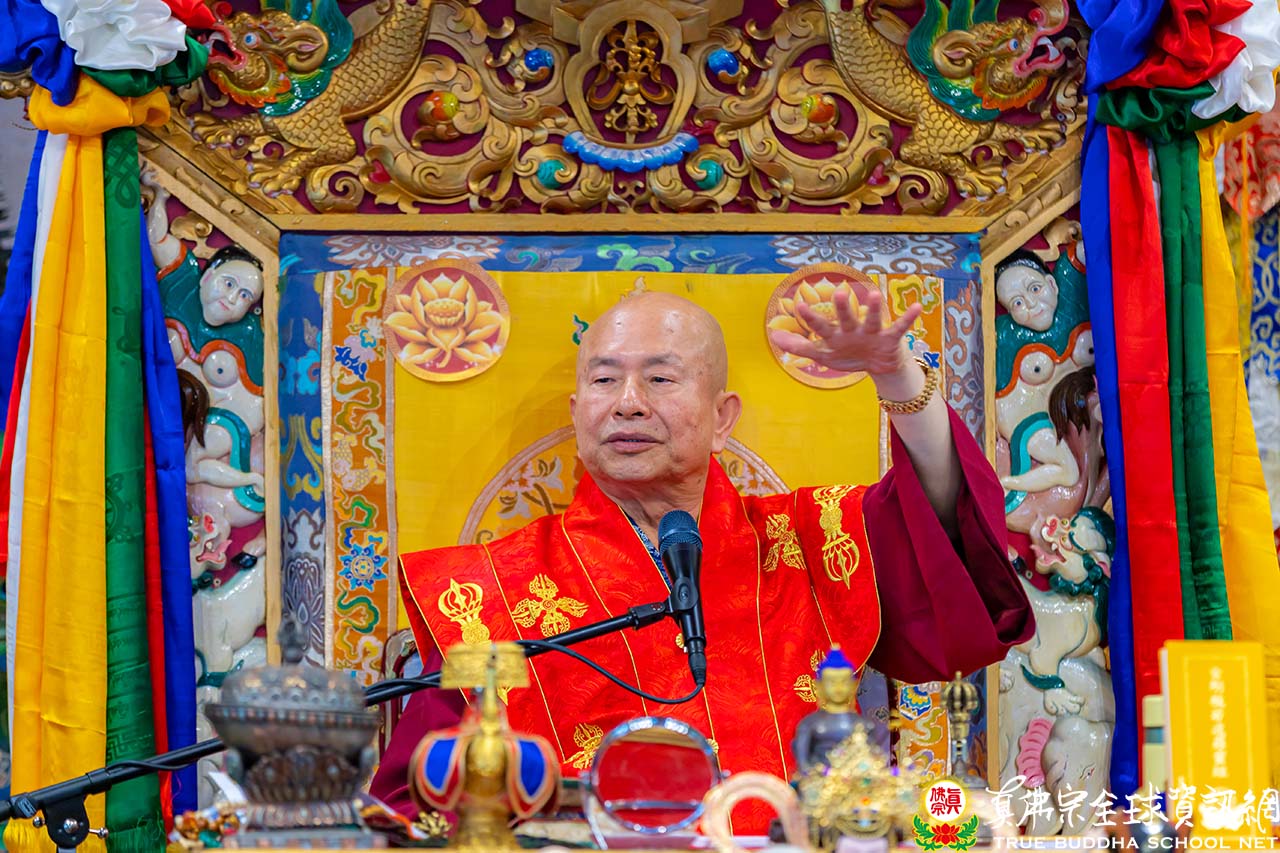 法王告訴大眾今天護持和主祈法會的人有福了,因法王看見金剛鈎三轉,財富如虛空中的供養雲一樣,無量無邊,賜給與會大眾。此場景有如法王當年去台灣銀行看風水,鈔票堆積如山,一望無際。此外,極樂世界許多七珍八寶都是勾財天女鈎來的,包括華嚴淨土的七寶行樹、觀世音菩薩圓通淨土的甘露鈎回摩訶雙蓮池、鈎金沙琉璃做宮殿及帝網明珠作光明。祂將最好的鈎到極樂世界,是非常偉大的財神。隨後,法王提醒大家釋迦牟尼佛有一個戒律,若非有要事而不克出席,弟子在距離方圓50里內不參加根本上師的法會,便是犯了戒律中的輕忽罪,未來七世生將降生在貧窮之家。如果永遠不參加根本上師法會,將會因輕視所有法會,對法不聽不理而成為輪迴一百世的蛤蜊。法王解釋戒律的緣由是因為六個比丘常犯戒,所以佛陀制定了所有一切的戒。同時讚歎須菩提,當年釋迦摩尼佛二轉法輪宣說無相的法義,須菩提都如約而至。祂只缺席過兩次,原因是生病而無法行走和家中奔喪,因此祂是精進的代表。