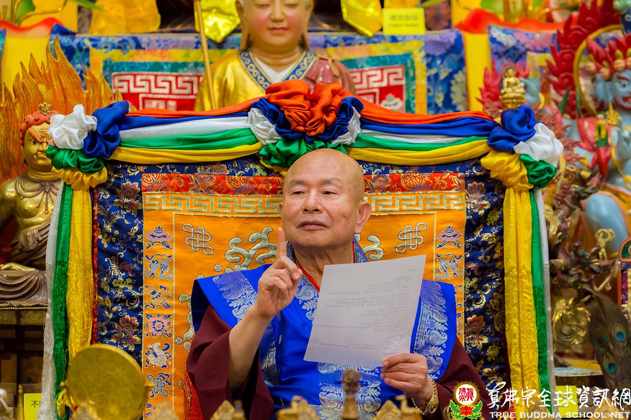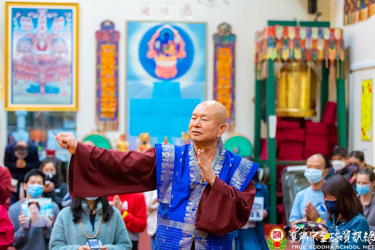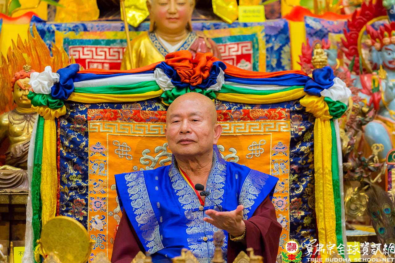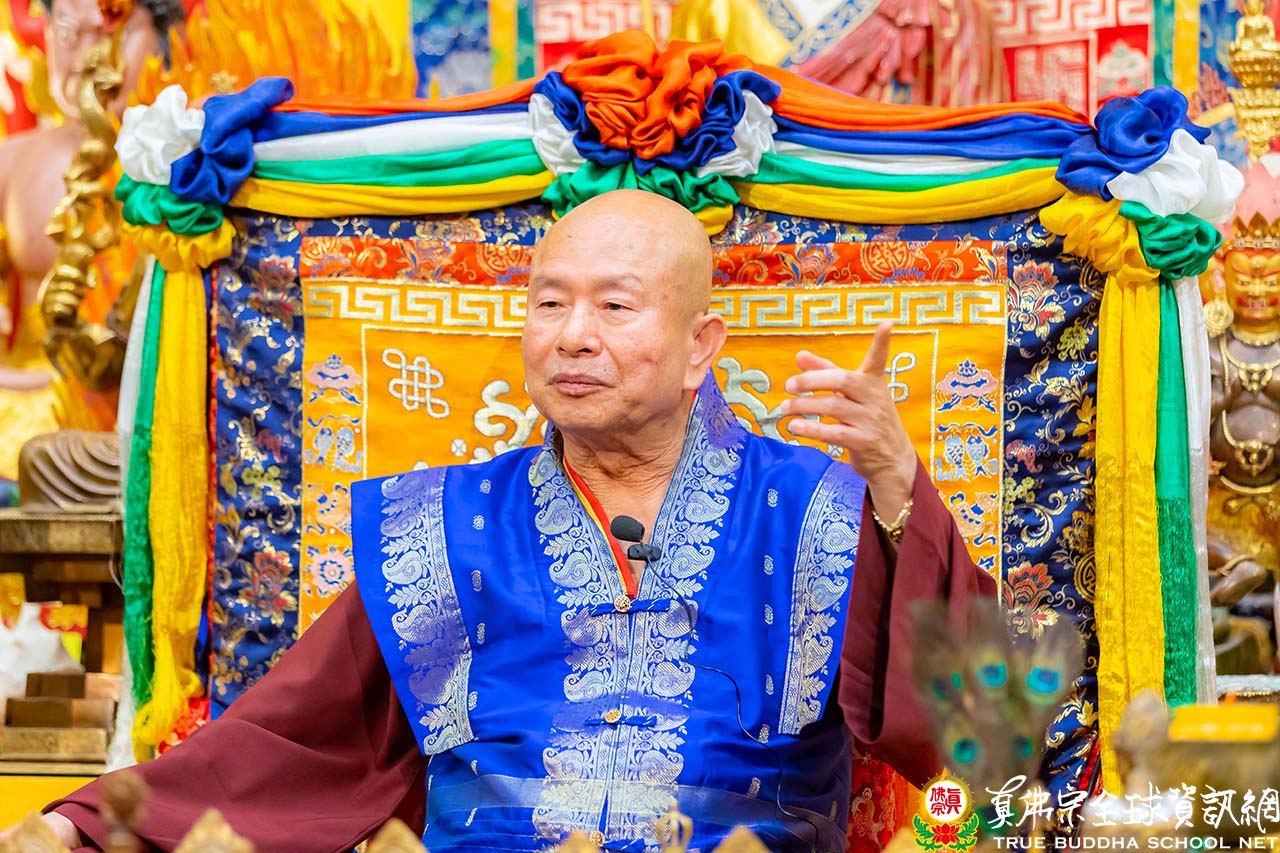 二零二一年九月十一日,聖尊蓮生活佛盧勝彥主持西雅圖雷藏寺週六同修「藥師佛本尊法」暨講解《金剛經》。