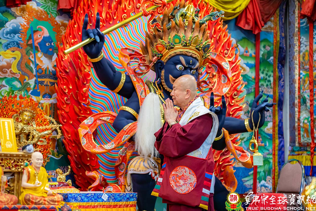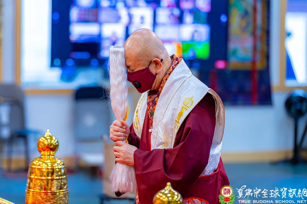 2021年9月26日,下午三點,西雅圖彩虹雷藏寺恭迎聖尊蓮生法王主壇虎頭金剛護摩法會。隨著殿內響起虎頭金剛威武雄壯的咒音,法王點燃了護摩火。現場與線上弟子們一起融入殊勝的護摩火中,藉由法王的傳承加持力,將身心業障一併燃燒殆盡,清淨光明。