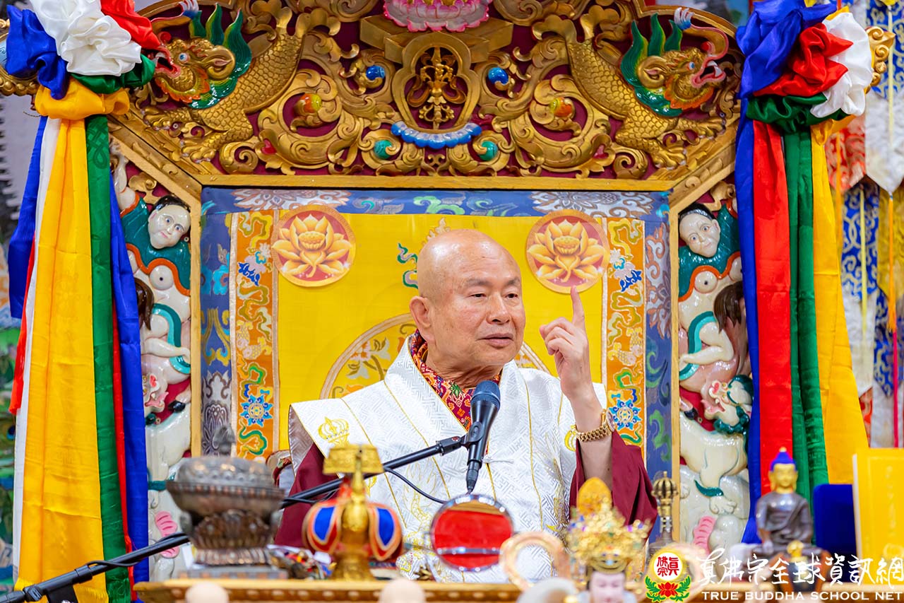 隨後,法王談起瑤池金母是道教的大羅金仙,為何自己學佛也依然敬重瑤池金母呢?因為法王學佛是瑤池金母給的啟示,法王對瑤池金母的敬仰始終如一。法王也分享自己吃素的經歷:當時正在學法的法王一聞葷的味道就會莫名嘔吐,因此只能吃素。直到一年後嗅到葷味後發覺沒有嘔吐反應,才能再次食用葷菜。法王道出耶穌的捨身救眾的精神,告訴大家不分別宗教,對於真理要同樣尊敬。