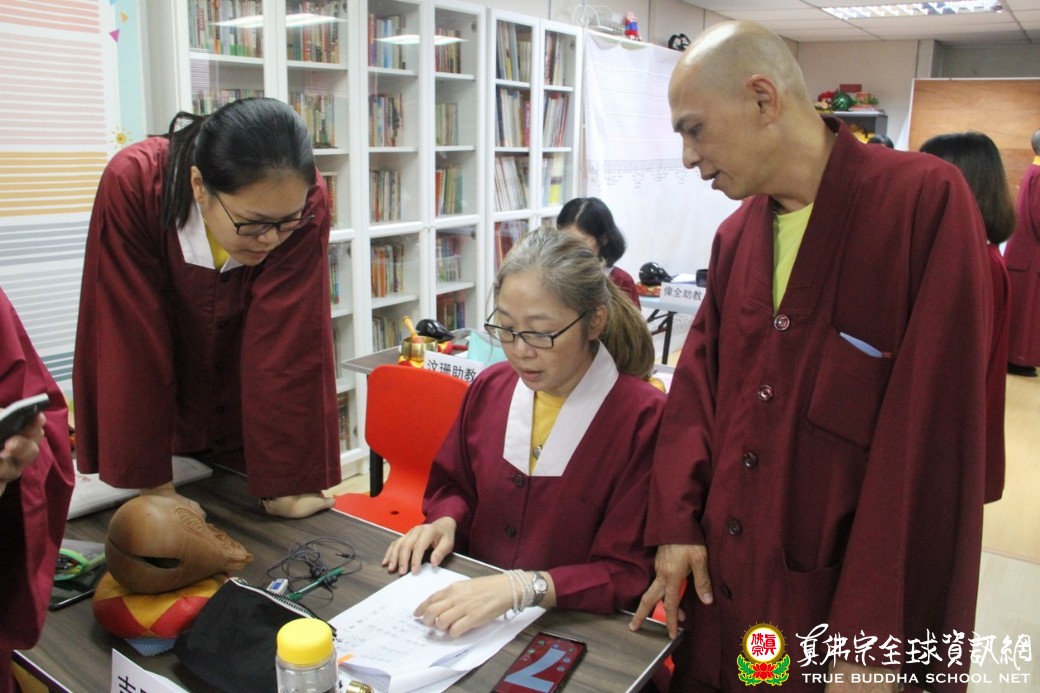 考試時段完畢,學員們在休息片刻後,下堂課繼續緊接著進行。上師慈悲教導大家如何做正確正規的延生位迴向與往生位迴向,尤其在延生位和往生位迴向如何做不同觀想的方面細心與大家細說分明,讓大家清楚了解當中大不想同的地方與細節。