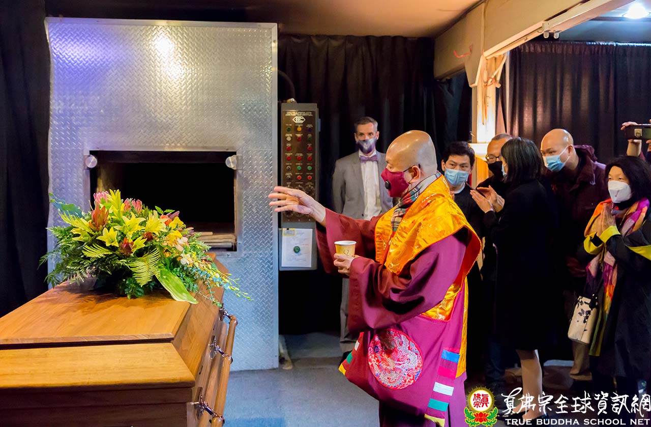 聖尊蓮生活佛稍後慈悲親臨靈堂現場,特別焚香加持蓮印上師的靈柩。根本上師對跟隨多年的蓮印上師所有的加持和最後的中陰救度,都是聖尊不捨一個眾生的大悲願力。聖尊與所有參加者隨後也到達火葬場,靈柩在焚化爐前,聖尊還以大悲咒水及七寶蓮池砂為蓮印上師做清淨,之後便將靈柩推進焚化爐,在阿彌陀佛聖號中,荼毗儀式一切圓滿吉祥!