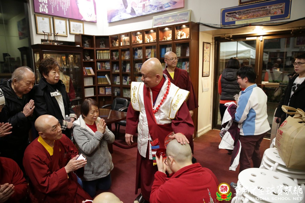 在聖尊精闢的開示結束後,祂為求皈依的信眾們賜受灌頂,並加持大悲咒水,以及開光佛像,臨行前慈悲為大眾摩頂加持滿願。聖尊晚上的慈悲教化,祂的一句「我無來去」,真的令弟子心中洶湧著澎湃的感動,只要弟子們虔信根本上師,只要弟子們憶念根本上師、只要弟子們持上師心咒,祂照樣可以在弟子面前說法。謹此一心虔誠禮敬無上大恩根本傳承上師。