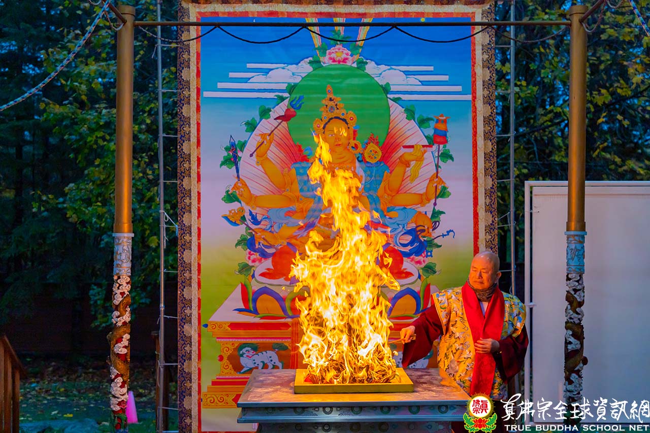 2021年10月17日,下午三點,在西雅圖彩虹雷藏寺舉行了殊勝的大隨求菩薩護摩法會。大隨求菩薩密號又稱「與願金剛」,此菩薩常隨眾生之願求而施予,有求必應,是大家非常期待的主尊。西雅圖結束夏令時,法會相對其他國家推後一個小時開始,虔诚的真佛弟子們早早等在ZOOM線上,生怕錯過參與這盛會的機緣。儘管西城飄著小雨,但弟子們的熱情依然只加不減。