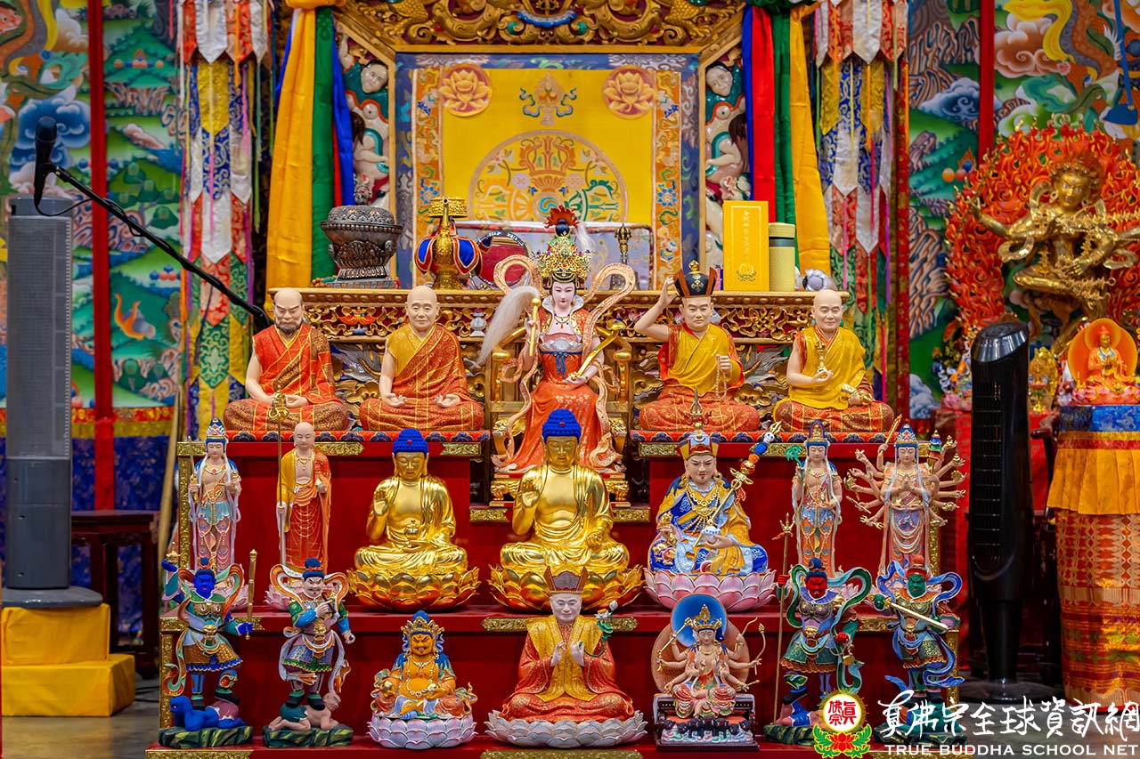 接著,法王提醒大家如果沒有瑤池金母,就沒有盧師尊,也沒有真佛宗,大家亦不會相見。瑤池金母是真佛宗的根源,也是法王第一個相應、最偉大的本尊。法王告訴大家第一尊移民到美國的瑤池金母,現在正供奉在真佛密苑。法王來美前已供奉這尊瑤池金母已久,當時法王委託先到美國的蓮火上師、蓮世上師及蓮主上師將瑤池金母請去供奉。法王到了美國以後,再請到真佛密苑繼續供奉。這是真佛宗在美國第一尊瑤池金母的由來,此後全美的雷藏寺及分堂都開始供奉瑤池金母。