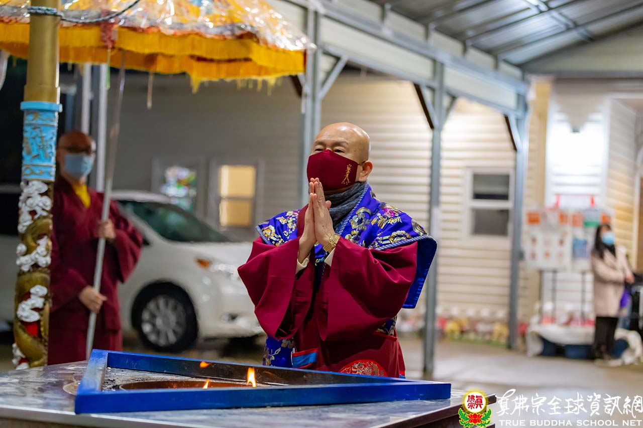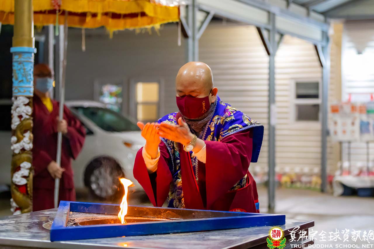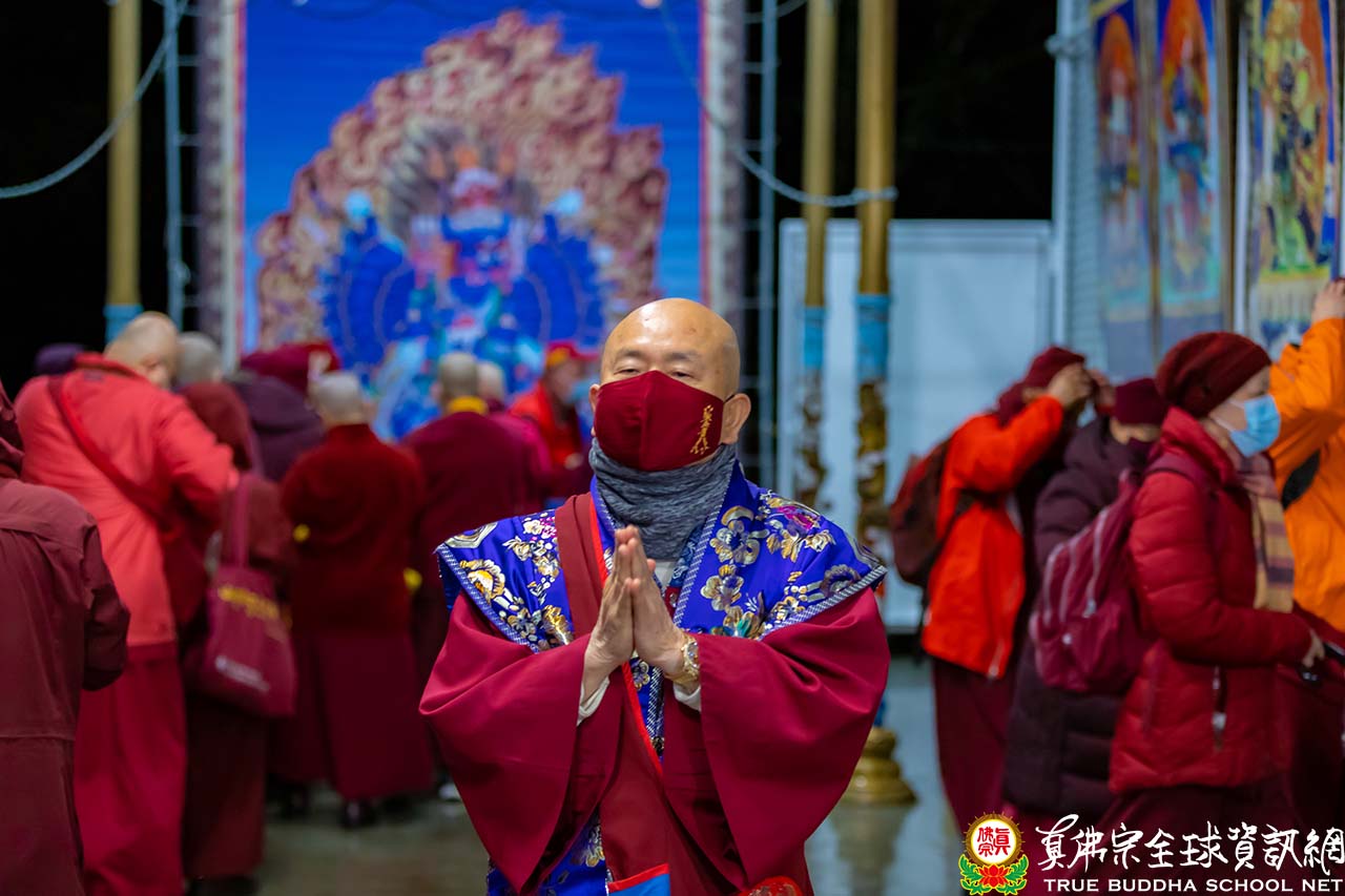法會後,法王帶領大衆頂禮壇城,與線上的同門揮手告別,並賜授『大威德金剛法』灌頂。大威德金剛護摩法會,圓滿結束!