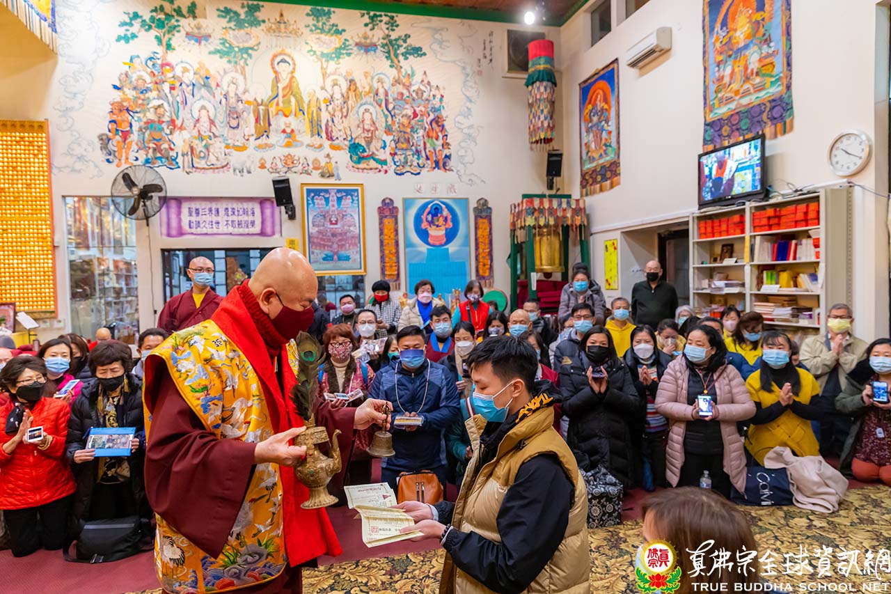 當晚的同修結束後,師尊為新皈依的弟子做皈依灌頂,並慈悲加持大悲咒水及開光佛像,並為與會大眾及網路上的同門善信賜福加持!感恩盧師尊!