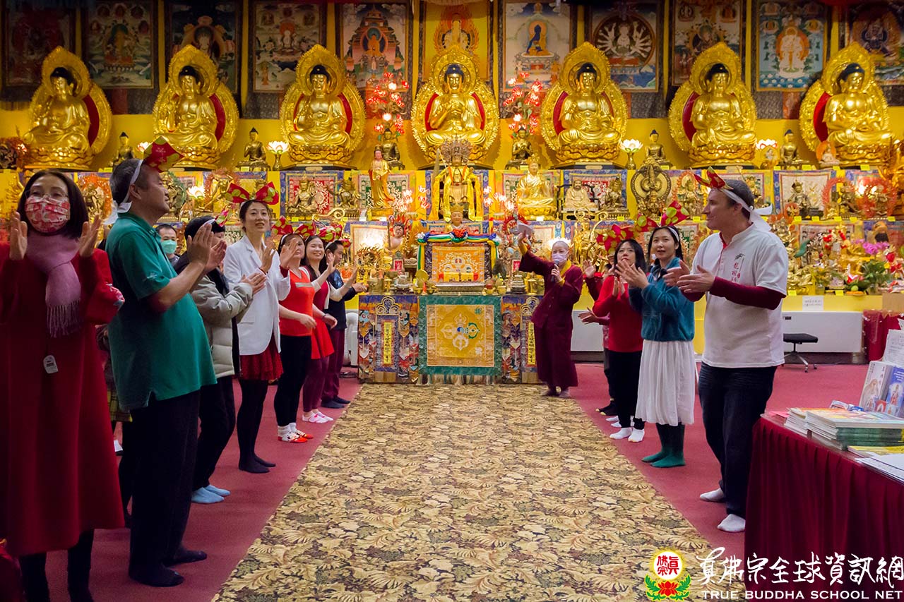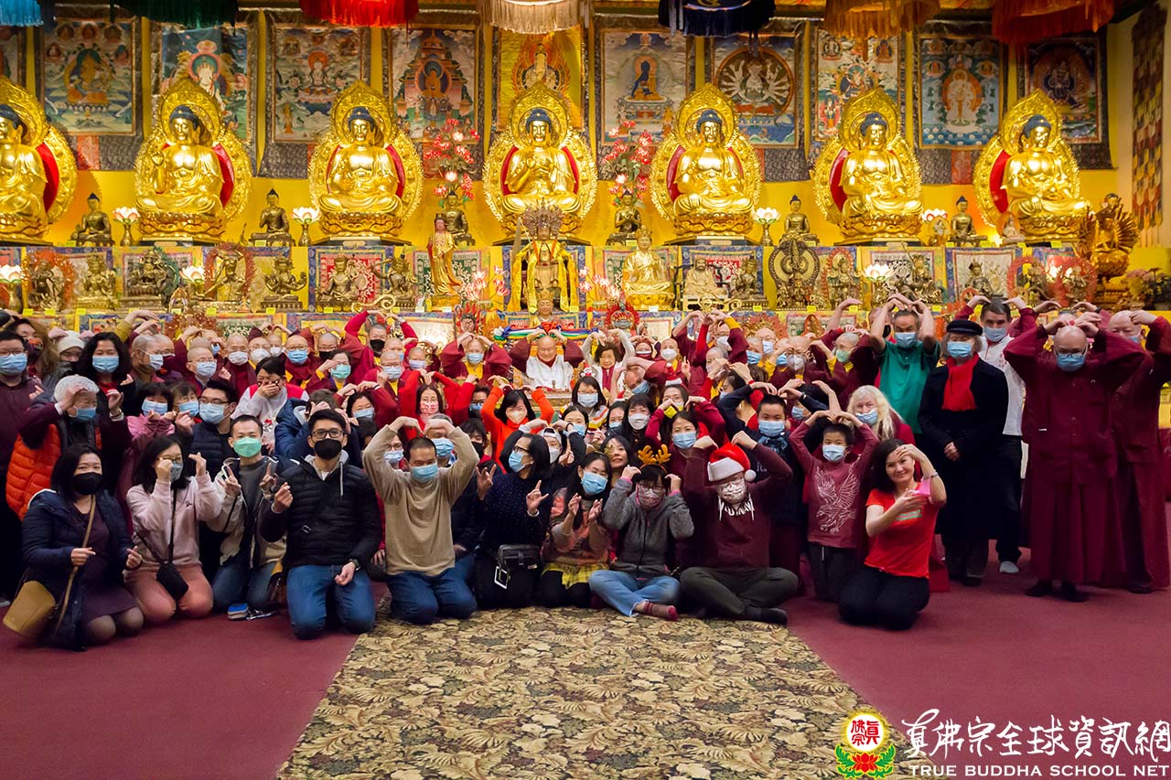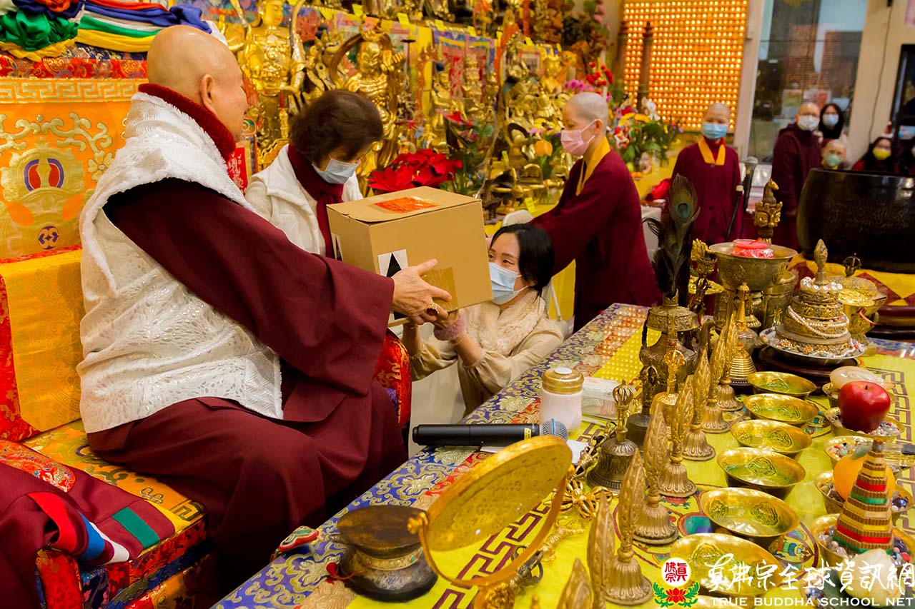 大雄寶殿迴盪著歡樂的聖誕音樂,大眾熱情迎接師佛師母的蒞臨,在恭請師佛上了法座之後,師佛先頒獎給疫情期間負責網路直播等工作的義工們,他們盡心盡力協助推動西雅圖雷藏寺的菩提事業,在此疫情期間,不辭辛勞,排除萬難,讓所有網路上觀看的同門每次都能凖時看到師佛的風釆,與師佛一起同修,聆聽師佛的開示!