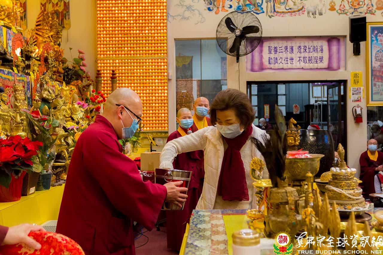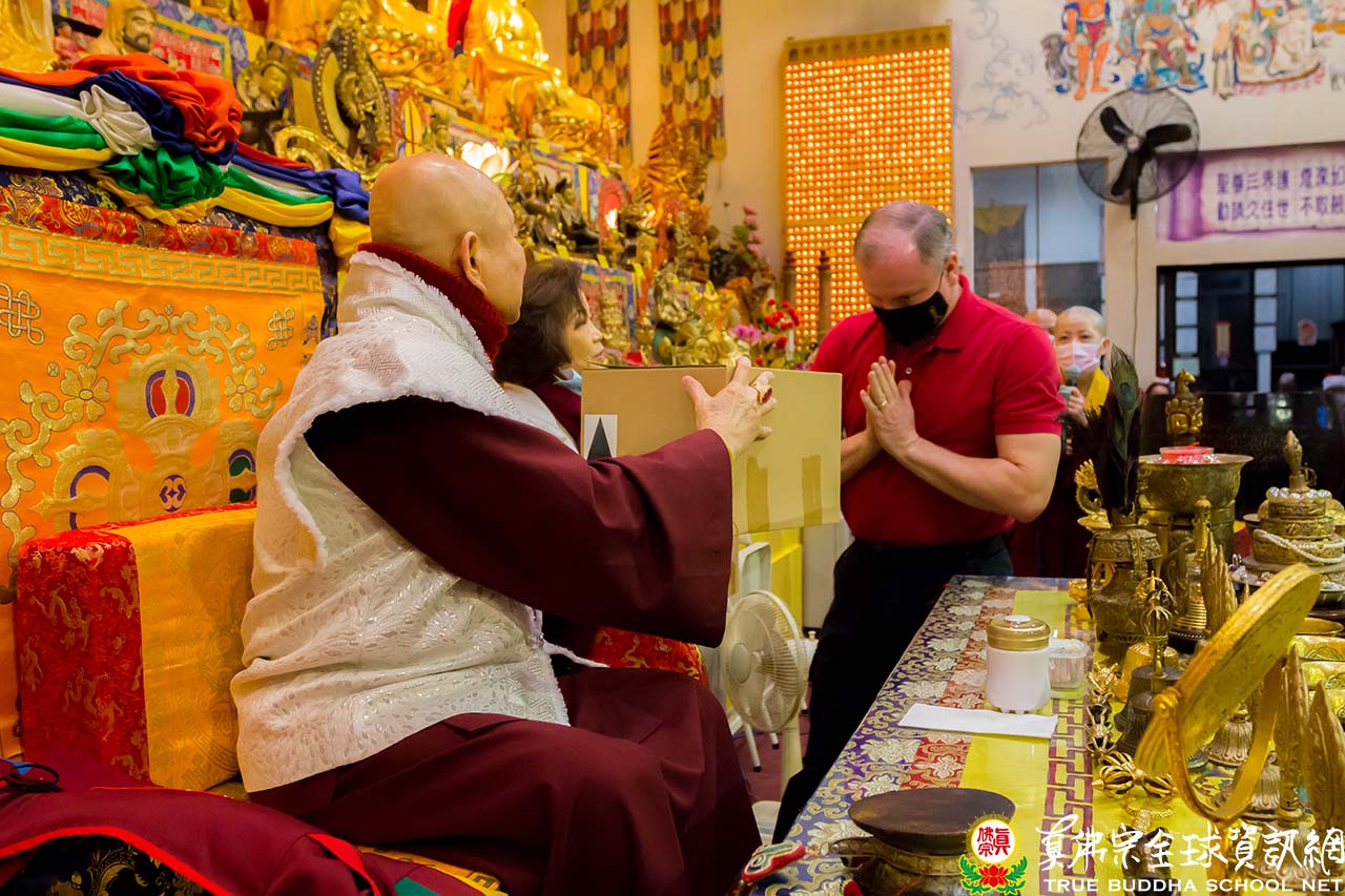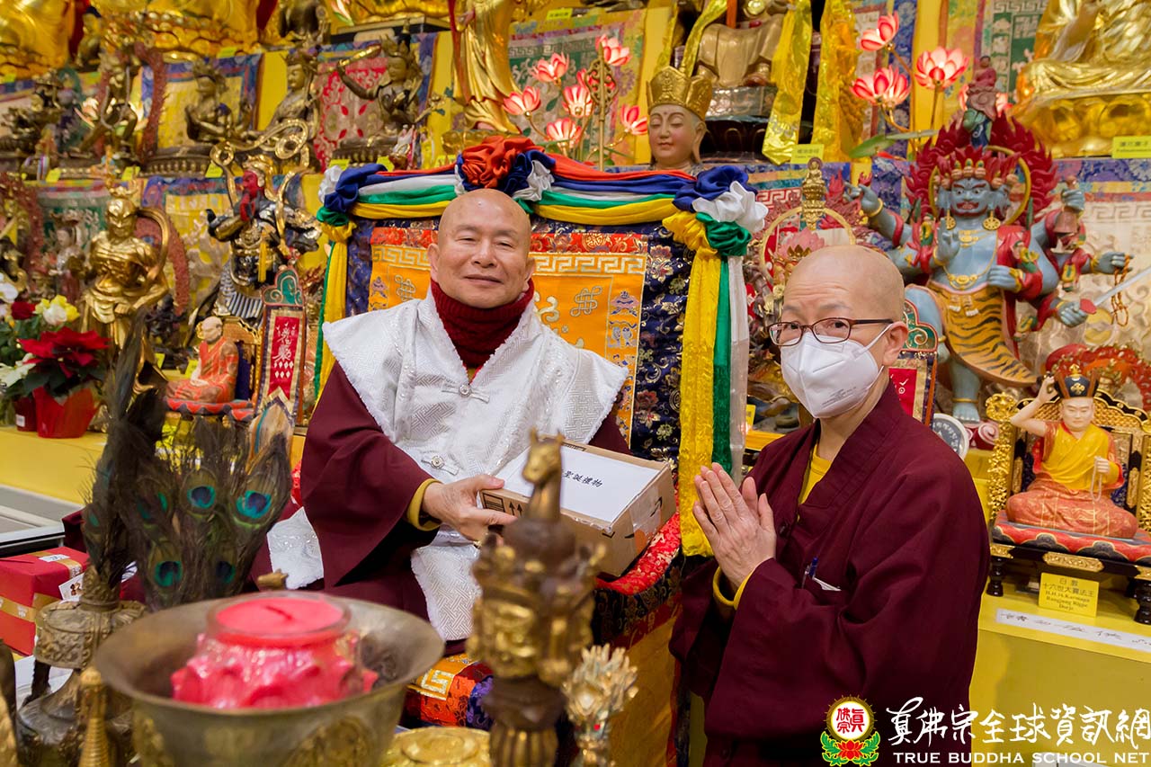 大雄寶殿迴盪著歡樂的聖誕音樂,大眾熱情迎接師佛師母的蒞臨,在恭請師佛上了法座之後,師佛先頒獎給疫情期間負責網路直播等工作的義工們,他們盡心盡力協助推動西雅圖雷藏寺的菩提事業,在此疫情期間,不辭辛勞,排除萬難,讓所有網路上觀看的同門每次都能凖時看到師佛的風釆,與師佛一起同修,聆聽師佛的開示!