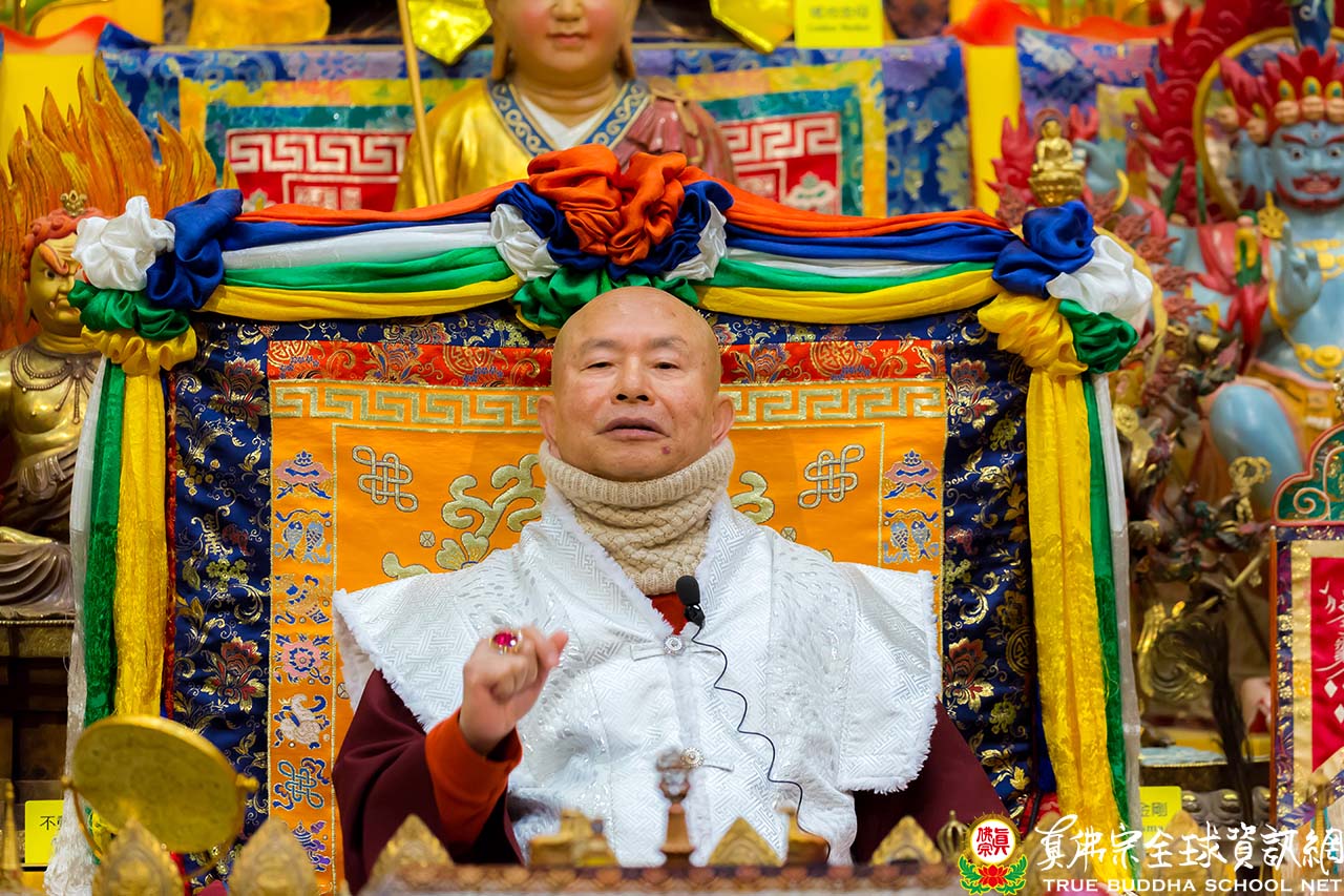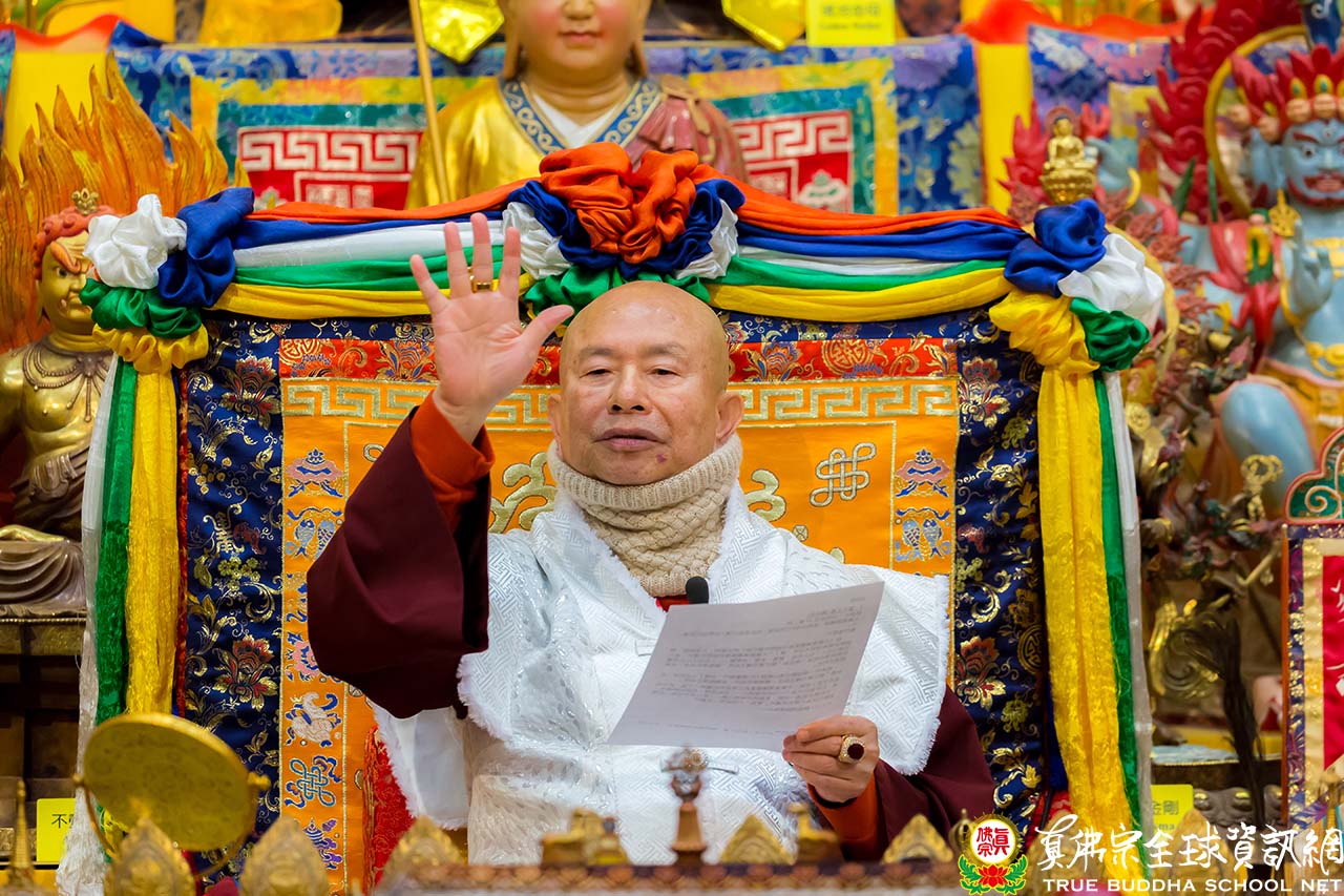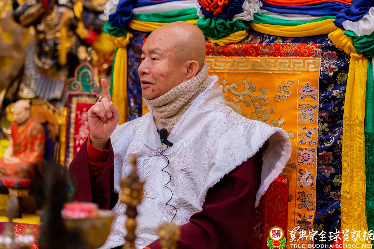 在精闢的法語開示結束後,聖尊慈悲加持現場及網路上的弟子。