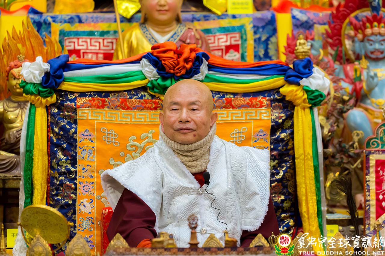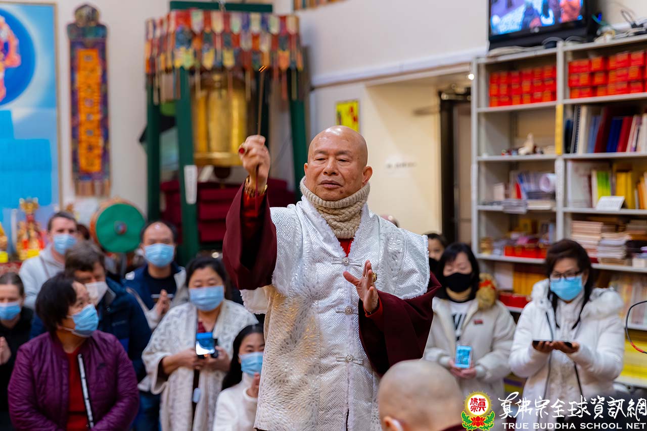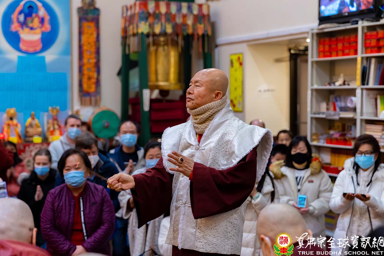 在精闢的法語開示結束後,聖尊慈悲加持現場及網路上的弟子。