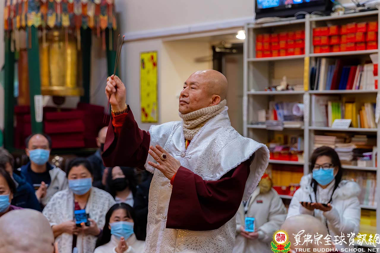 天寒地凍中,西雅圖雷藏寺燈火通明,殿內蓮花童子心咒響徹靜謐的夜,弟子們歡喜踴躍的迎接無上法王聖尊蓮生活佛盧勝彥到來,為大眾主持「蓮花童子本尊法」同修。