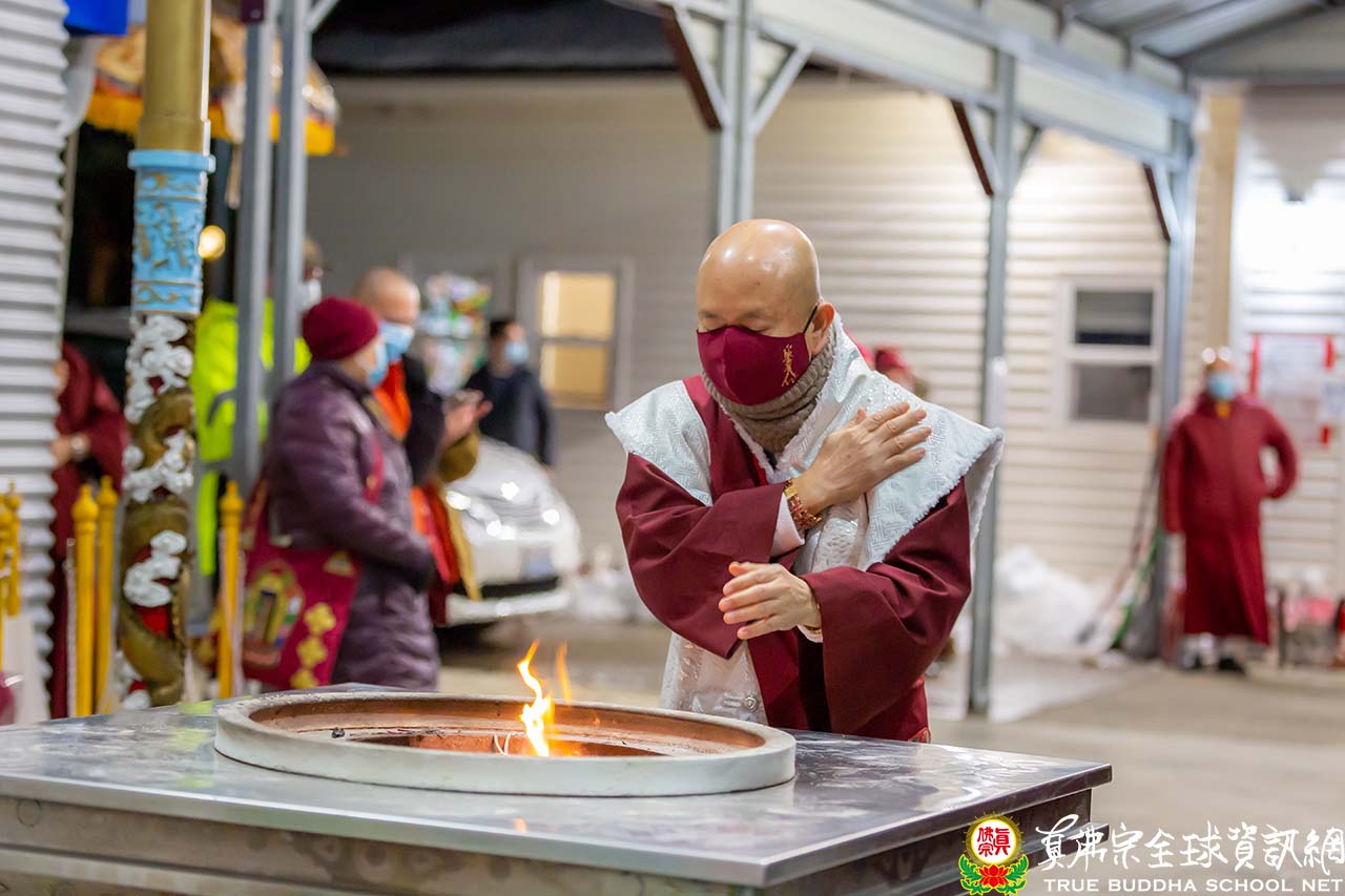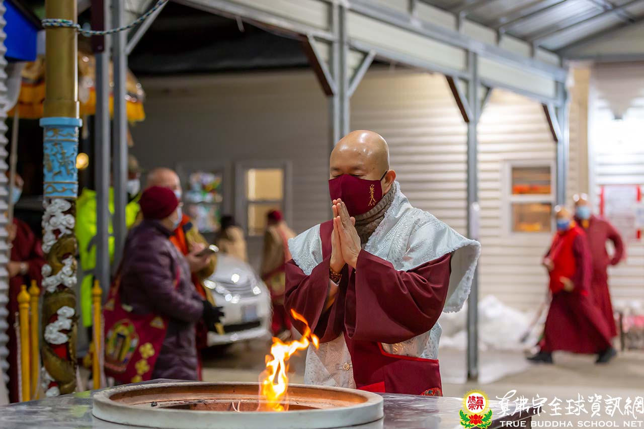 2022年1月9日下午三點,西雅圖的天氣依舊寒冷,但無阻弟子們參與法會的熱情與期待。法會開始前,大會司儀特意叮囑大家注意地滑,小心安全。隨著車子緩緩駛來,大家立即各就各位,恭迎最尊敬的根本傳承上師聖尊蓮生法王。法王帶領大眾頂禮壇城後,便與Zoom上弟子互相問好。隨後,司儀恭請法王上法座,蓮花童子護摩法會正式開始。