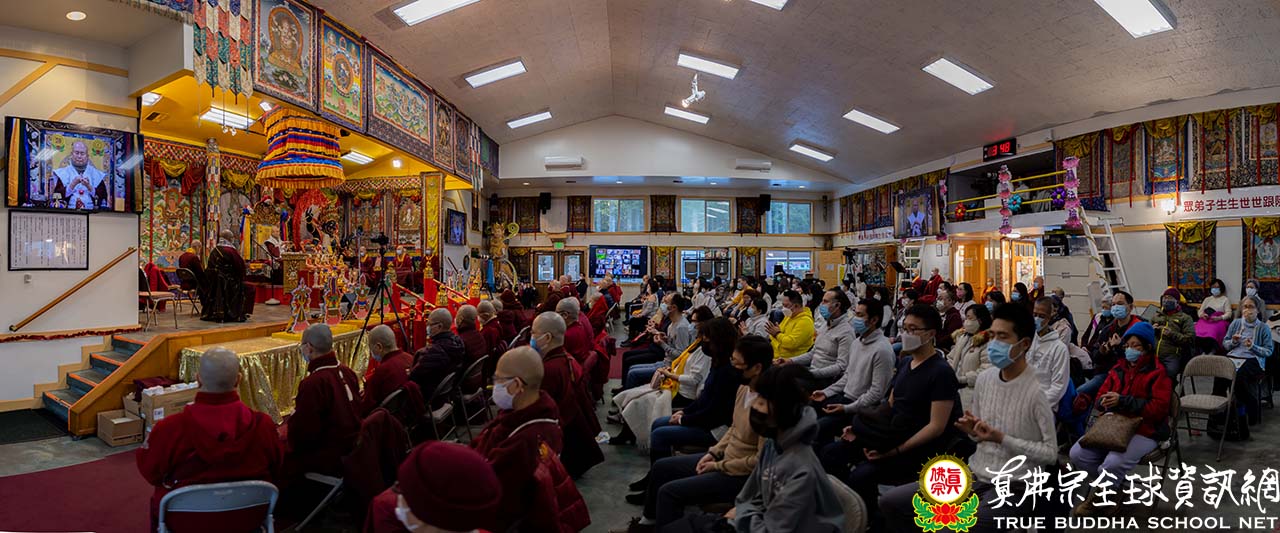 法王分享了金剛經中空的智慧後,便與大家一同欣賞來自教育處的影片。影片中記載了真佛網路大學第一門課【包羅萬象的佛學】課程的進步,護持真佛教育的弘法人員及學員都呈現在畫面中,令人欣喜讚歎。