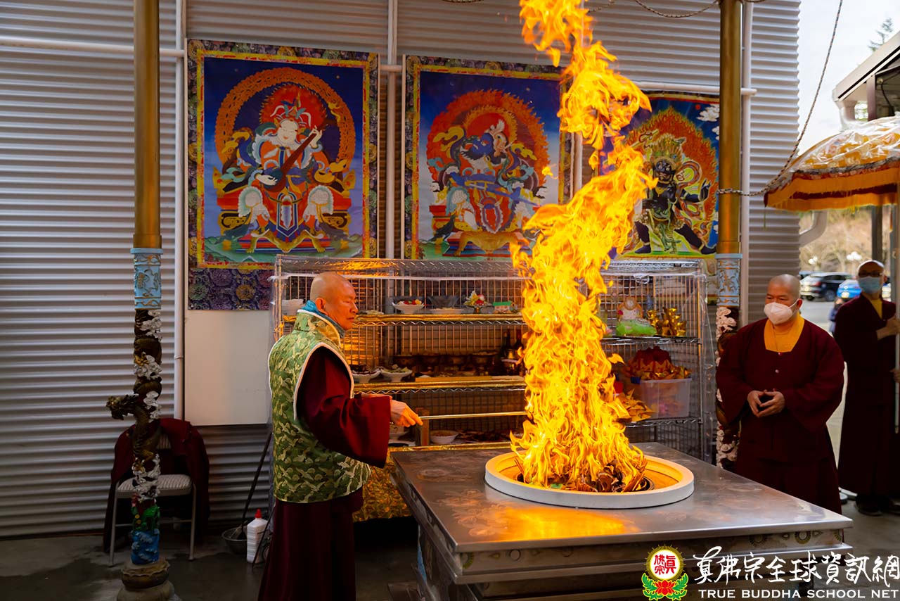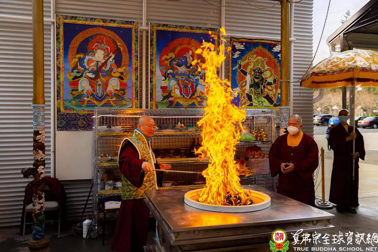 2022年01月16日,下午三點,西雅圖彩虹雷藏寺舉行了殊勝的綠度母護摩大法會,雖是一個寒冷的下午,當蓮生法王的車子緩緩的駛來時,大眾內心的溫度就隨之上升。在頂禮壇城後,法王與ZOOM線上的弟子們親切的打著招呼,這次線上的弟子也包括了在美國加州舉行書展活動的真佛般若藏的執行長周律師和很多的義工同門。每個人的臉上都掛著合不攏的笑容,那份喜悅感染了線上和現場的所有人。