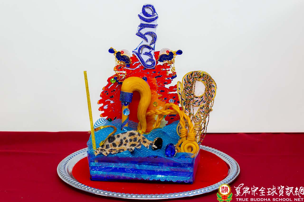 法王表示,今天的主尊「大力金剛」威靈顯赫,只要一比手印,馬上就下降,是真佛宗特聘的大護法。拂塵代表瑤池金母,金剛棍代表蓮花童子,頂上是阿彌陀佛。其本身就是地藏菩薩六侍者中的大力侍者,所以是瑤池金母、阿彌陀佛、地藏菩薩、大力侍者和蓮花童子,五合一的大護法金剛神;持棍可以打暈怨敵,持索可以捆綁怨敵,拂塵可以消除業障,手結期克印表示降伏一切,是故威力無窮。法王說,希望以後同門都要護持大力金剛法會,因爲祂是真佛宗的特聘大護法。法王指出,其右手的大拇指上,就有大力侍者的標志,是地藏菩薩請祂來護持真佛宗的。