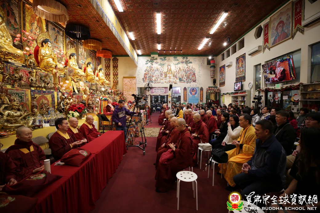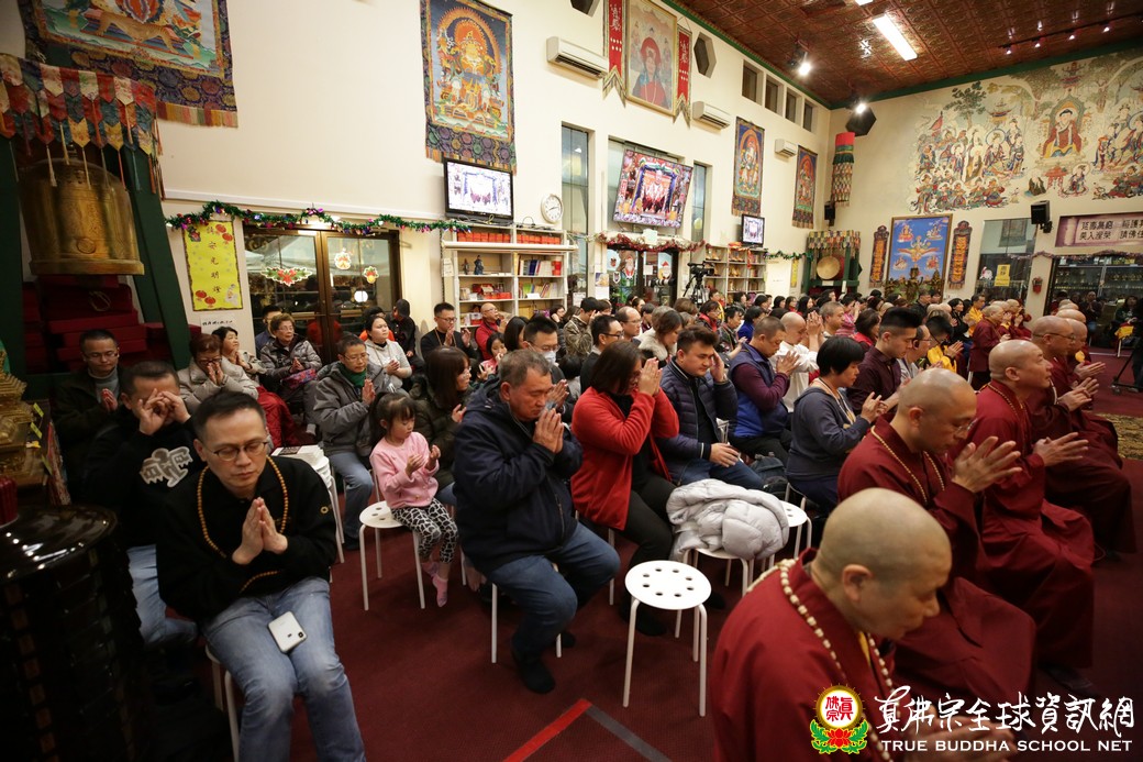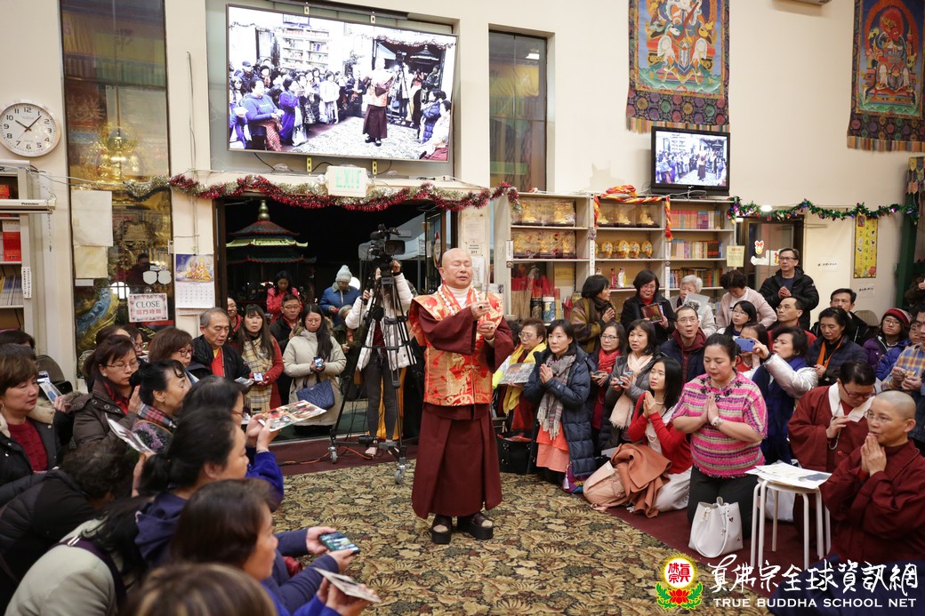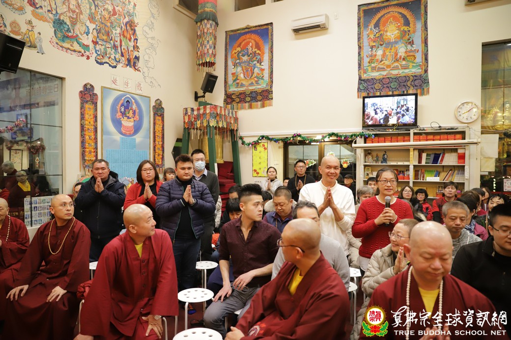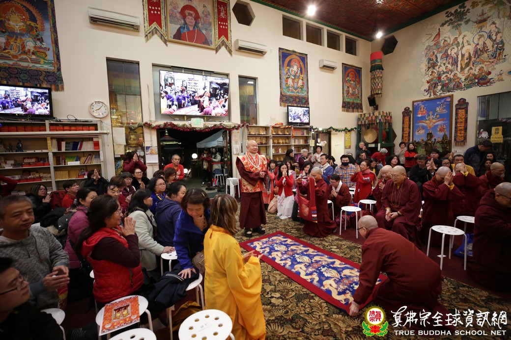本周六祖廟同修的是阿彌陀佛本尊法。在莊嚴圓滿的修法結束後,聖尊首先談到一則讓大家雀躍的真實感應。聖尊談到祂在11月10日主壇彩虹雷藏寺黃財神護摩時,曾於開示中談到吐寶鼠在虛空中吐出四袋的鈔票,當時聖尊就預言一定會有人中獎。聖尊說道,真佛宗是中獎宗,在過去有好多的弟子中過美國的大樂透、台灣的威力彩,或其他國家如新加坡、馬來西亞等,都有人中大獎。