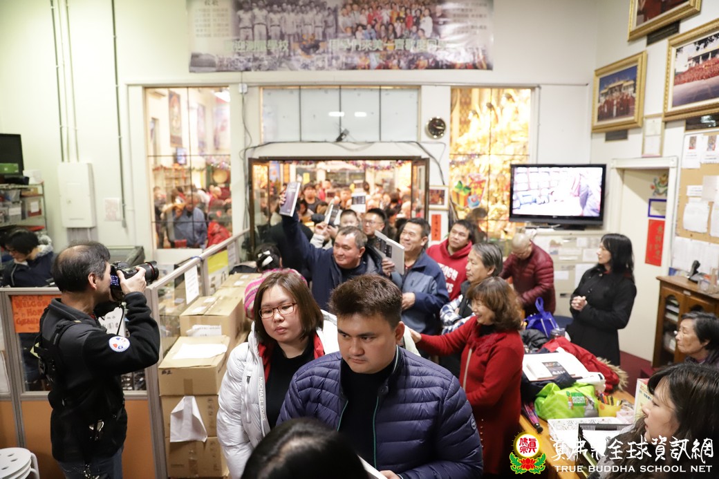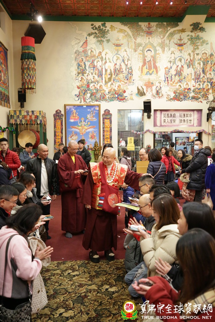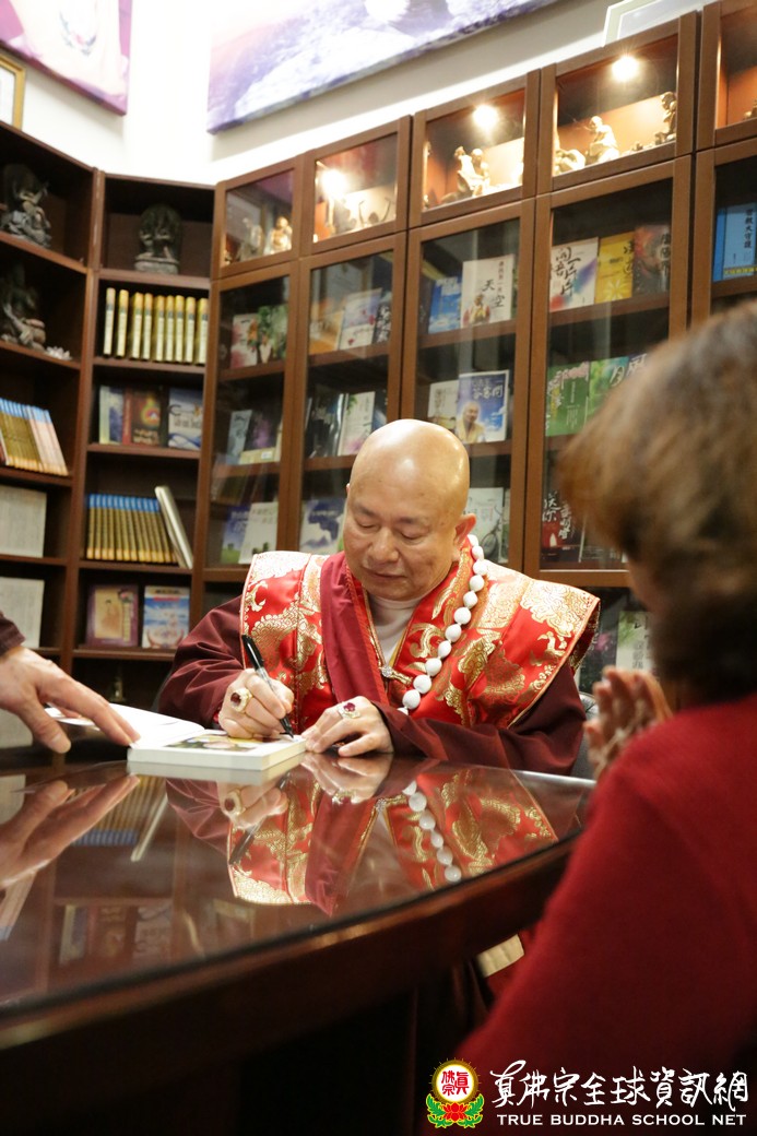會後,聖尊為求皈依的信眾賜授灌頂,並加持大悲咒水,以及開光佛像。聖尊給予大眾加持完後,還不辭辛勞為弟子簽書,最新的第274冊文集【小小叮嚀】。臨行前還為雷藏寺裡排得滿滿的信眾,一一摩頂加持。