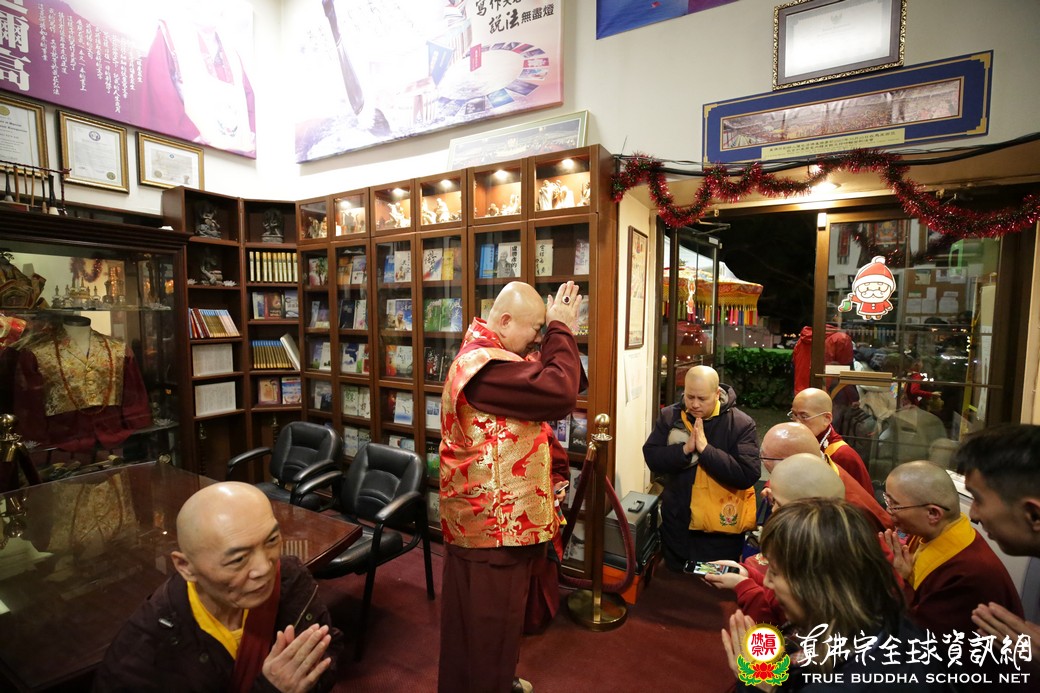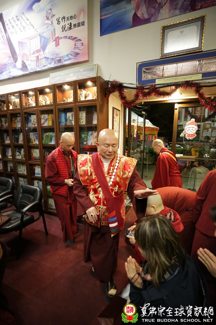 美國的聖誕節即將到來,西雅圖雷藏寺的小社區裡,都用了七彩的聖誕燈,將房宅妝點得十分熱鬧璀璨。祖廟前也佈置了充氣式聖誕老人、雪人、麋鹿等,不但吸引了小朋友的眼光,連大人也非常享受這佳節的氣氛。許多來自世界各地的同門不約而同的都來到了西雅圖,準備和聖尊、師母一起共度一個開心的耶誕佳節。