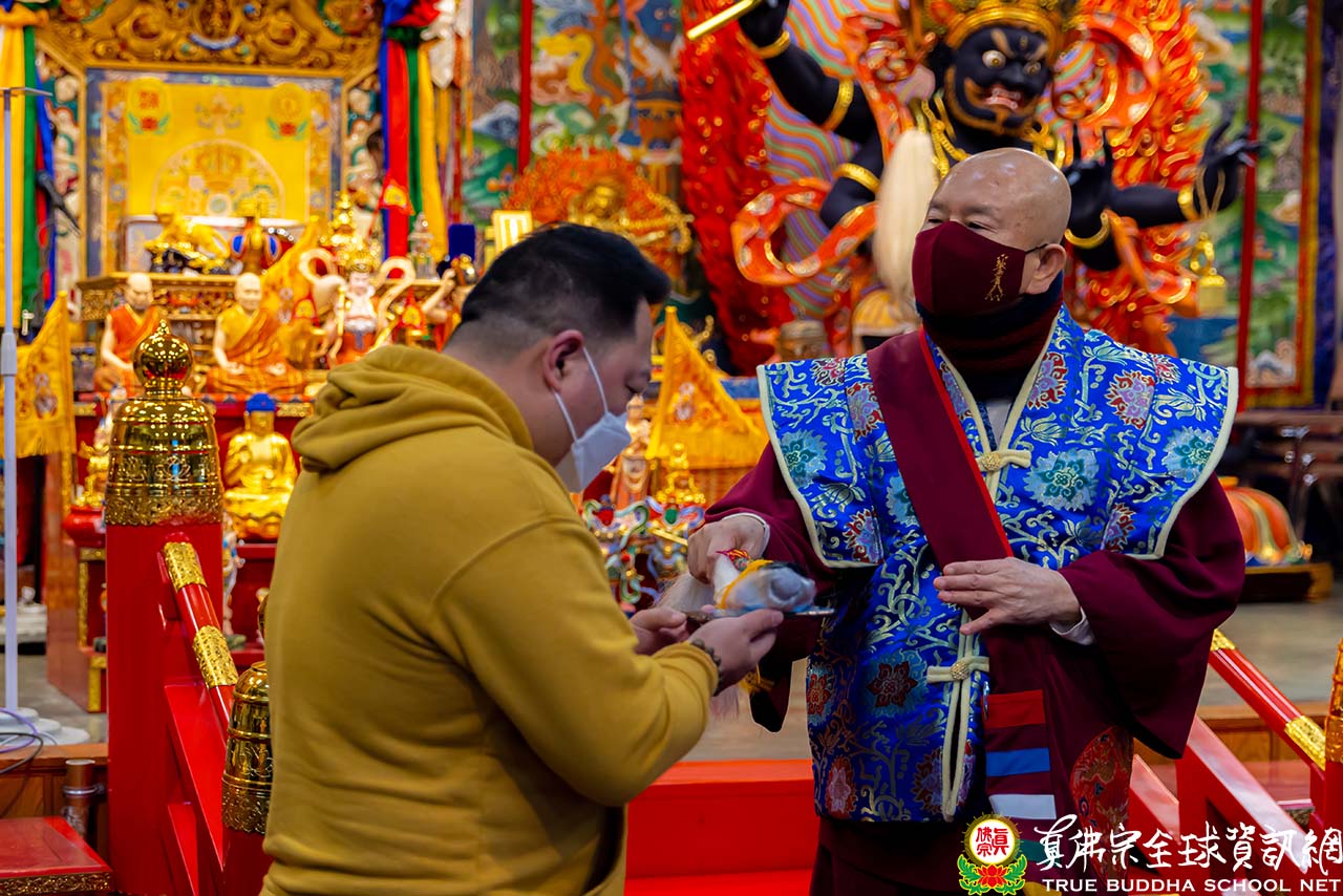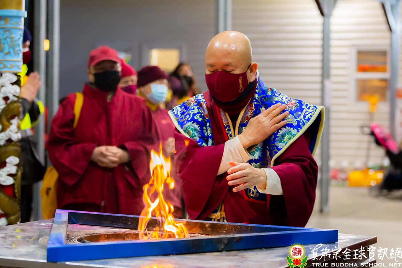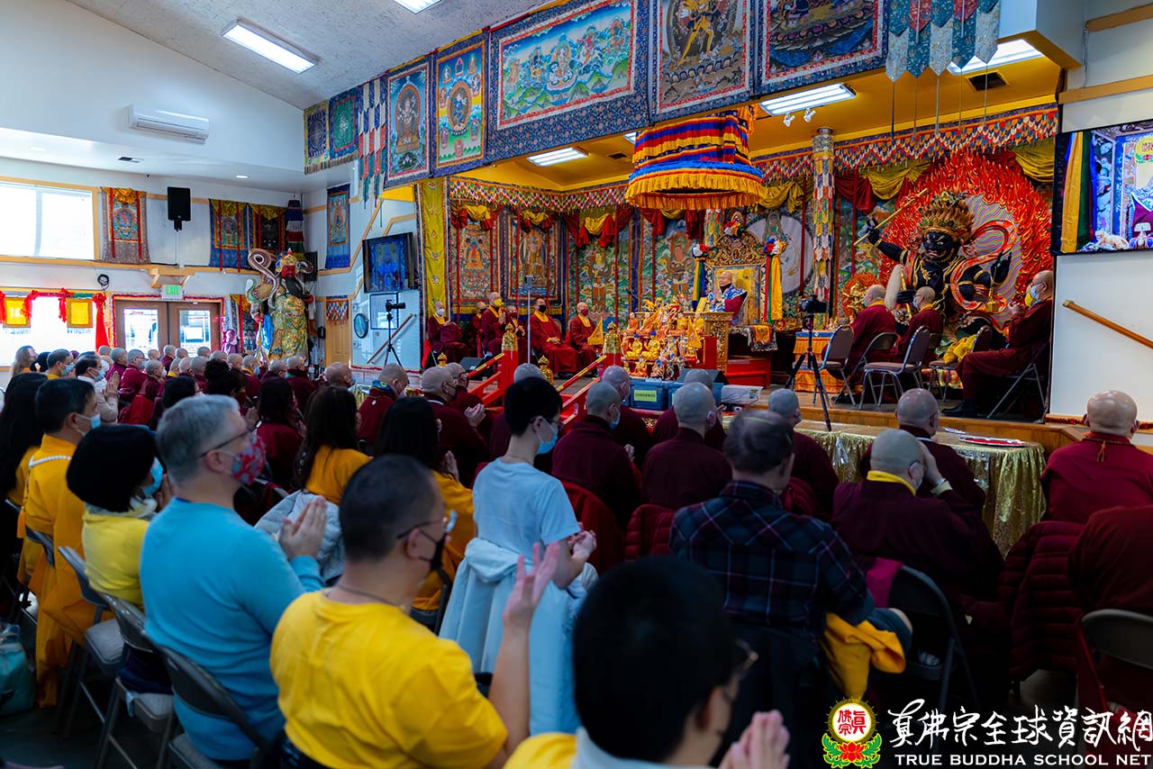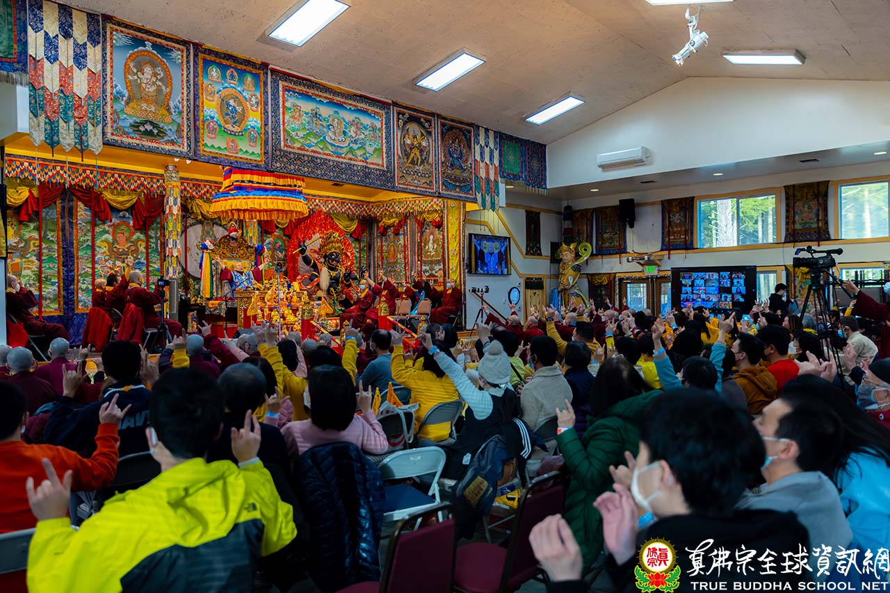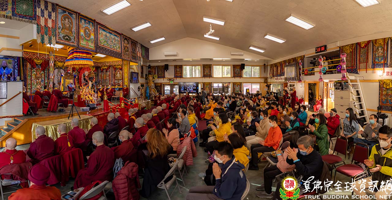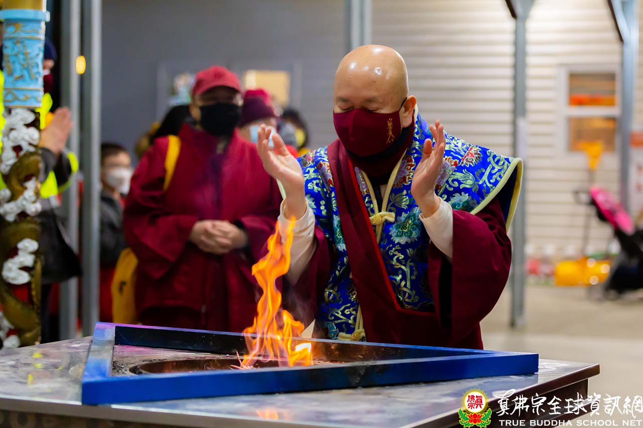 2022年2月6日大年初六,大家都沉浸在歡慶農曆新年的喜悅之中。這一天,美國西雅圖彩虹雷藏寺恭迎聖尊蓮生法王主壇虎頭金剛護摩法會。法王抵達雷藏寺後,先帶領大眾頂禮壇城,然後移駕至Zoom屏幕前與世界各地的弟子互相問安。弟子們紛紛向法王祝賀新年快樂,氣氛其樂融融。恭請法王上法座後,農曆新年的第一場護摩法會正式開始。