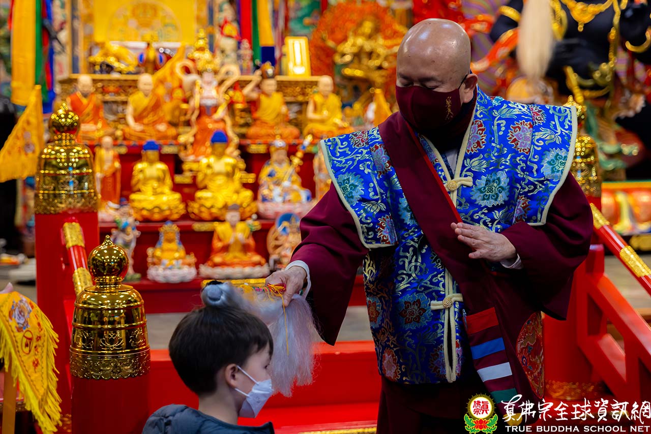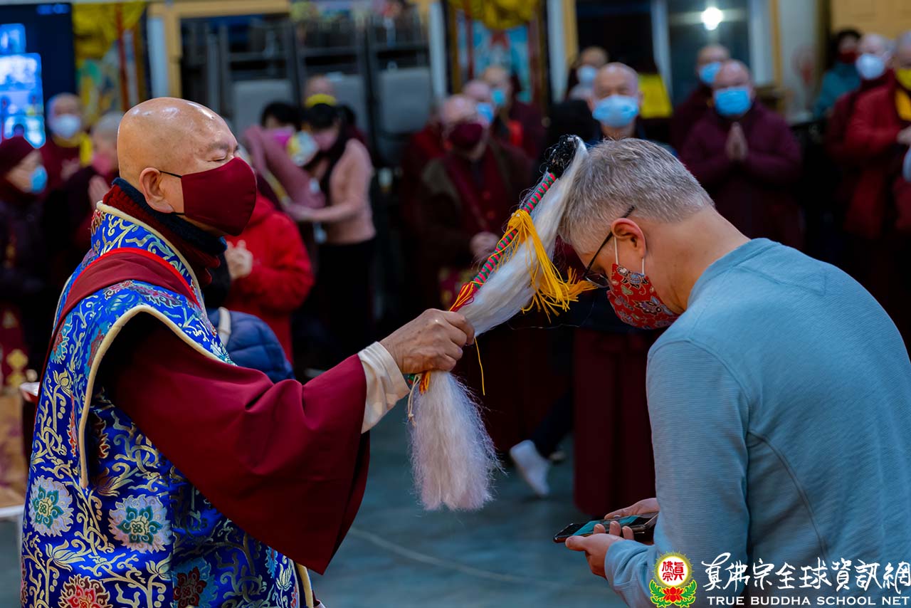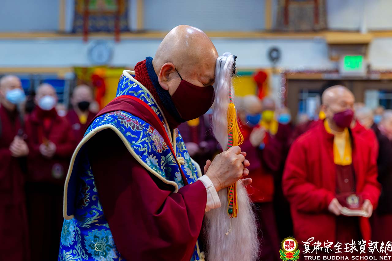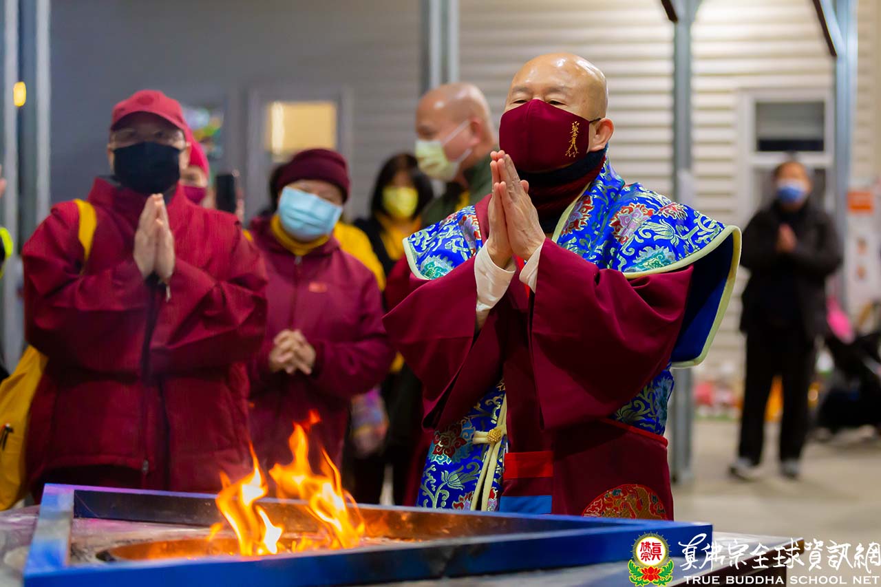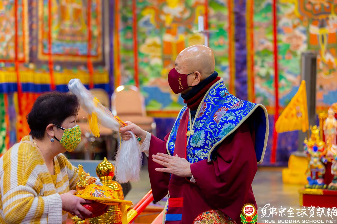 2022年2月6日大年初六,大家都沉浸在歡慶農曆新年的喜悅之中。這一天,美國西雅圖彩虹雷藏寺恭迎聖尊蓮生法王主壇虎頭金剛護摩法會。法王抵達雷藏寺後,先帶領大眾頂禮壇城,然後移駕至Zoom屏幕前與世界各地的弟子互相問安。弟子們紛紛向法王祝賀新年快樂,氣氛其樂融融。恭請法王上法座後,農曆新年的第一場護摩法會正式開始。