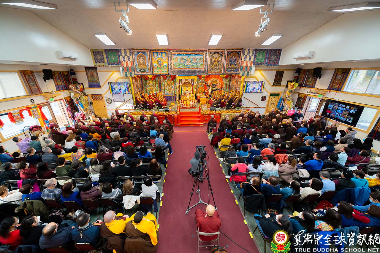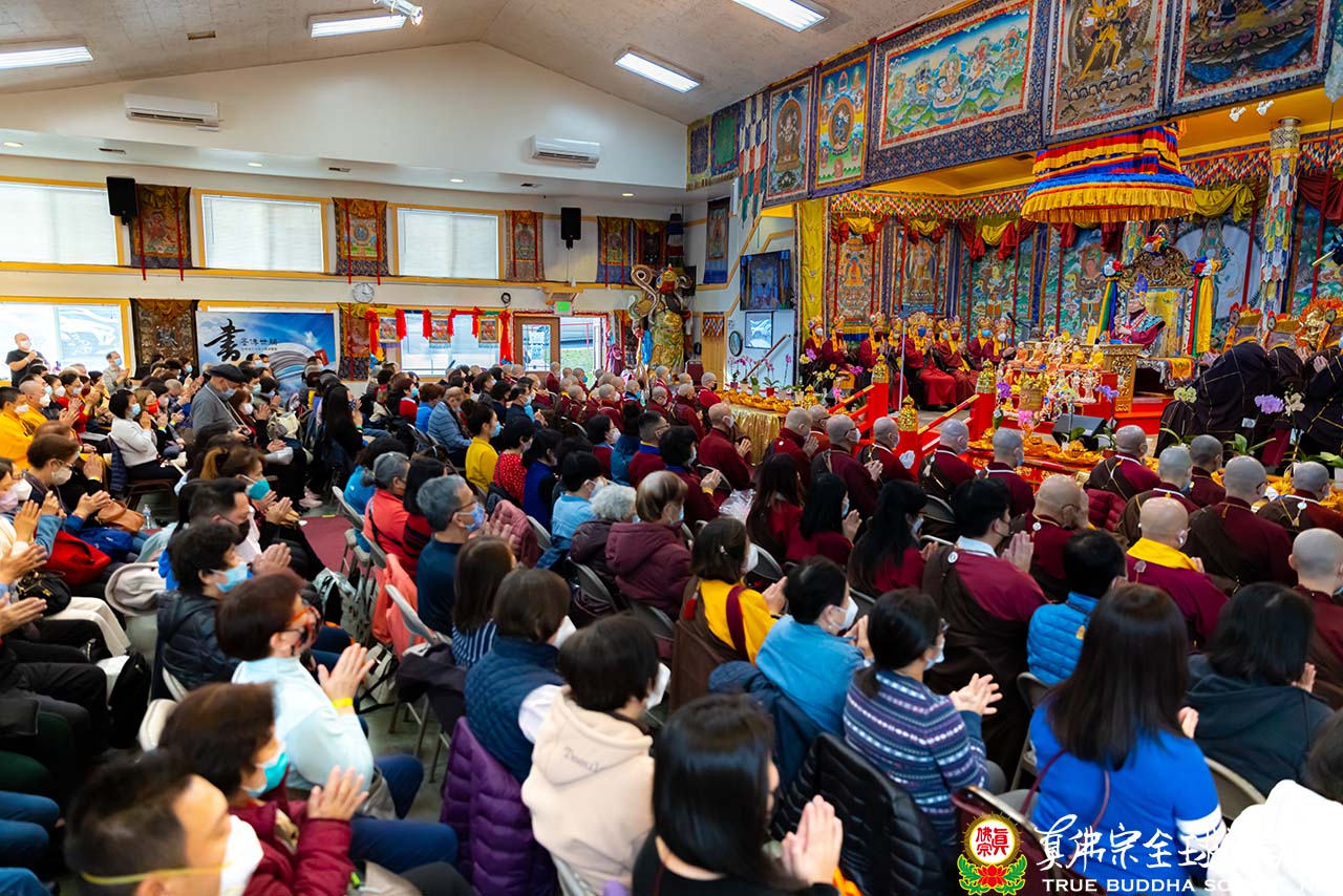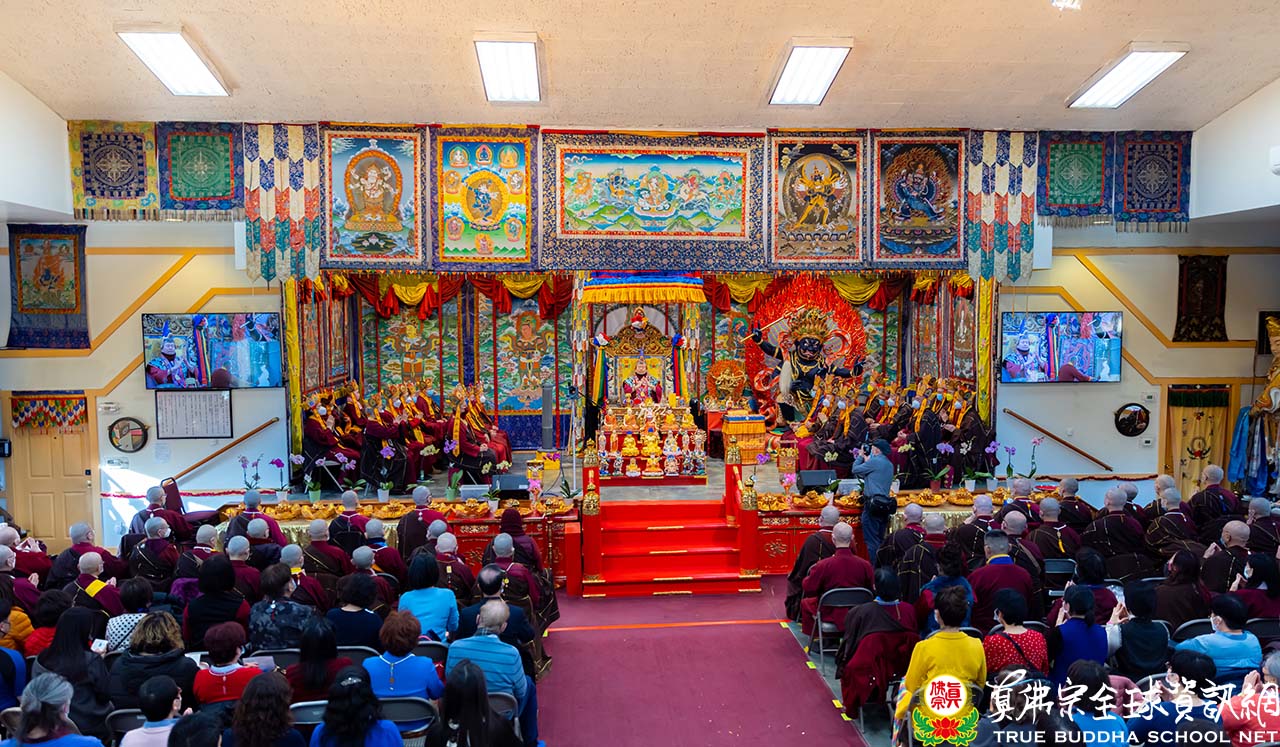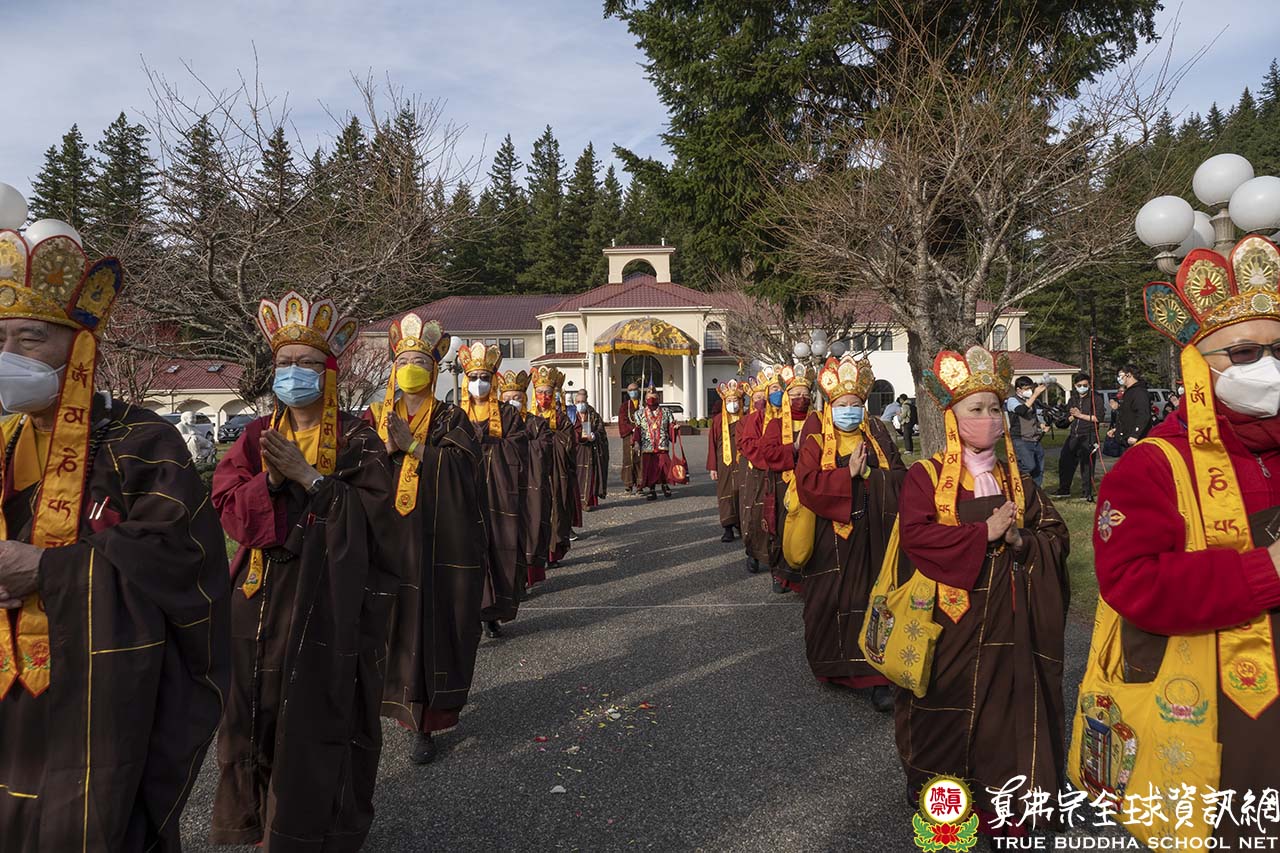 2022年02月13日下午三時,彩虹雷藏寺舉行了殊勝的大幻化網金剛護摩大法會,儘管疫情還未完全消除,但法王聖尊蓮生活佛慈悲,希望圓滿每一位眾生,主壇了這一場萬人期待的大法會,為弟子們加持,賜福健康平安。氣勢恢宏的大法會終於在兩年的隔離後回歸了眾人的視野,莊嚴的迎師團,三點時分準時出發了,浩浩蕩蕩的上師團隊伍緩慢莊嚴地向護摩殿行進,法王在隊伍的最後出現,虛空之中瑞雲千條,大日現出光環,光燦大地。護摩殿蓬蓽生輝,不僅現場爆滿, Zoom線上也有七百餘人,YouTube上有三千餘人共同參加當日的盛會。
