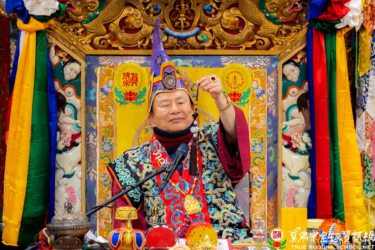 法王開示:今日是大幻化網金剛護摩法會,最主要的意義在於賜予健康,因為昨日的法會是賜予福分,但是沒有健康的身體福分也等於零。修行也要有健康的身體,全身疼痛的身體必然影響修行。人生雖如夢如幻,但在這個夢幻的人生裡需要健康的身體。同時健康能夠讓腦海清明,才能夠有智慧。福分,智慧與健康的身體形成一個三角形,而大幻化網金剛的手印也是一個三角形。大幻化網金剛也象徵著至高無上的大靈,阿達爾瑪佛(本初佛)的化顯。大幻化網金剛的法相是由42尊的寂靜尊、58尊的忿怒尊組成,稱為文武百尊。與大幻化網金剛的相應也會帶來與文武百尊很好的覺受。大幻化網金剛有很多的感應,儘管有的人的感應很快,有的人的感應比較慢,但不僅現場的弟子們有感應,在網路上的同門也會有感應,遍佈五大洲,感應全世界。法王祈求宇宙本初至高無上的大靈力加持大眾,讓大家所求如願。