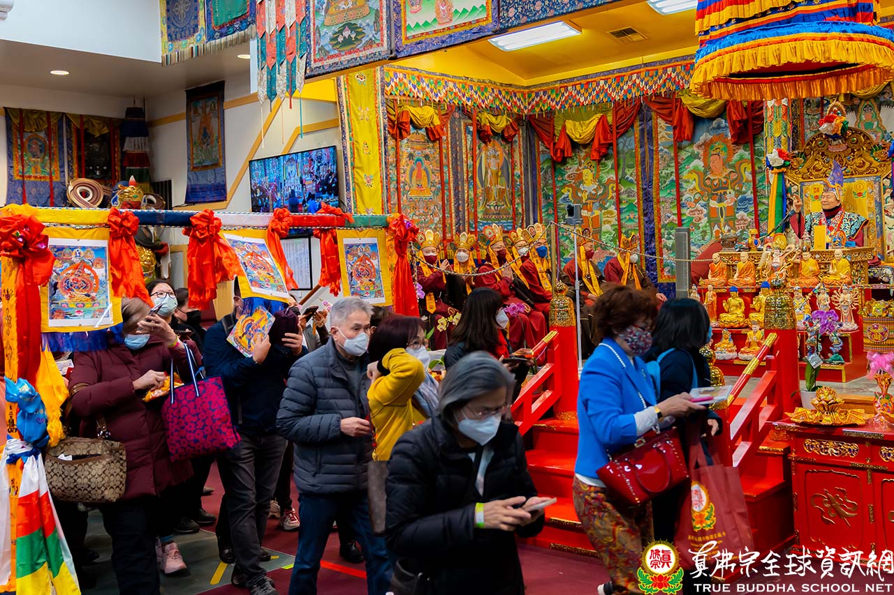 法王精闢的開示,有著一語道破夢中人的震撼。弟子們響起了歡喜、感恩、幸福的掌聲。接下來,法王為所有的與會者做了大幻化網金剛的灌頂,每個人滿懷欣喜的走過灌頂幡,在線上的弟子們也一同觀想著,祈禱著,雖然這不代表得到遙灌頂,但是強烈的法流迴蕩在世界的各個角落。灌頂後,聖尊再次熱切的和Zoom線上的弟子們告別,儘管目前很多人還無法親自前往參與法會,但相信虎年的曙光已至,願疫情早日遠離,而師徒相聚的日子早日到來。