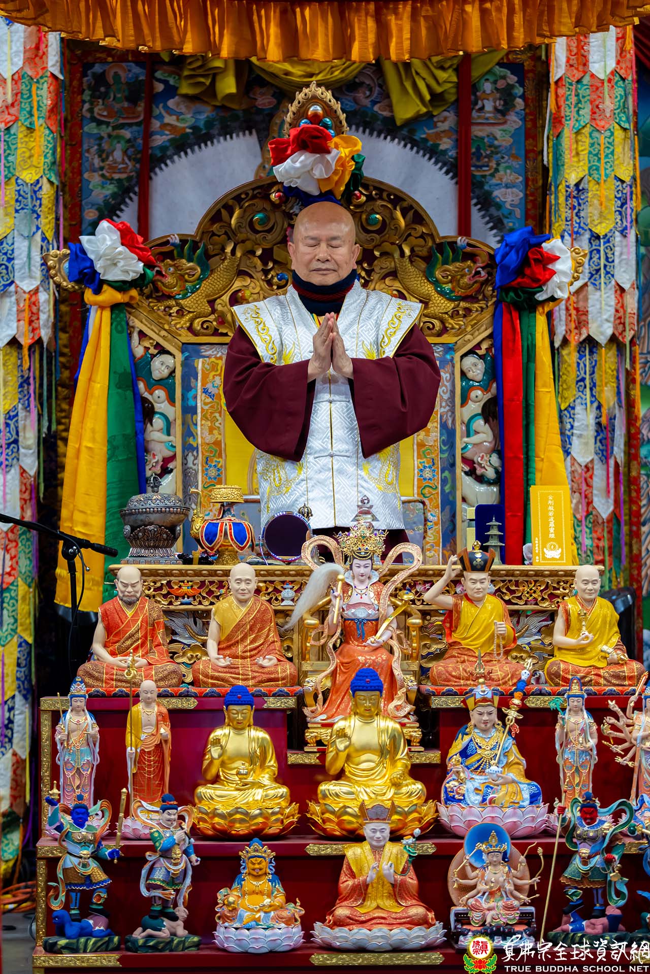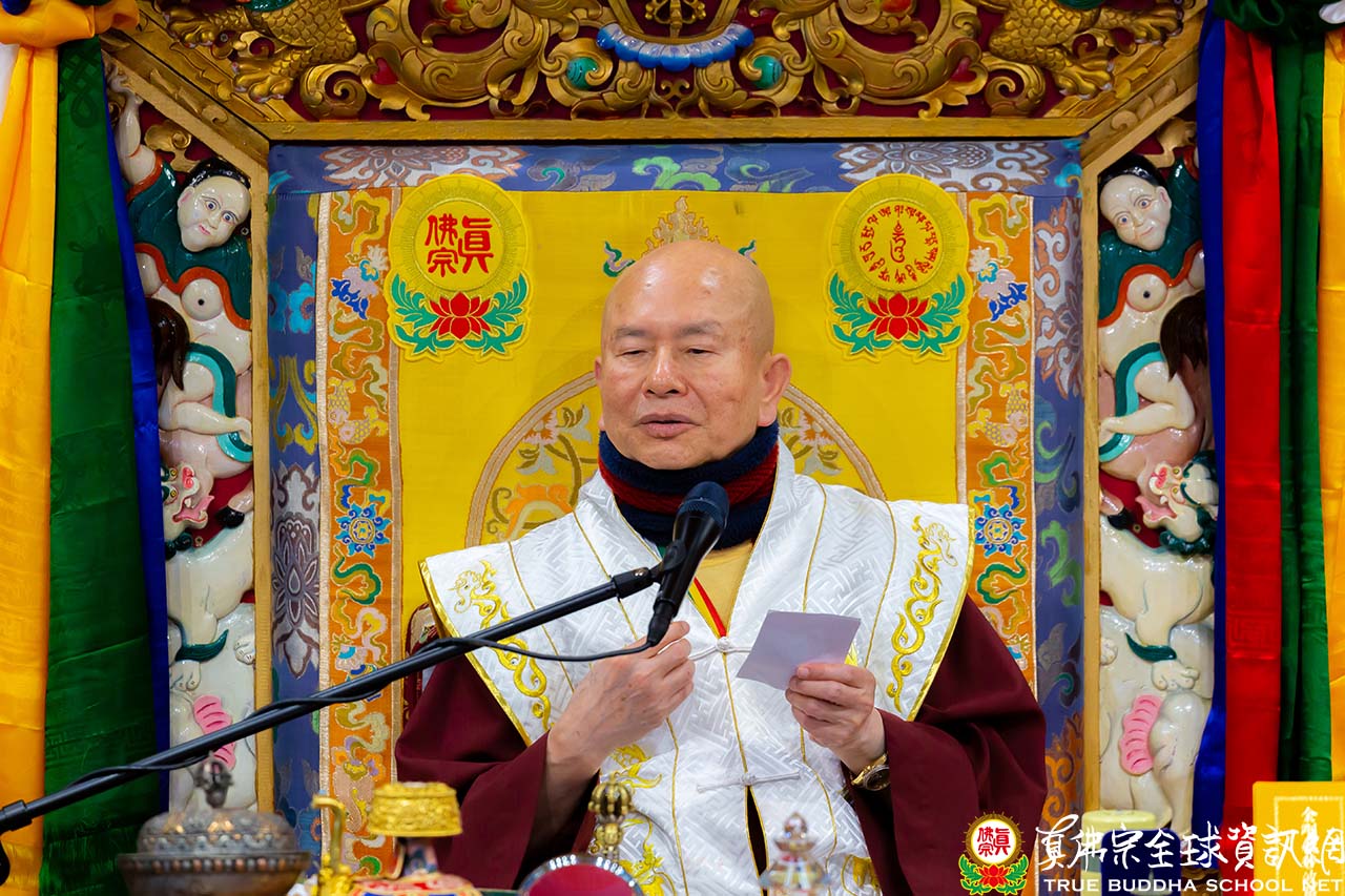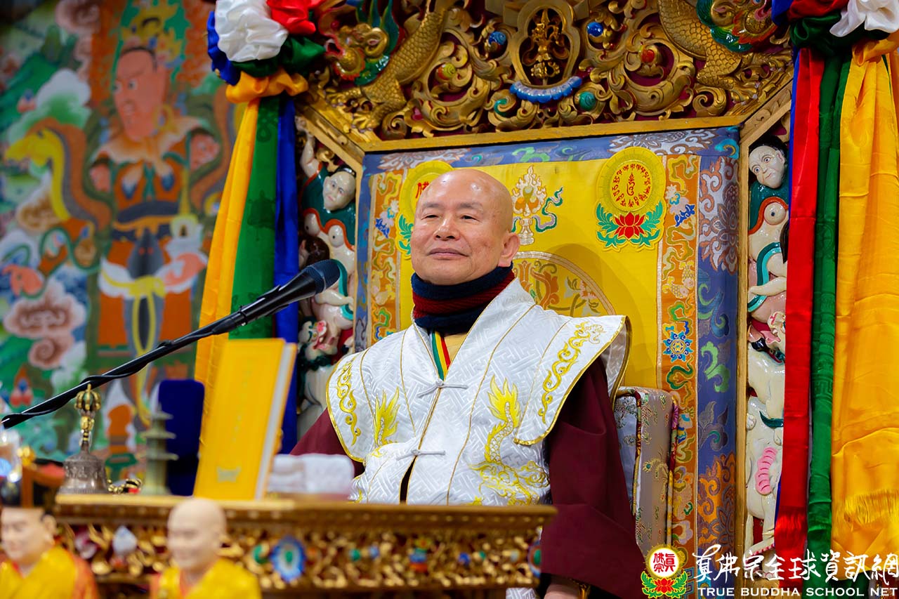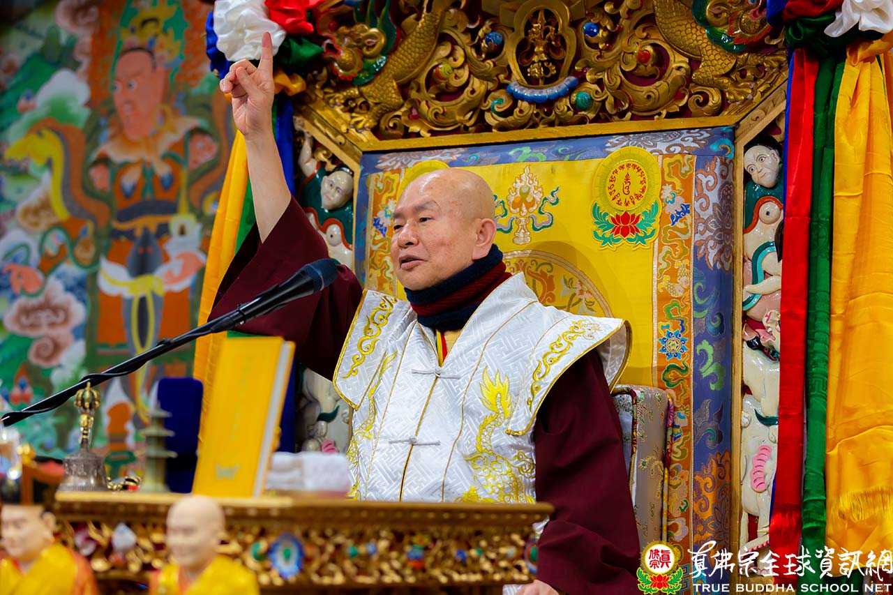 最後,法王再次強調如來佛雖能有神通變化,但是有神通並不代表就是佛。大家需離色離相,不能看其展現變化,或相貌非常莊嚴,就認為對方是佛。只有達到明心見性,看見自己真實佛性,顯化自己的光明佛性,那才是真實見。想要看見自己的佛性,就需清楚自己的業障。以密教為例,清淨自己的身口意業,達到清淨,就能認識空性、進入空性,就是真正的見性。