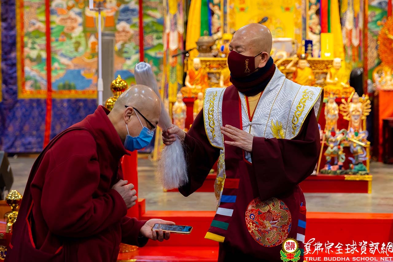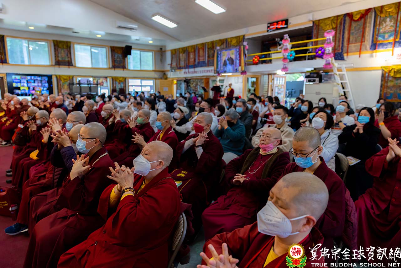 開示完畢後,法王帶領大家頂禮壇城,然後與Zoom上的弟子一一告別。再賜授現場與會大眾「不空羂索觀音法」灌頂後,本日法會也圓滿結束。