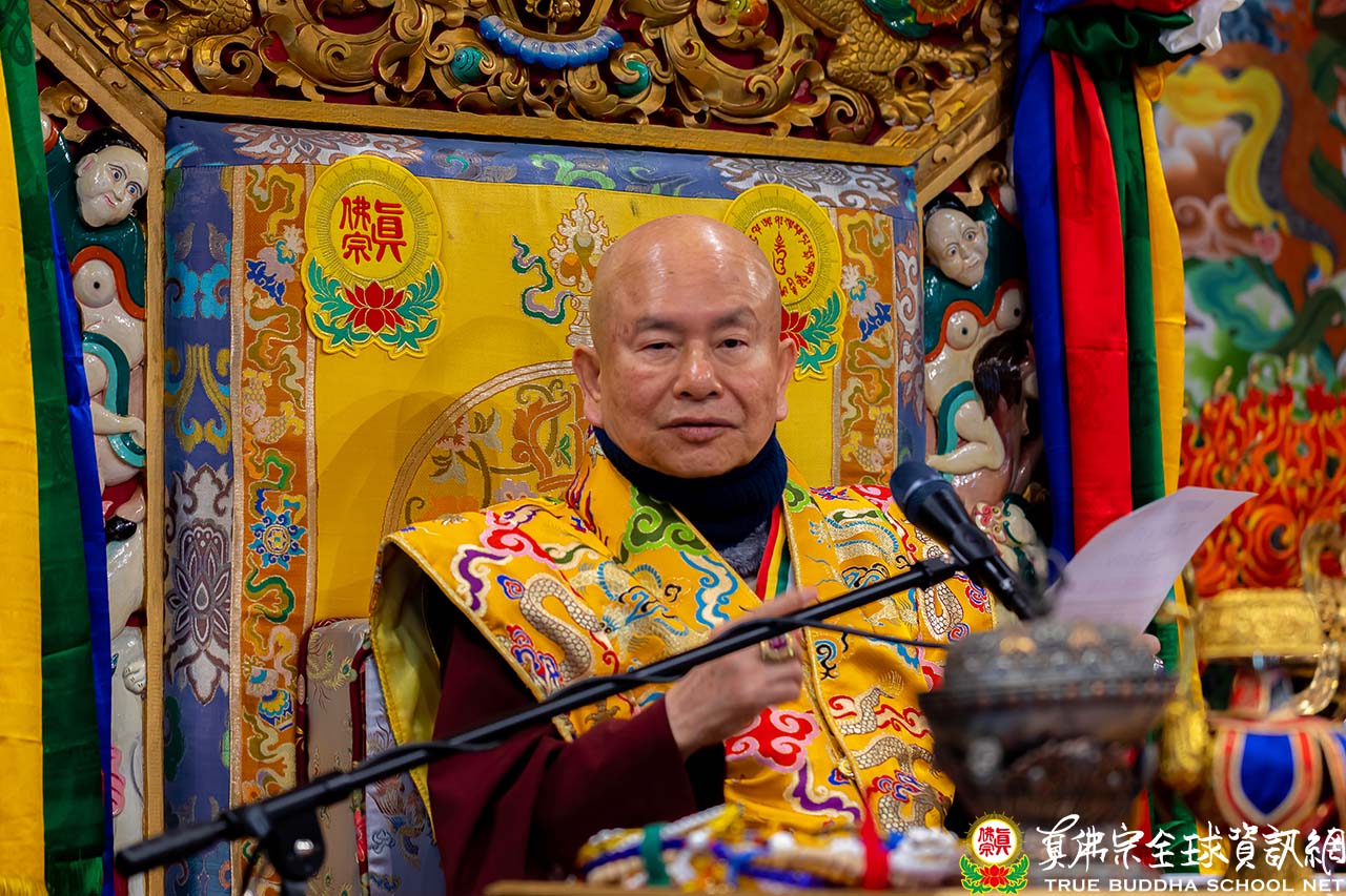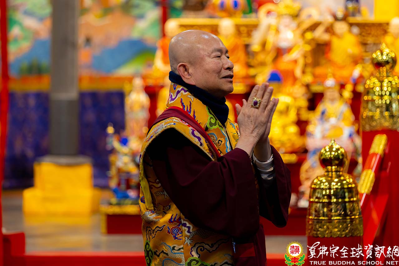 法會後,法王親切地與大家問好。接著便講述今天的護摩主尊——準提佛母。準提佛母金剛號有三:最勝金剛、清淨金剛及如意金剛。此外,準提佛母有兩個龍王——「難陀龍王」與「跋難陀龍王」侍立在其蓮座之下。準提佛母出自大日如來,同時也是釋迦摩尼佛本身的變化身。此外,祂也有八大菩薩為眷屬,就是「觀自在菩薩」、「彌勒菩薩」、「虛空藏菩薩」、「普賢菩薩」、「金剛手菩薩」、「文殊師利菩薩」、「除蓋障菩薩」、「地藏菩薩」。其來歷不僅不簡單,而且也非常偉大。同時也是真佛宗八大本尊中,唯一可當本尊、也可當護法的佛菩薩。