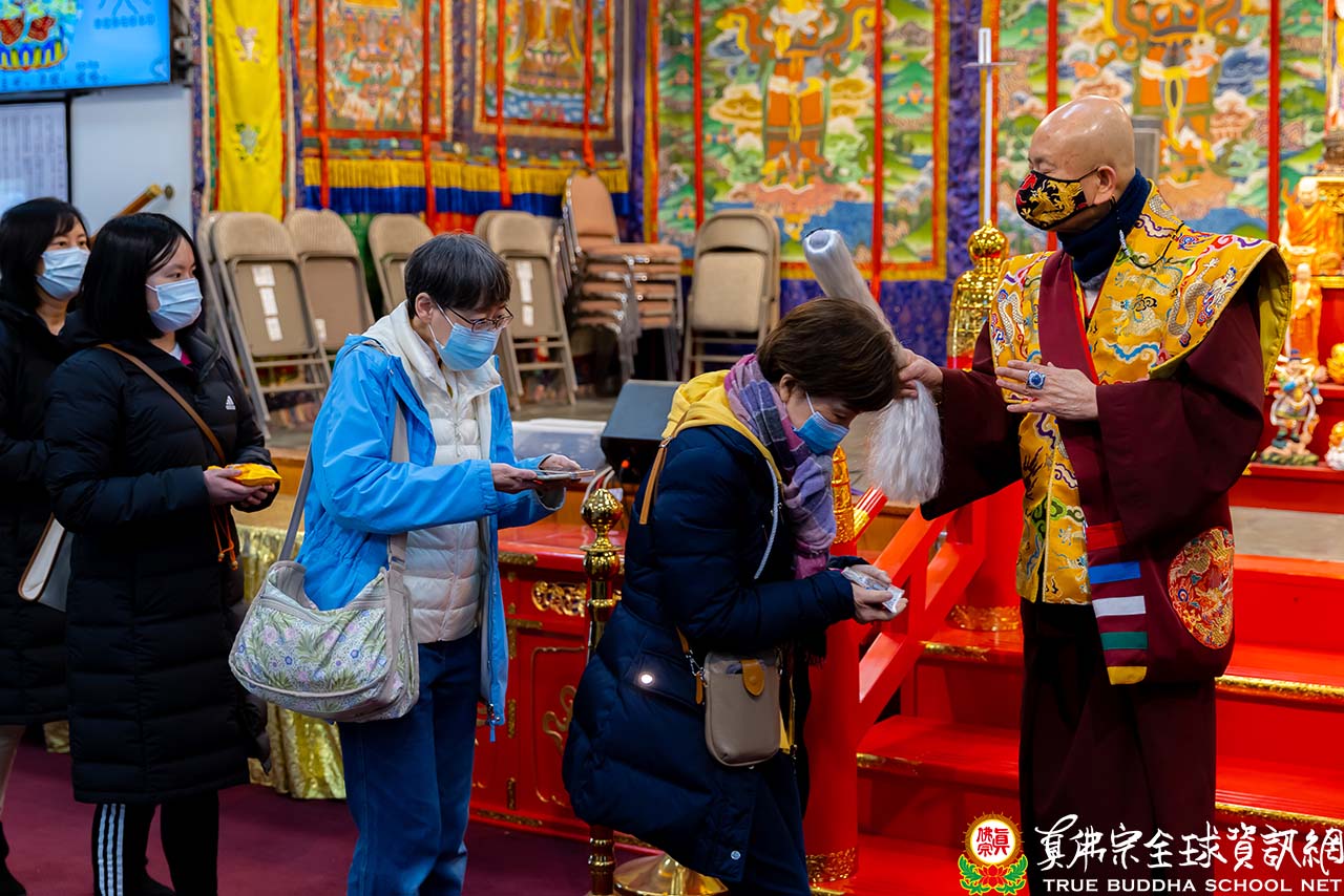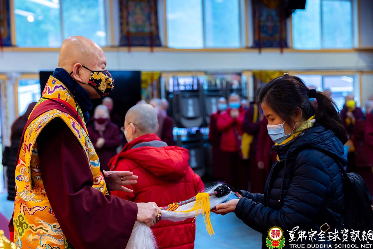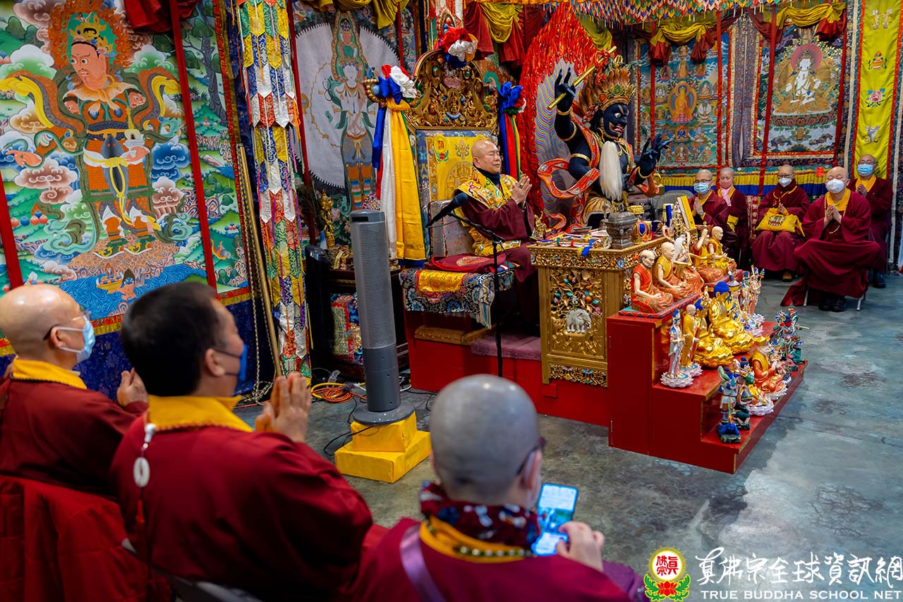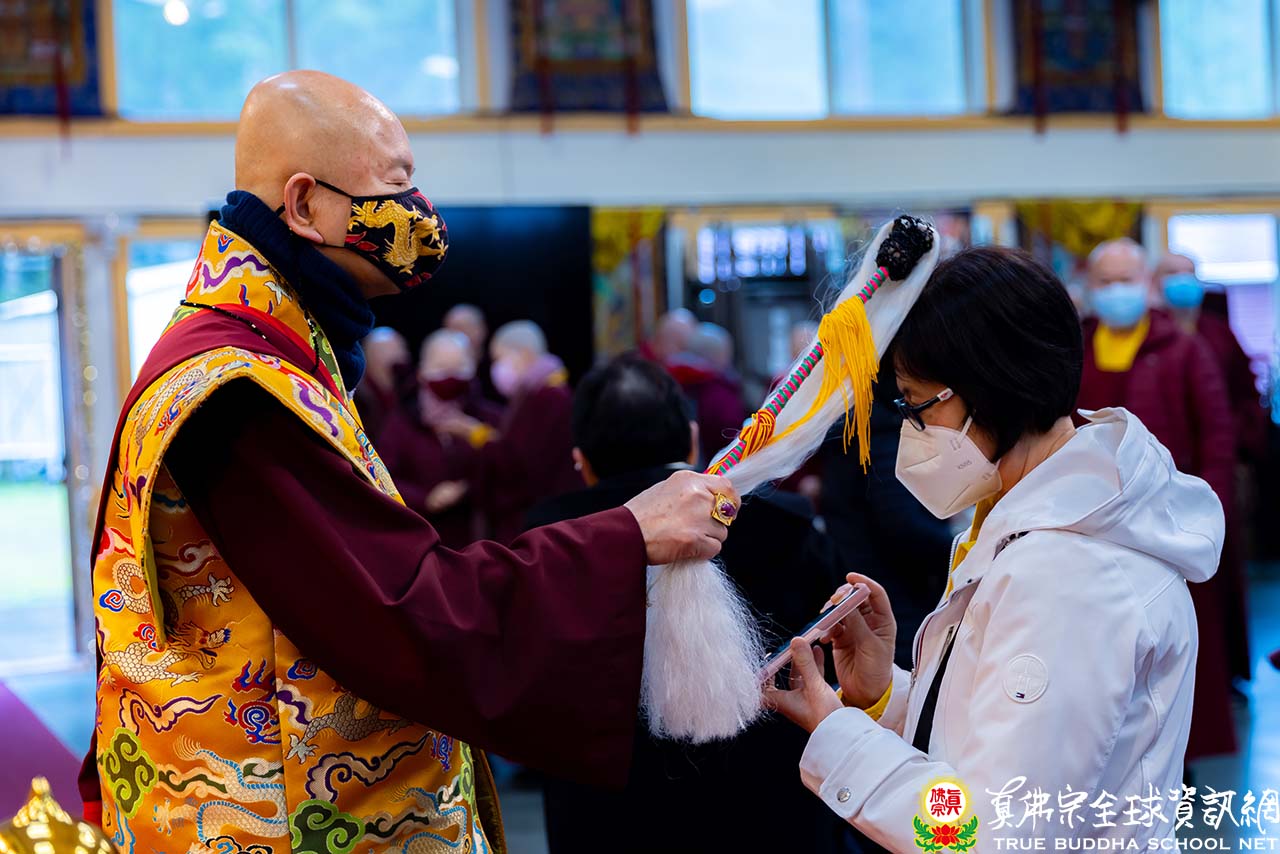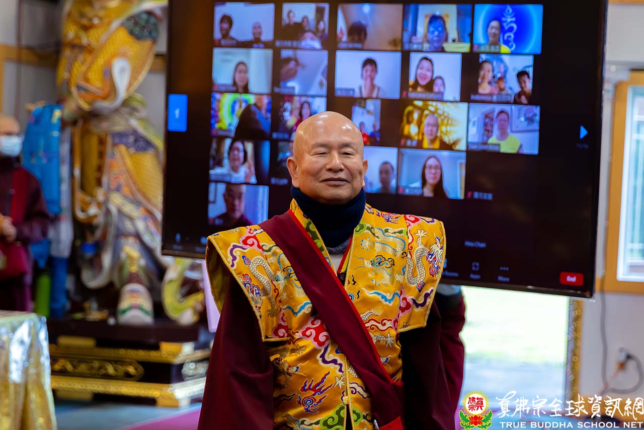 開示結束後,法王帶領大眾頂禮,然後接受Zoom線上會議室的弟子們的道謝。接著,法王賜授現場同門「準提佛母法」的灌頂,今日的法會也圓滿落幕。