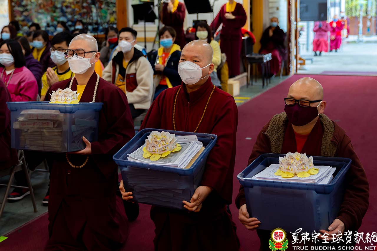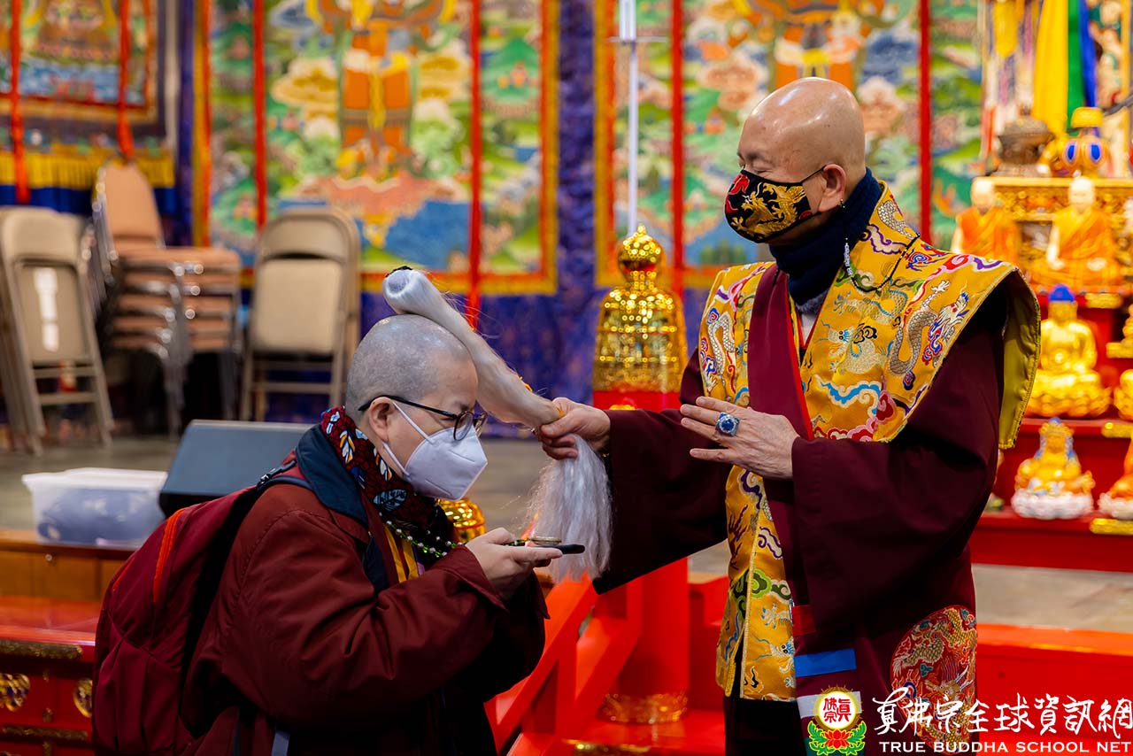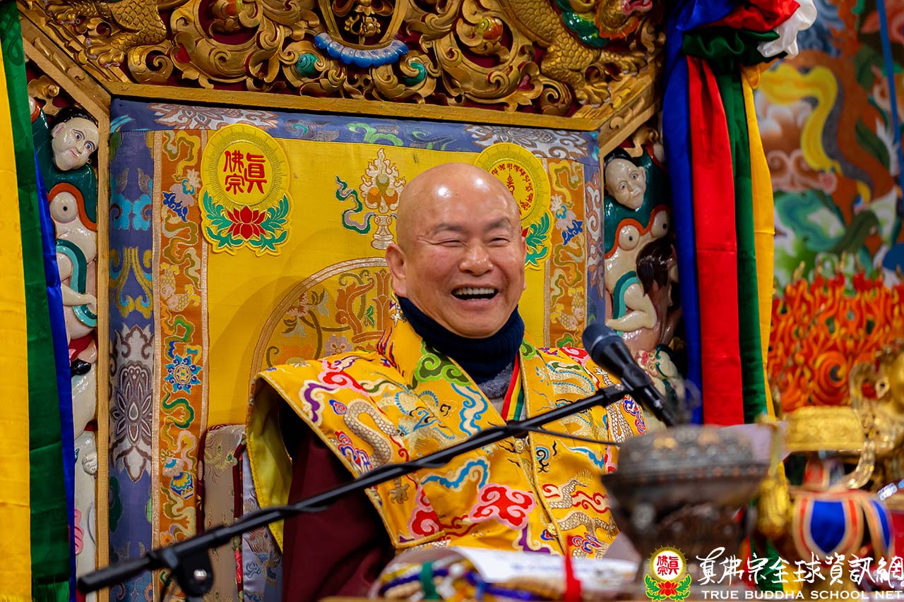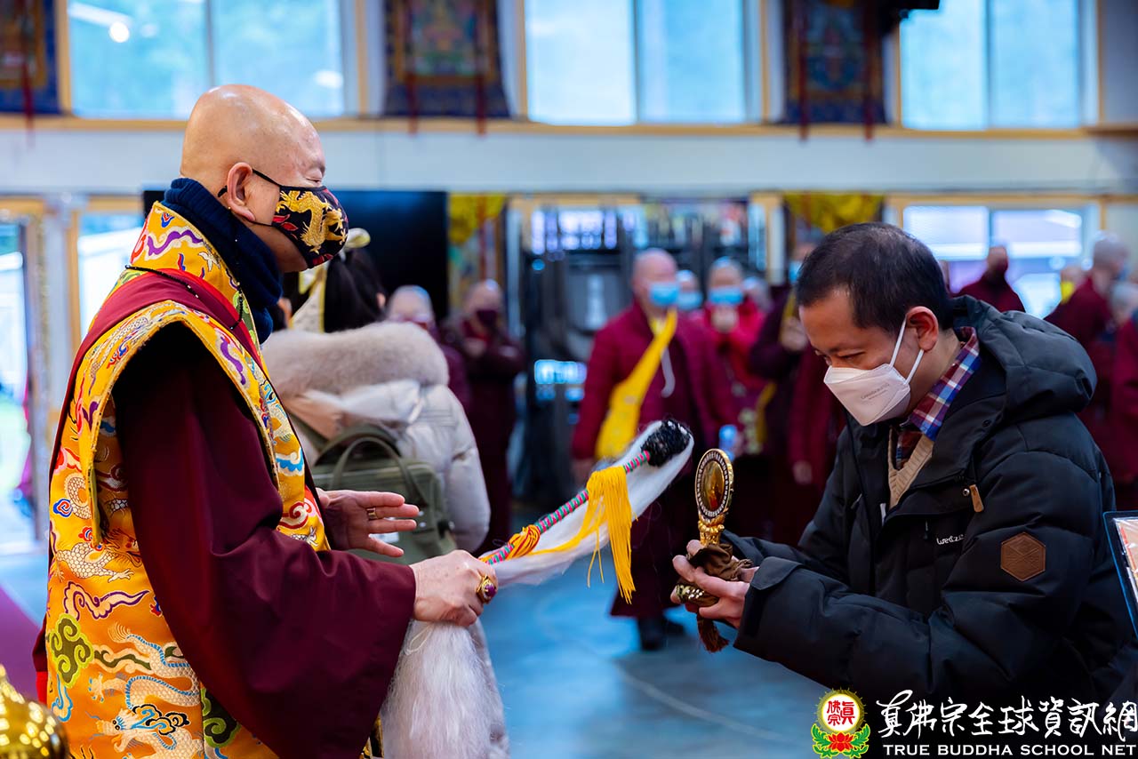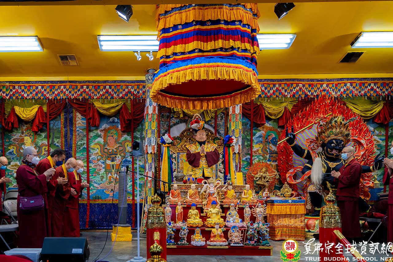 開示結束後,法王帶領大眾頂禮,然後接受Zoom線上會議室的弟子們的道謝。接著,法王賜授現場同門「準提佛母法」的灌頂,今日的法會也圓滿落幕。