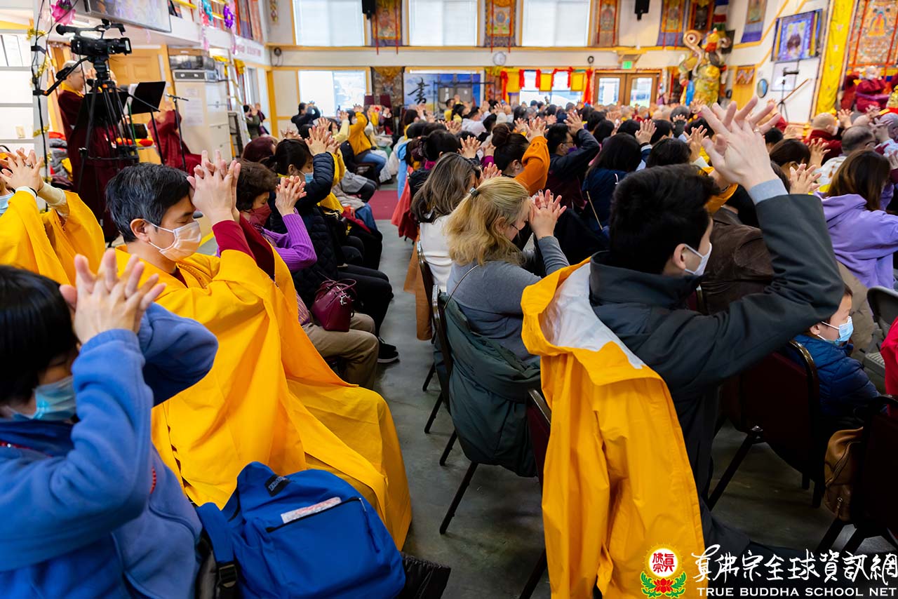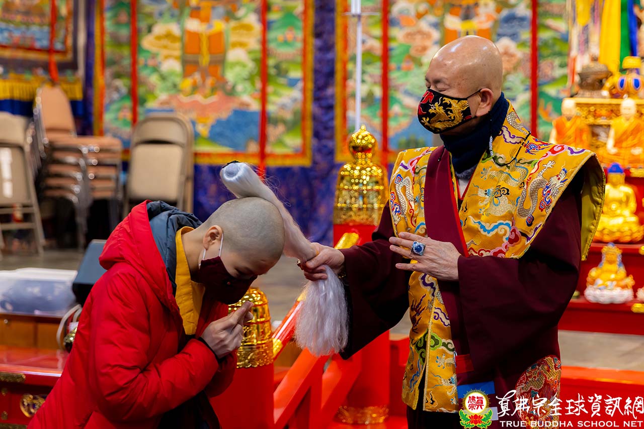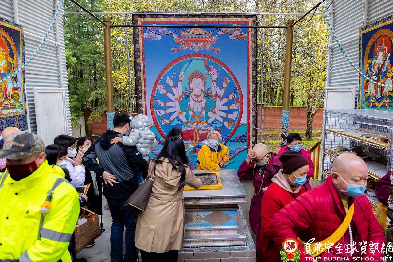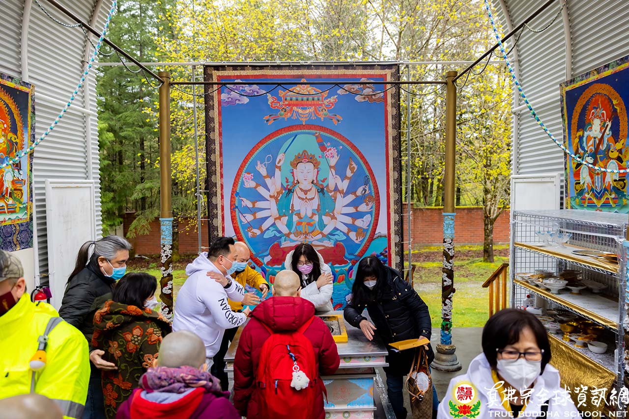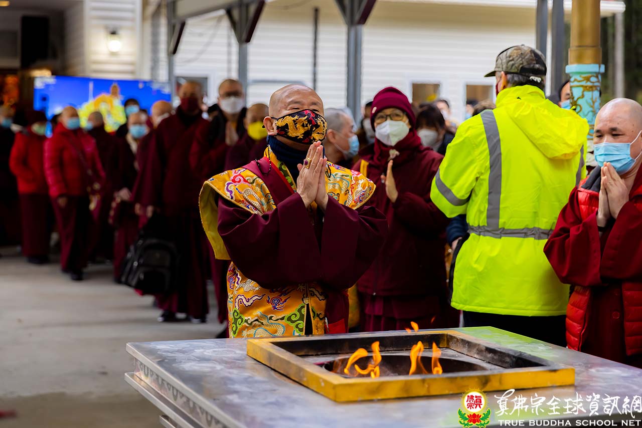 開示結束後,法王帶領大眾頂禮,然後接受Zoom線上會議室的弟子們的道謝。接著,法王賜授現場同門「準提佛母法」的灌頂,今日的法會也圓滿落幕。