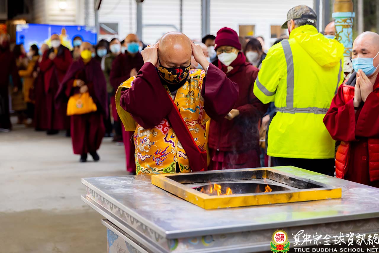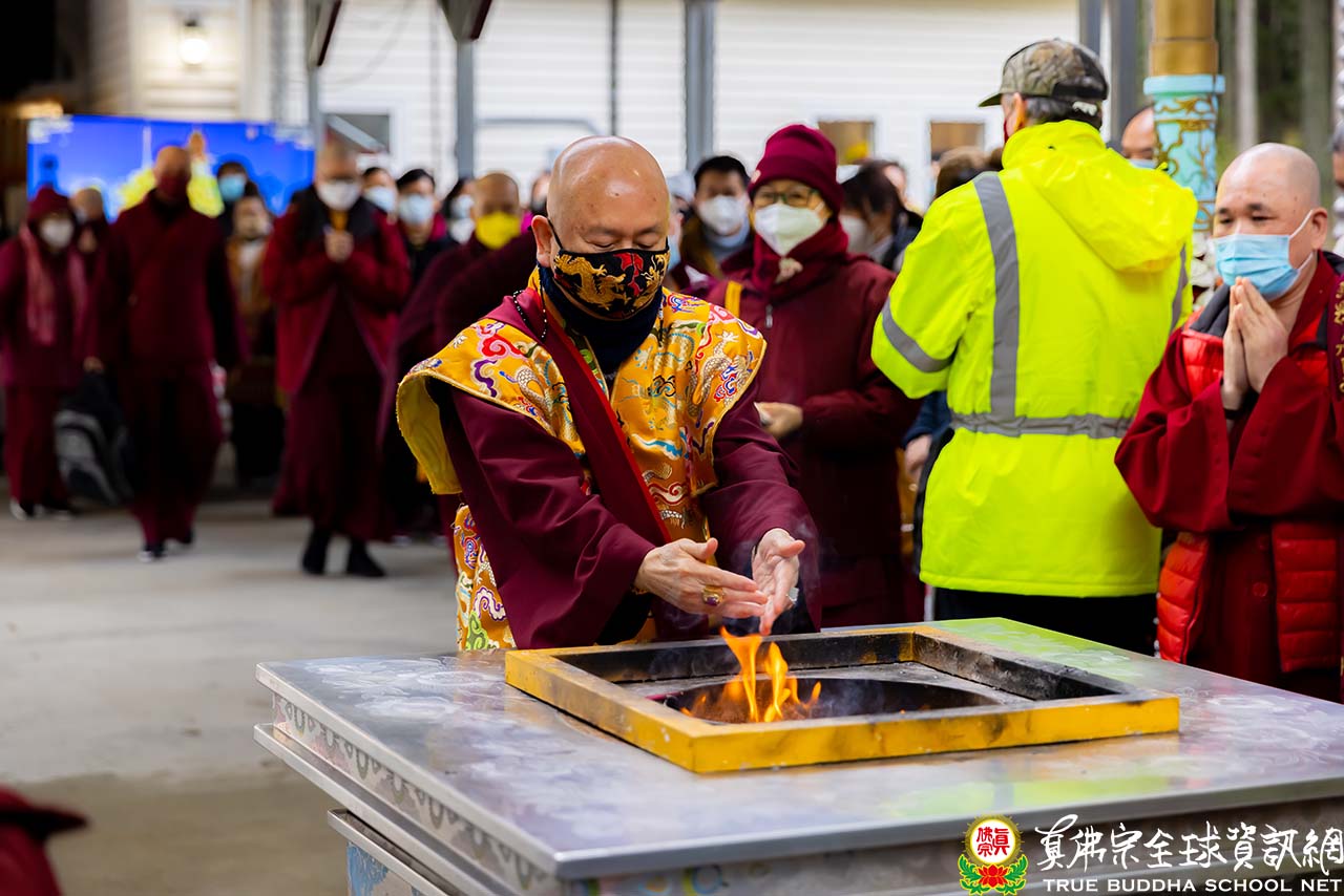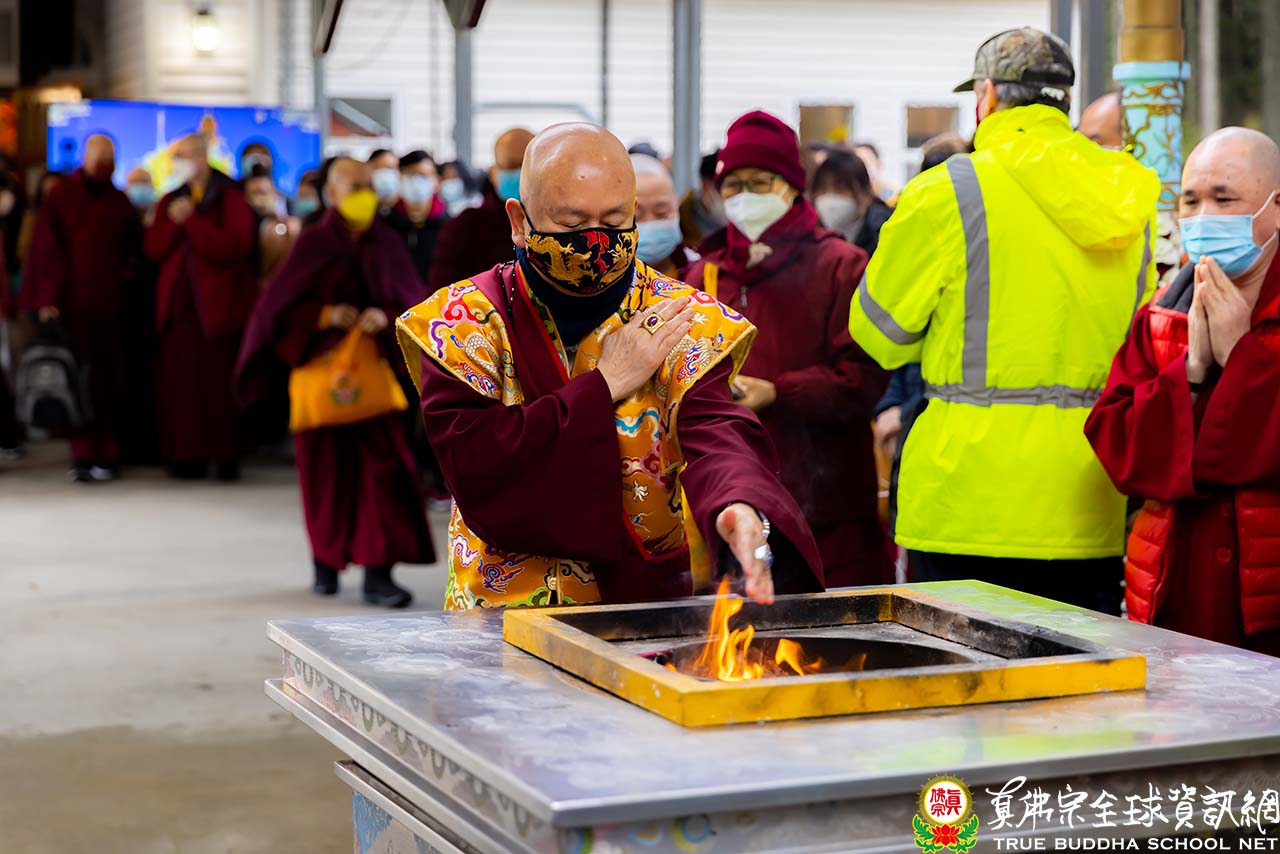 2022年4月10日下午三點,彩虹雷藏寺大殿內響起莊嚴雄厚的蓮花童子心咒,無上法王聖尊蓮生活佛緩緩步入殿內,弟子們亦虔誠頂禮迎接法王的蒞臨。接著,今日的準提佛母護摩法會也拉開序幕。