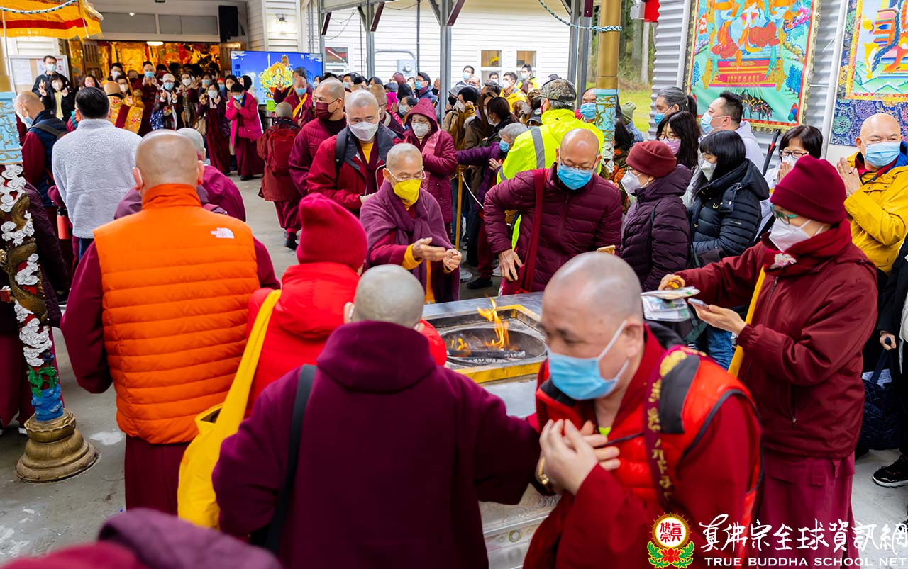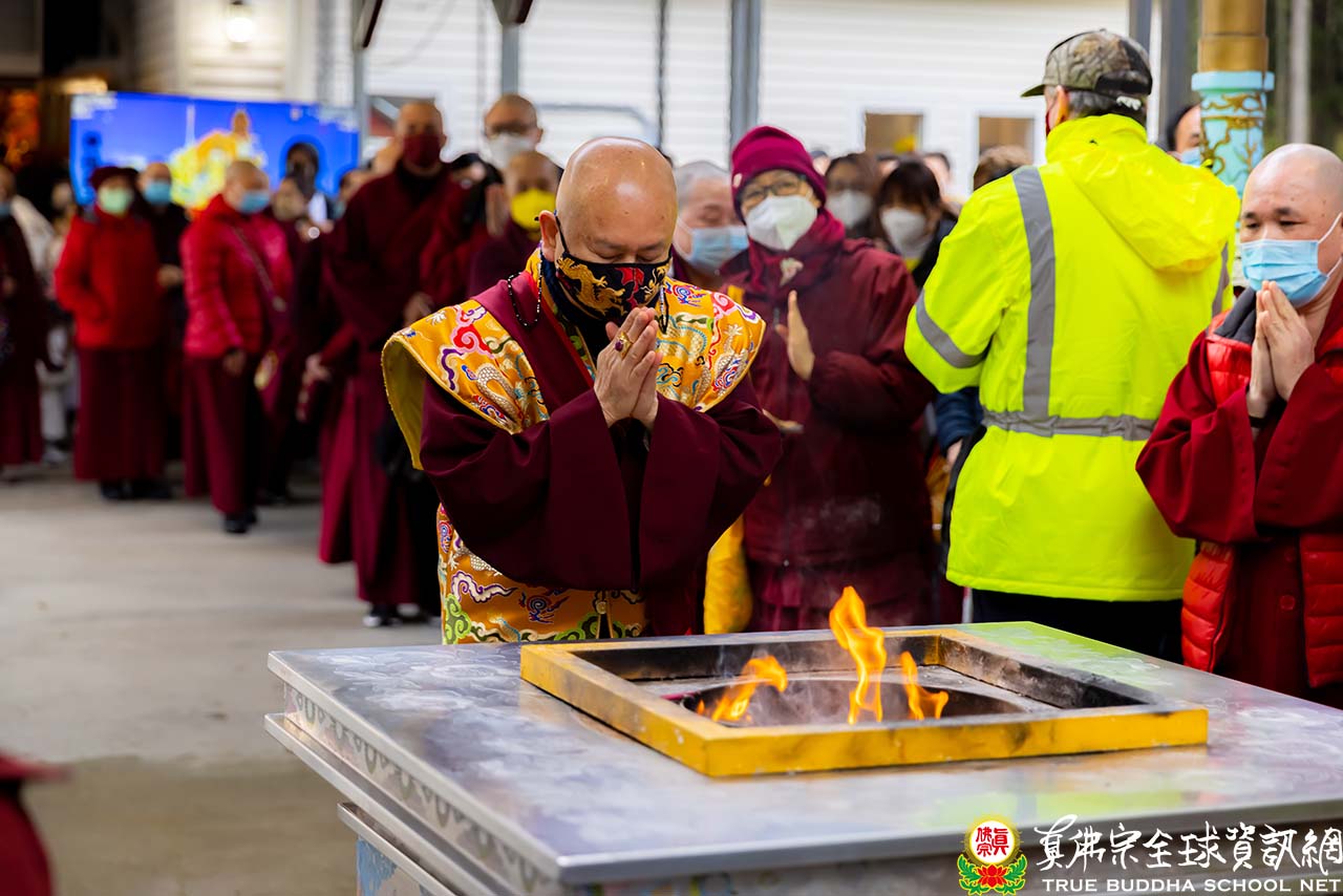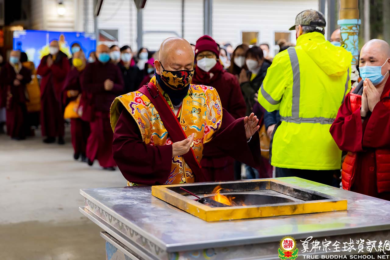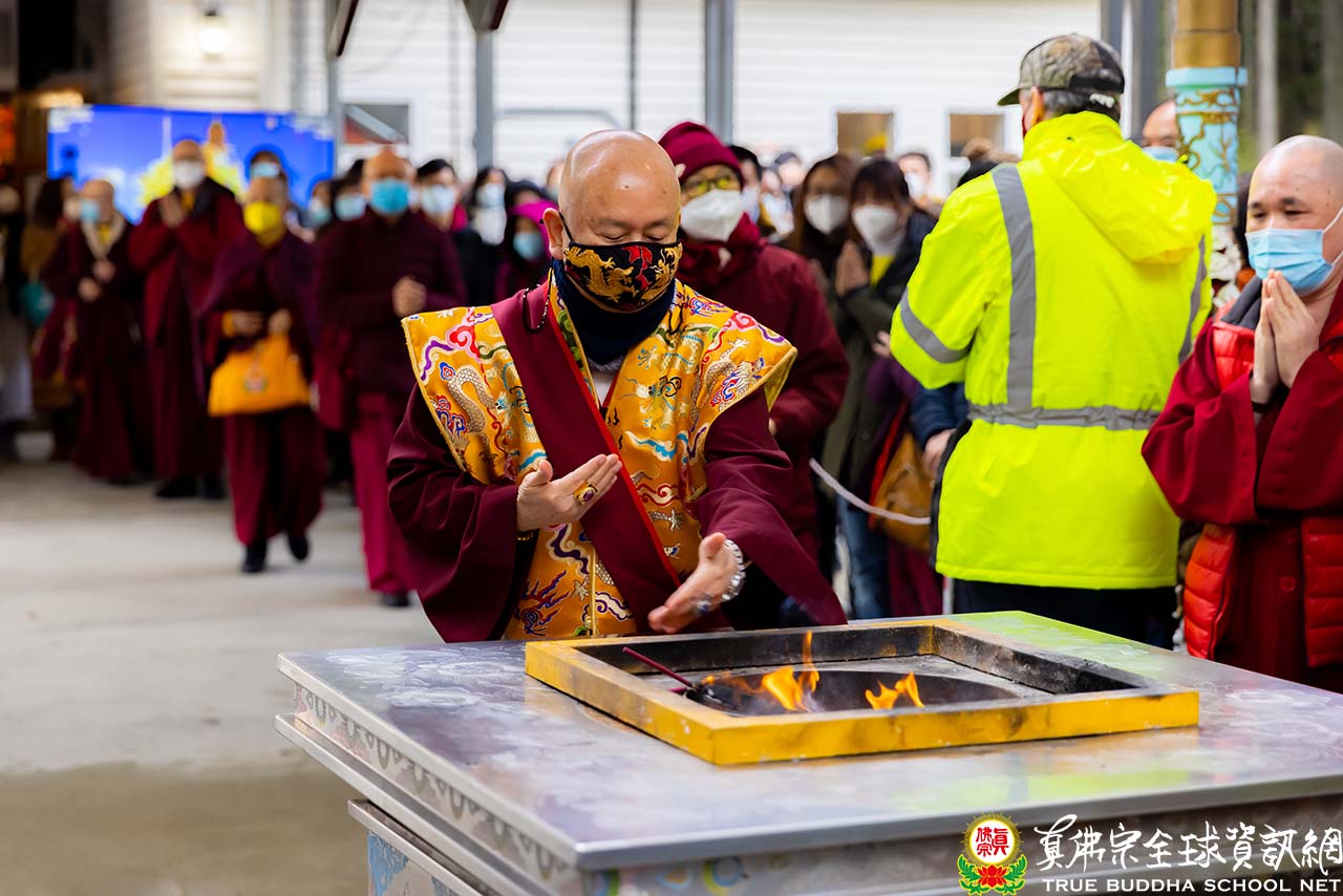 2022年4月10日下午三點,彩虹雷藏寺大殿內響起莊嚴雄厚的蓮花童子心咒,無上法王聖尊蓮生活佛緩緩步入殿內,弟子們亦虔誠頂禮迎接法王的蒞臨。接著,今日的準提佛母護摩法會也拉開序幕。