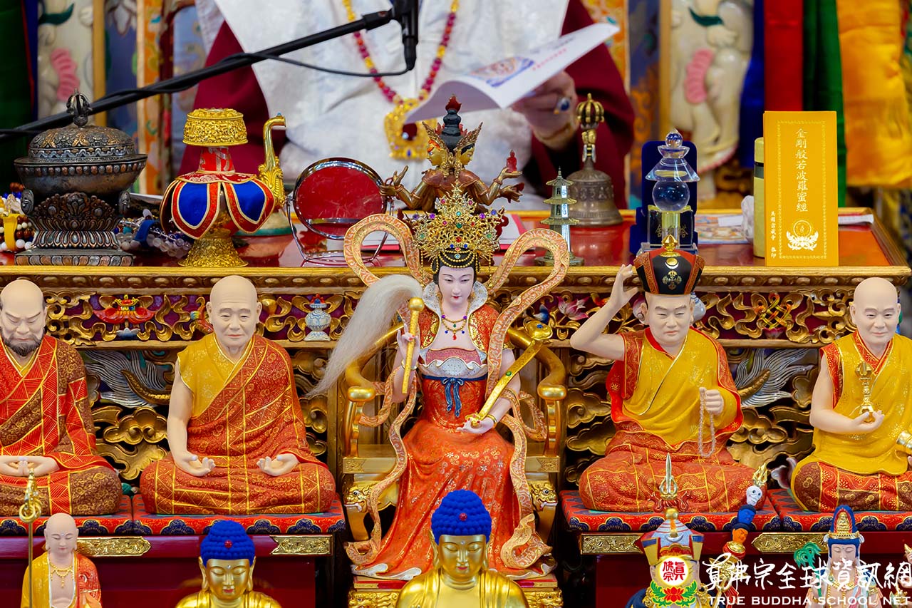法王也特別感謝天女形象的瑤池金母每晚加持千艘法船的超度,並且有一晚,給法王飲下甘露,之後法王的菩提心液增加很多。天女形象的瑤池金母是由十方同修會製作,包括很多其他的佛像都是十方同修會製作,非常莊嚴,令人心生歡喜。