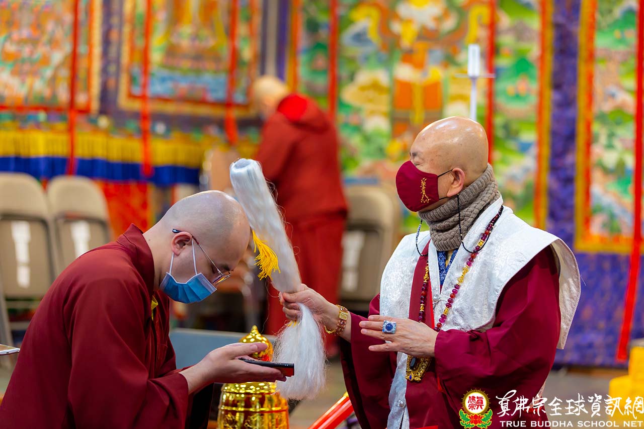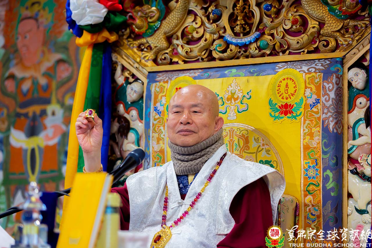在互動環節,有弟子來函問關於師尊的書籍中提及的:抓一把沙土、念21遍佛頂尊勝陀羅尼咒,撒在墳墓上面,往生者就得以往生佛國淨土。這位弟子的母親生病,她也是真佛宗弟子,可是這幾年長期臥病在床(患有失智症及其他毛病)。這位弟子想知道如果這個方法改成:抓一把米念21遍佛頂尊勝陀羅尼咒,撒在母親四周,是不是也可以讓母親的冤親債主、纏身靈離開母親,減輕母親的孽障,讓她少受罪。這位弟子希望可以減輕母親的苦痛,讓她早日康復。並且也每天都有在修持煙供法迴向給家人。祈求師尊慈悲開示這個尊勝佛母陀羅尼的方法,不知這樣做是否如法。