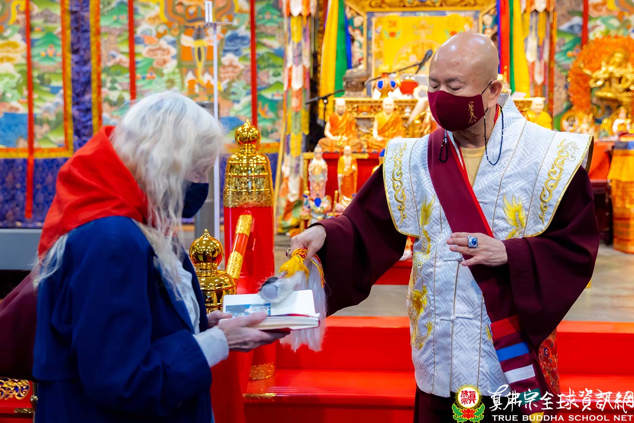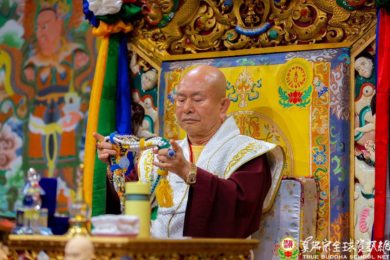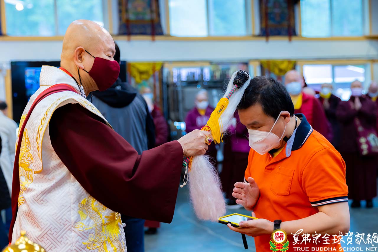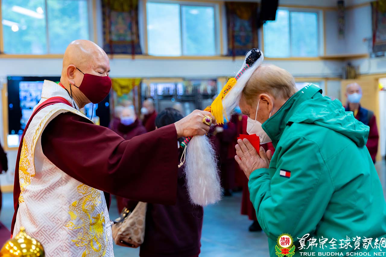 法王結束精彩的法語開示後,便與Zoom上弟子一一道別。隨後,法王賜授現場與會大眾「千手千眼觀世音菩薩法」灌頂,是日法會便完滿結束。